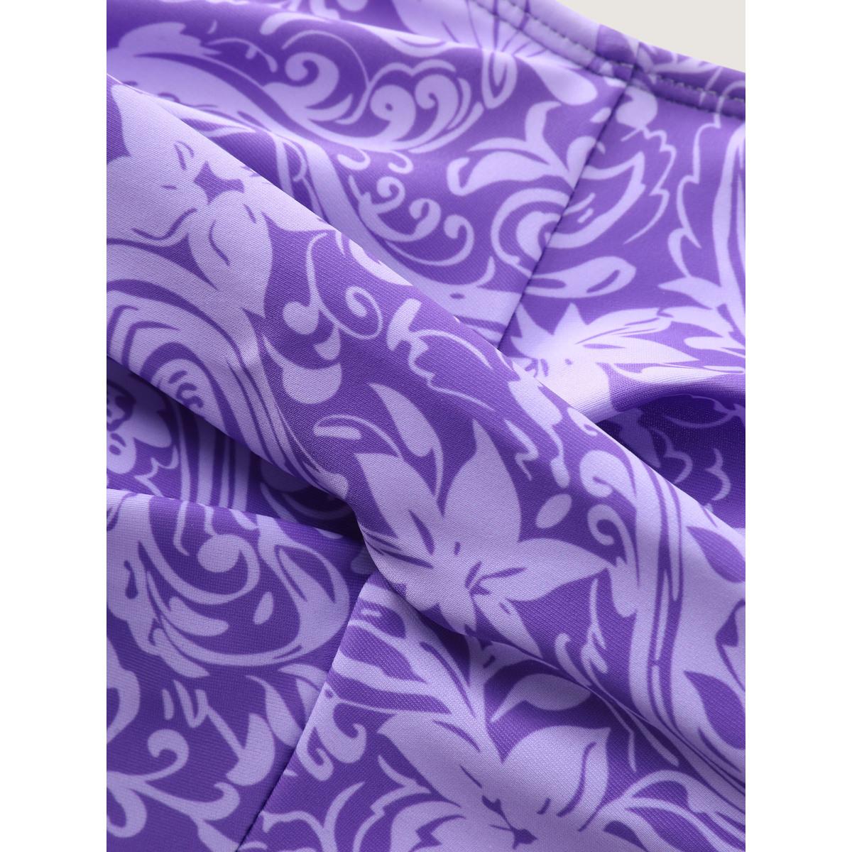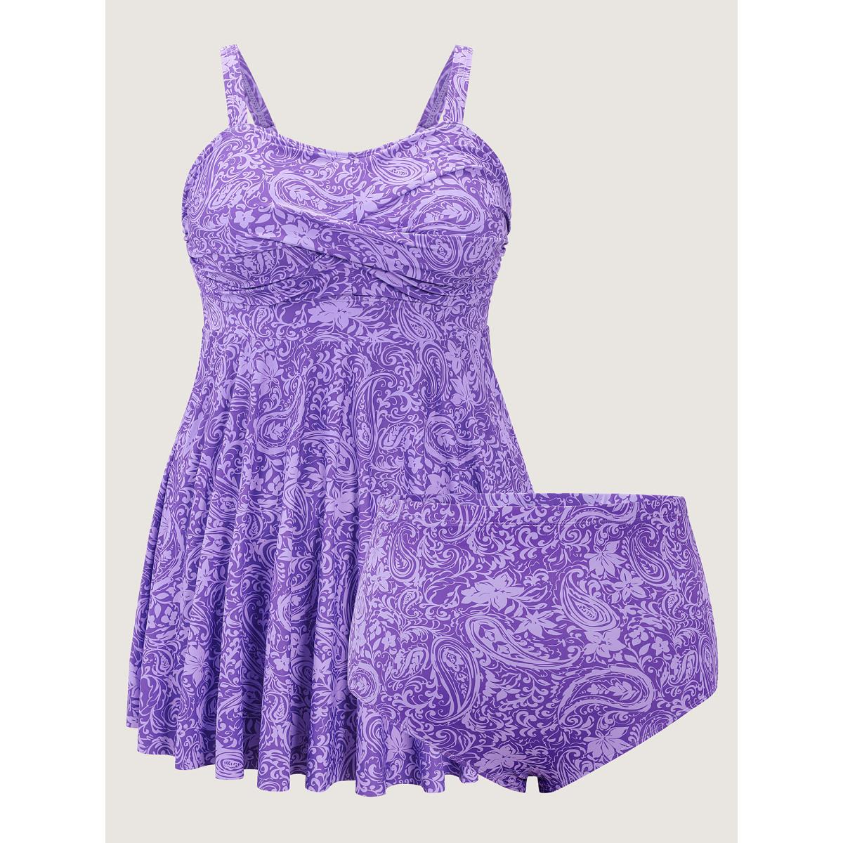 Plus Size Paisley Print Twist Front Swim Dress Women's Swimwear Lilac Resort Bodycon U-neck High stretch Curve Swim Dresses BloomChic 30/6X