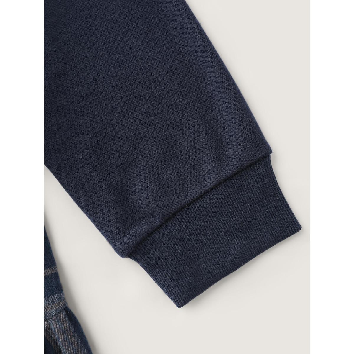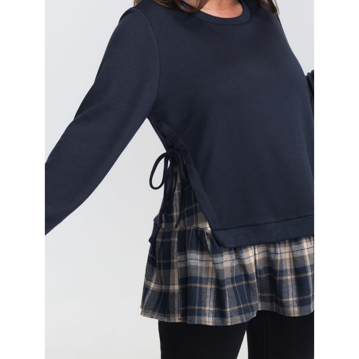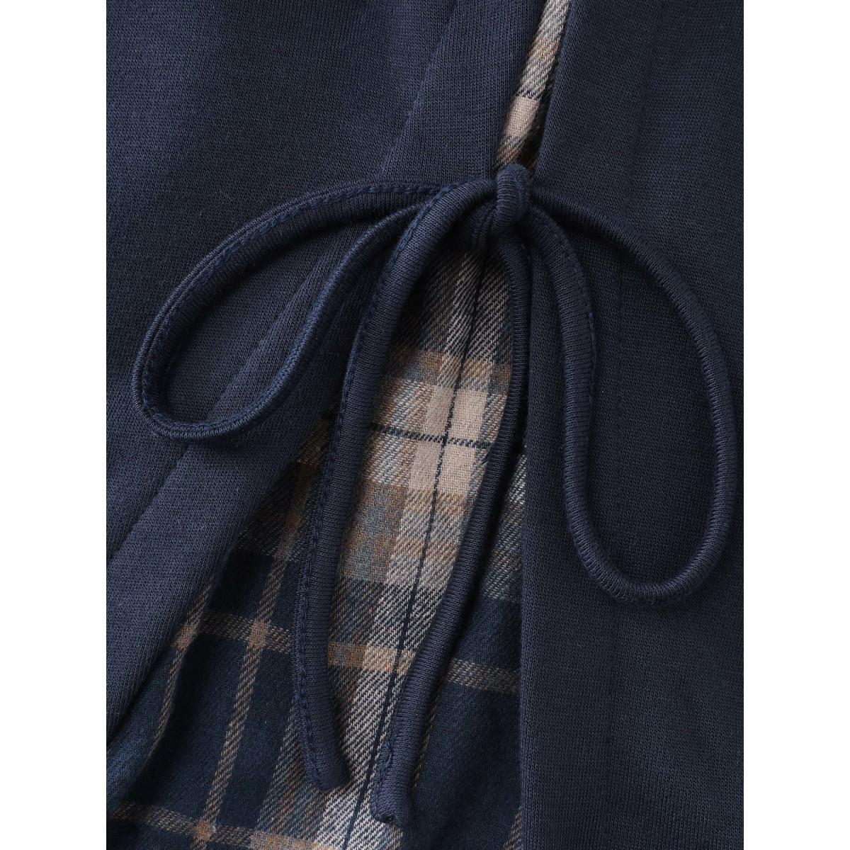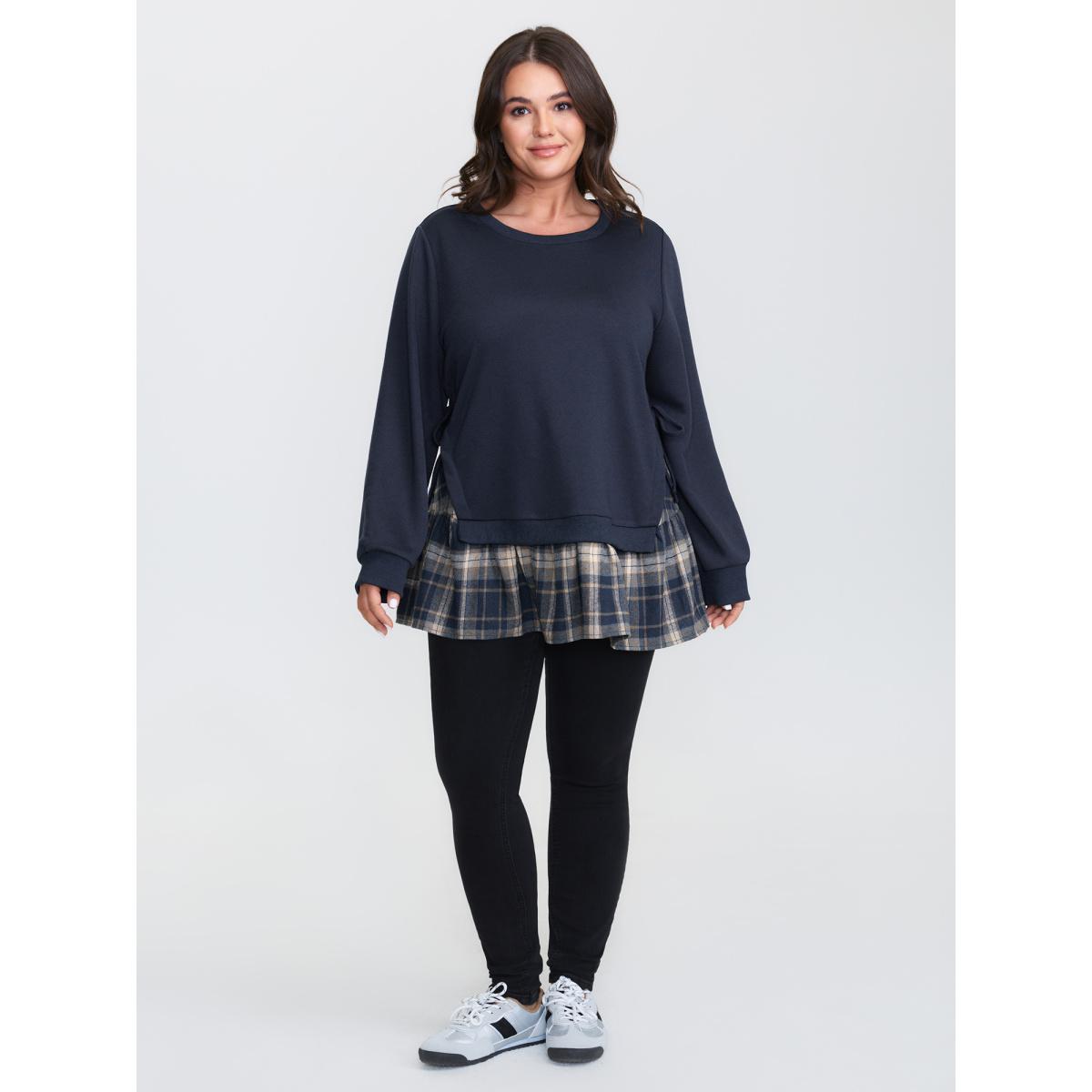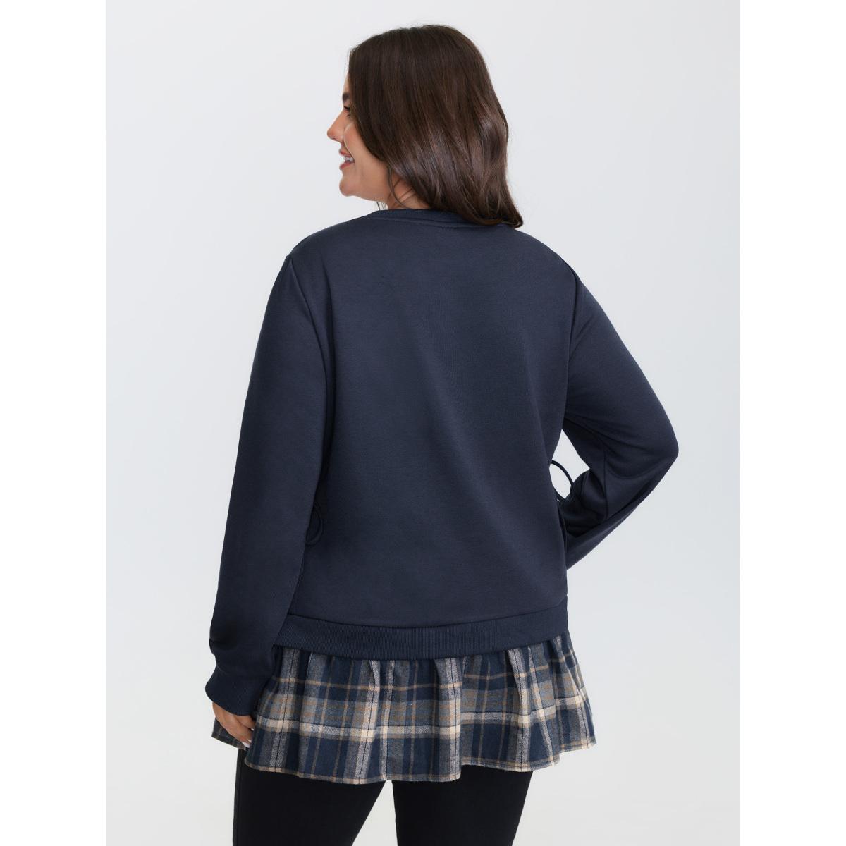 Plus Size Plaid Pattern Layered Stretchy Sweatshirt Women Indigo Leisure Tie knot Round Neck Casual Sweatshirts BloomChic 18-20/2X