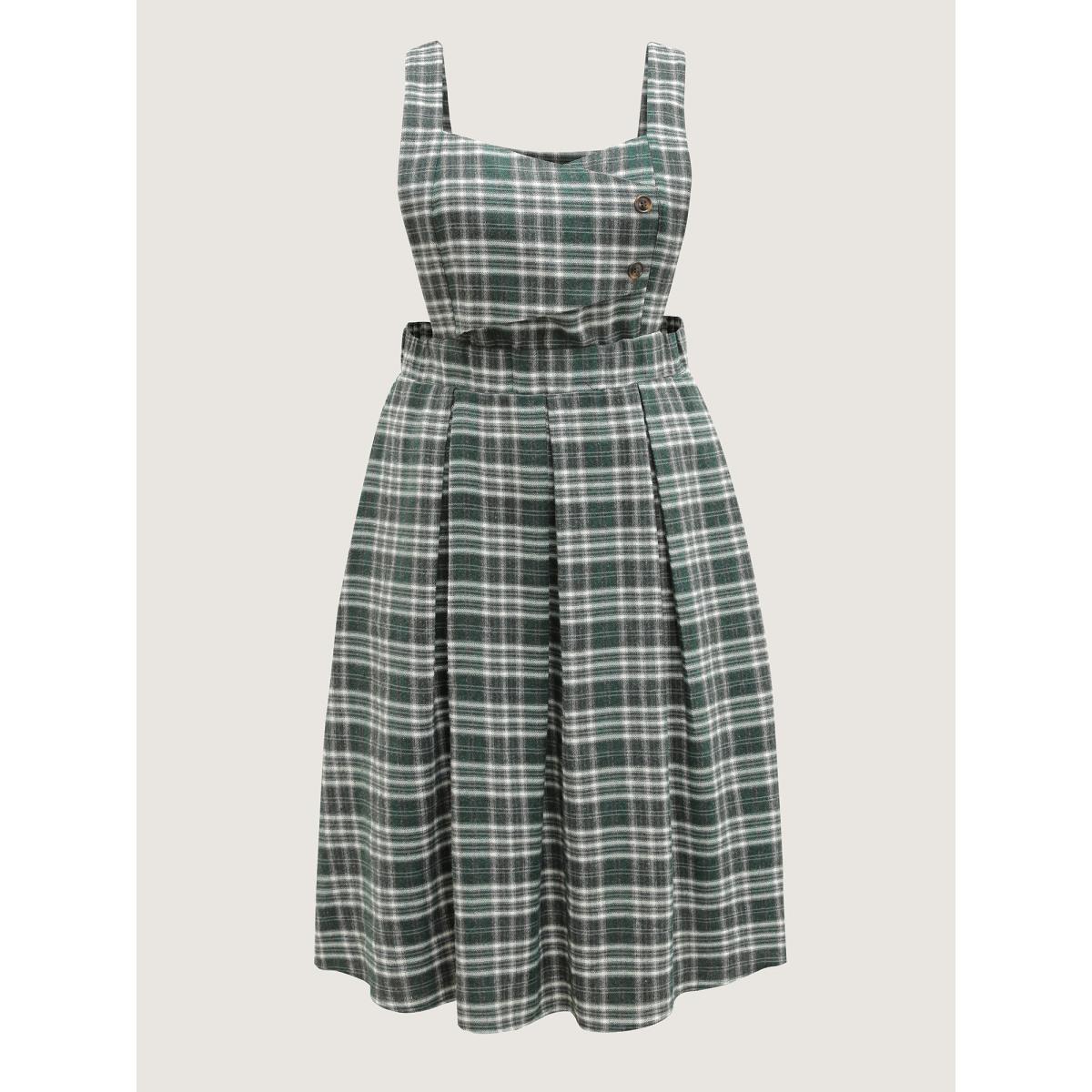 Plus Size Plaid Pleated Suspender Skirt Adjustable Midi Dress DarkGreen Women Timeless Pleated Non Sleeveless Curvy BloomChic 10/M Product Image