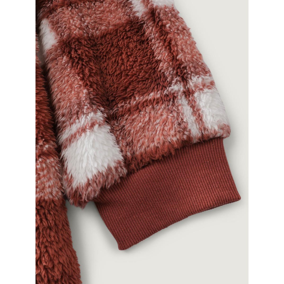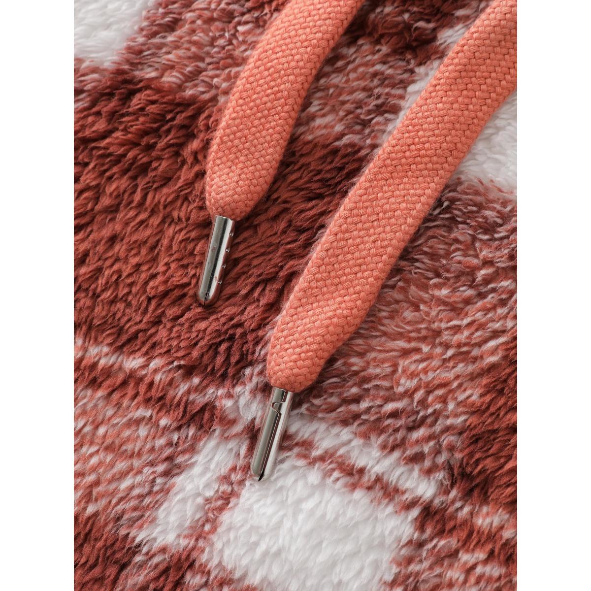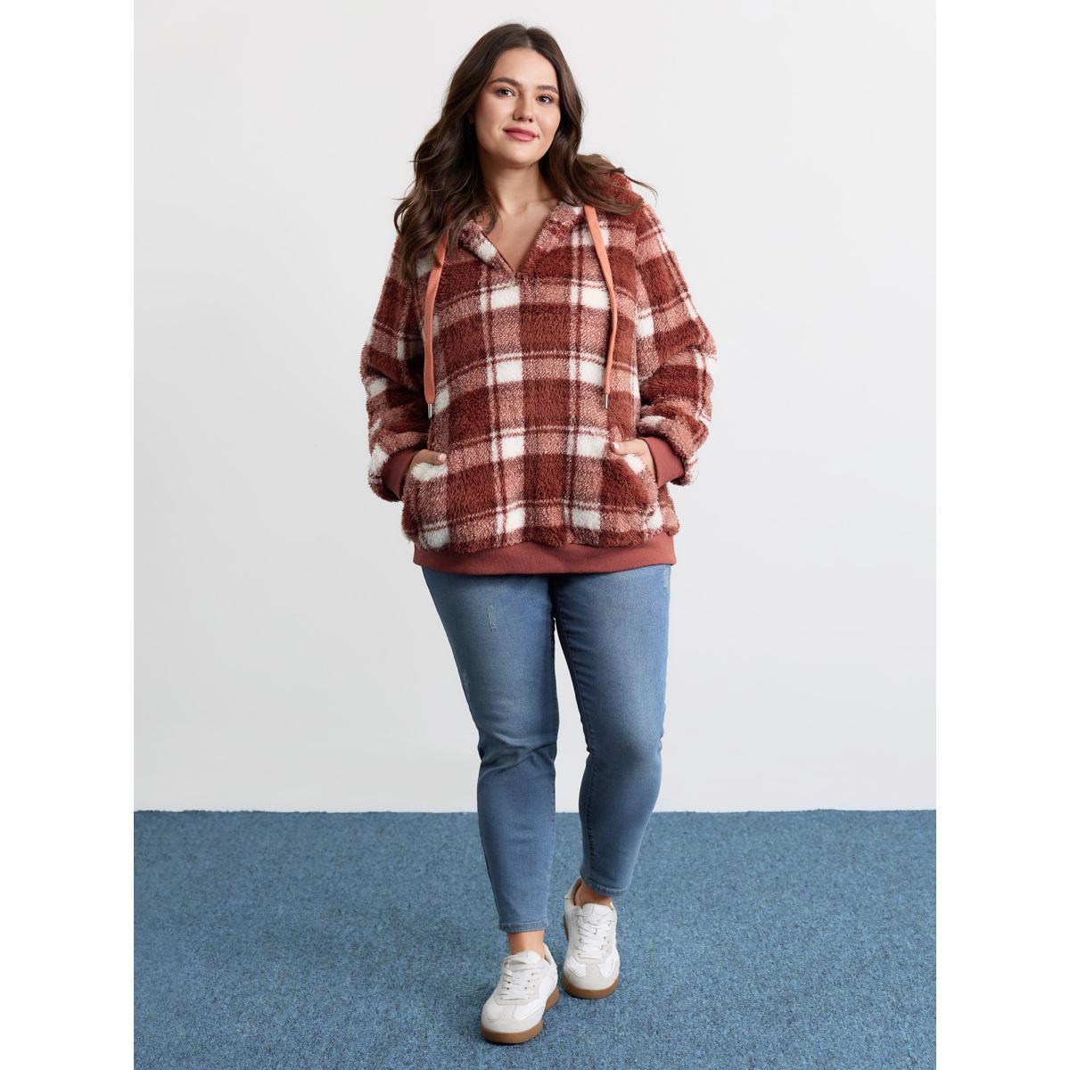 Plus Size Plaid Plush Slant Pockets Hoodie Women Rust Leisure Hooded Casual Sweatshirts BloomChic 14-16/1X Product Image