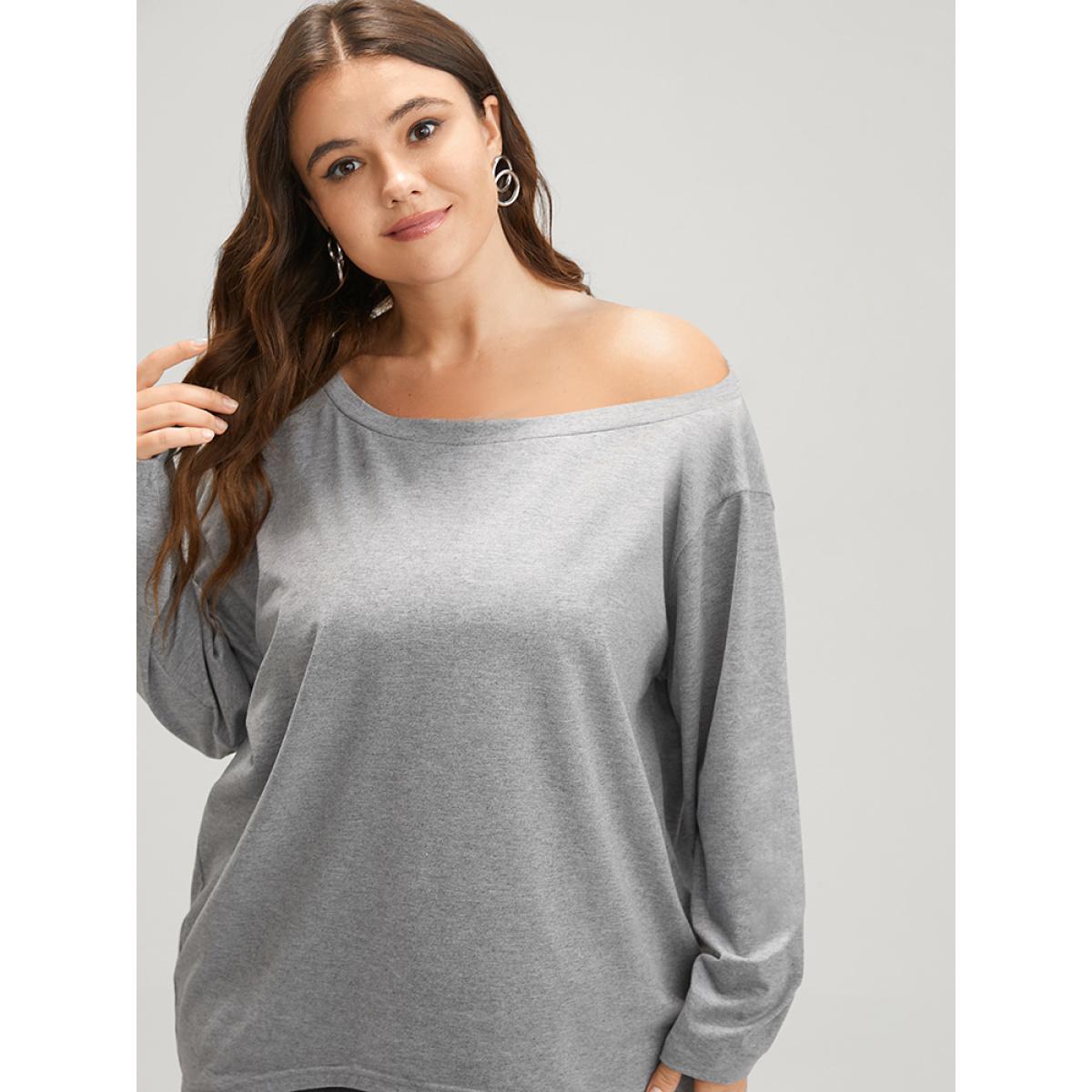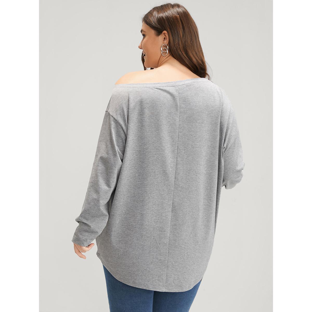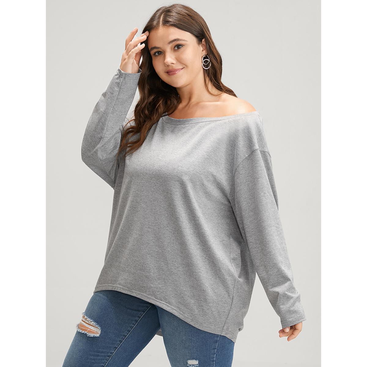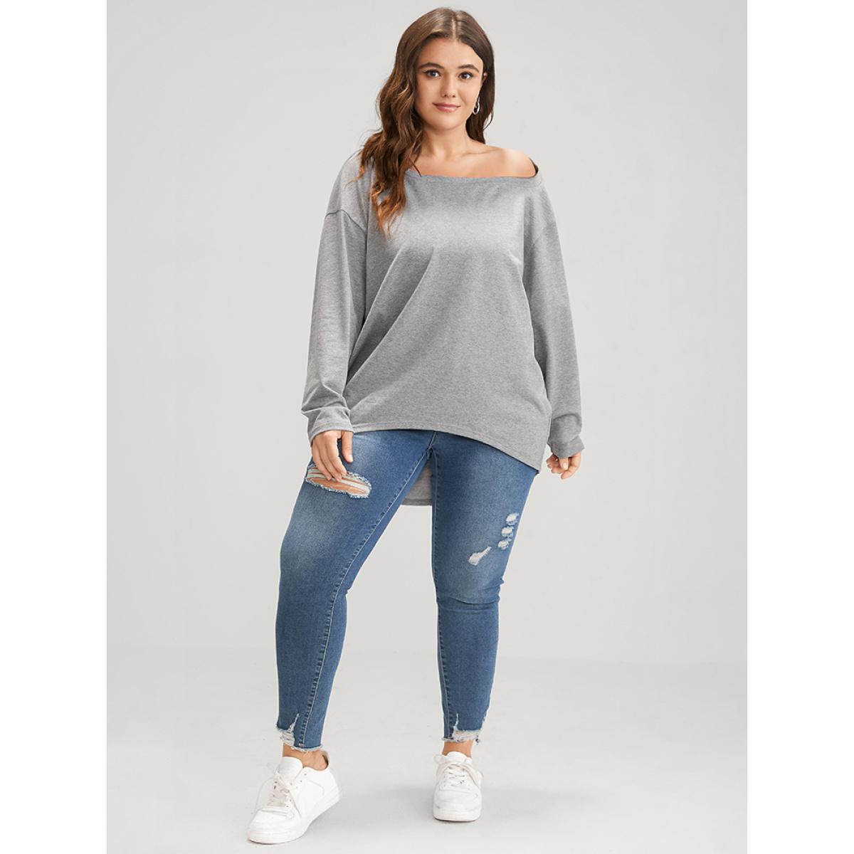 Plus Size Plain Asymmetrical Hem One Shoulder Sweatshirt Women Gray Casual Asymmetrical One Shoulder Dailywear Sweatshirts BloomChic 10/M