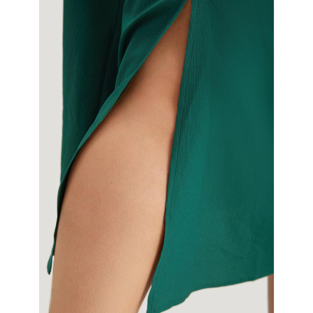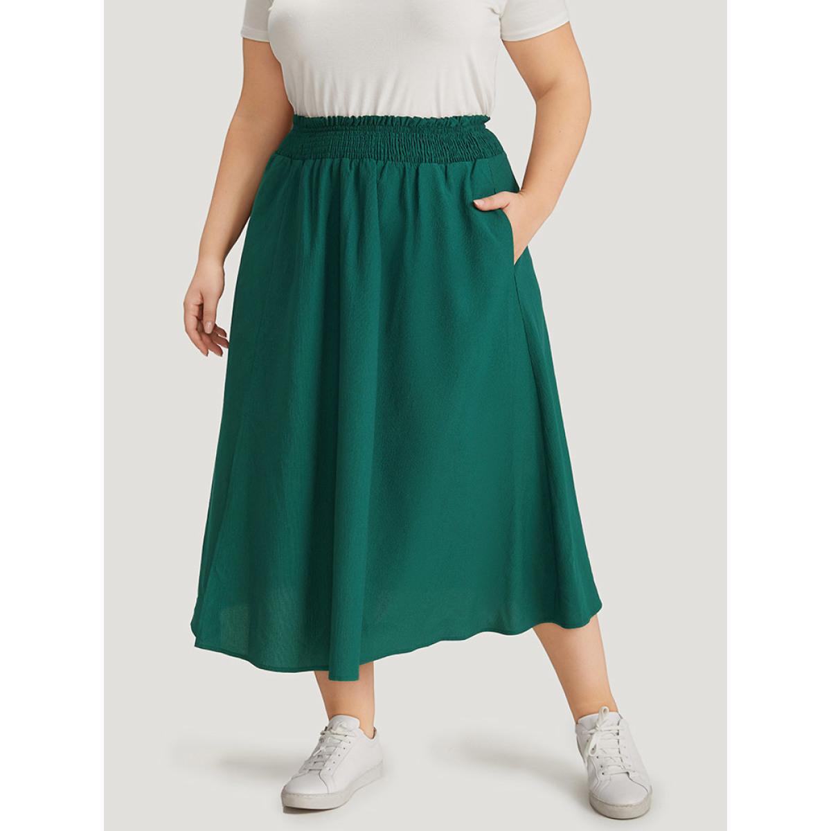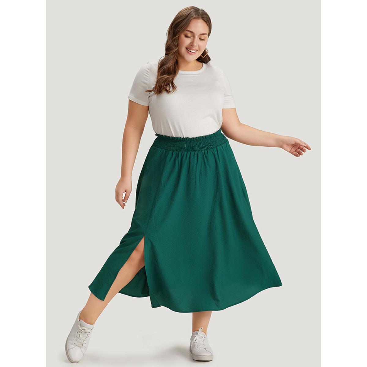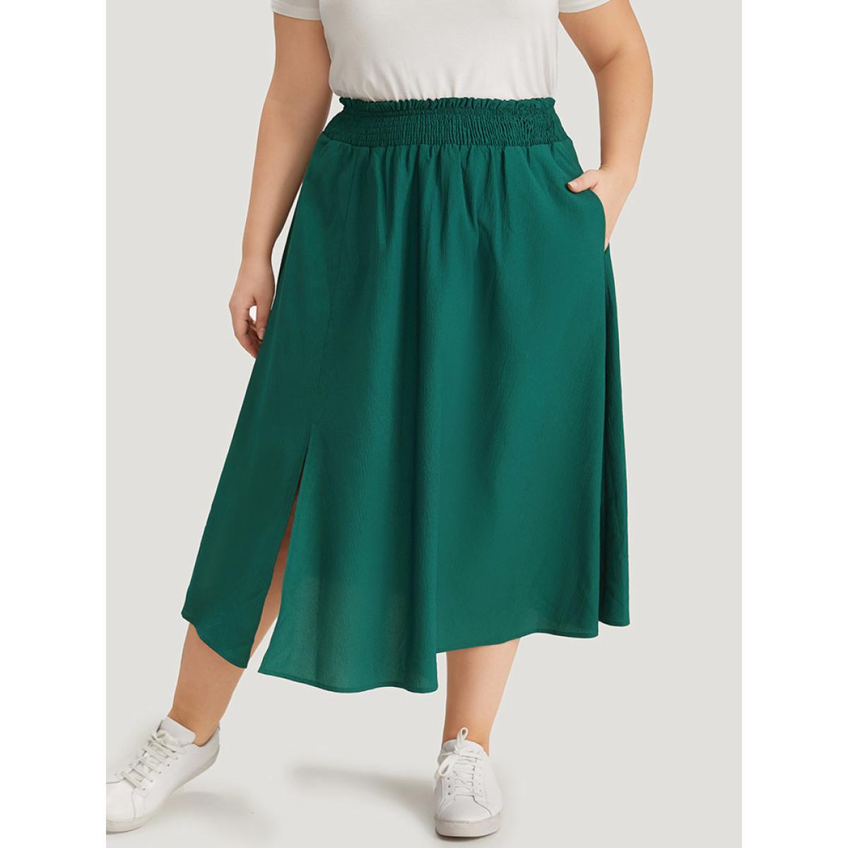 Plus Size Plain Pocket Shirred Split Side Flutter Skirt Women Cyan Casual Plain No stretch Pocket Dailywear Skirts BloomChic 22-24/3X