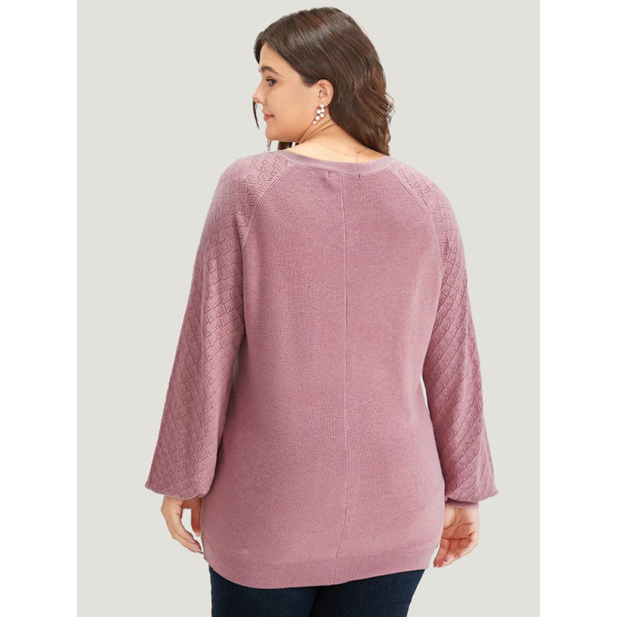 Plus Size Plain Raglan Sleeve Eyelet Button Fly Cardigan Rouge Women Casual Loose Long Sleeve Dailywear Cardigans BloomChic 14-16/1X