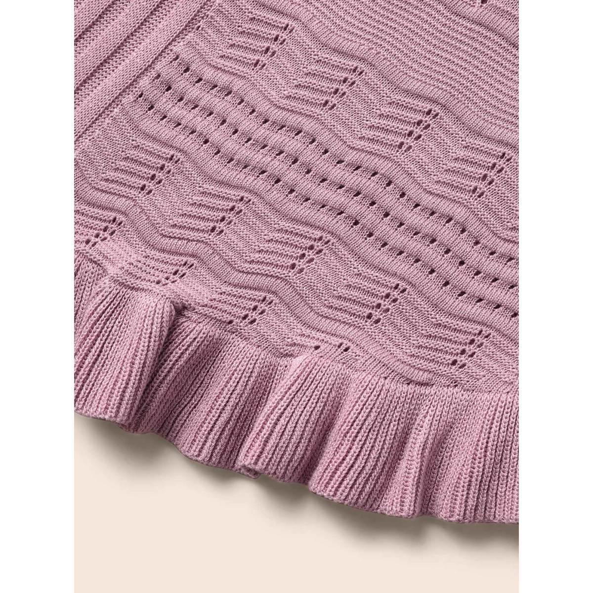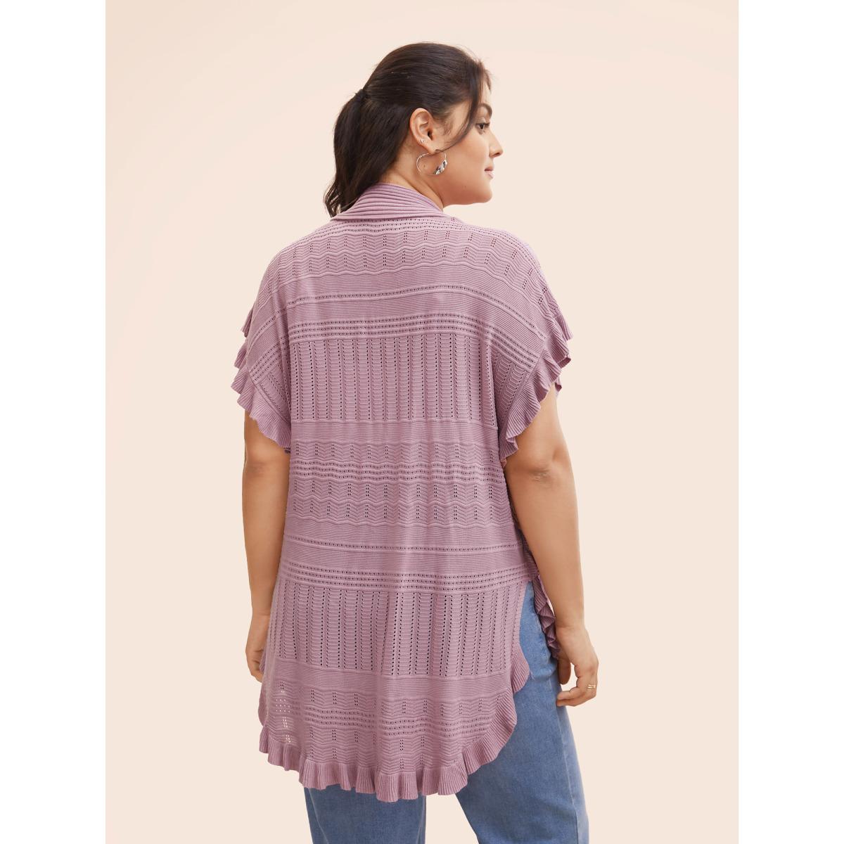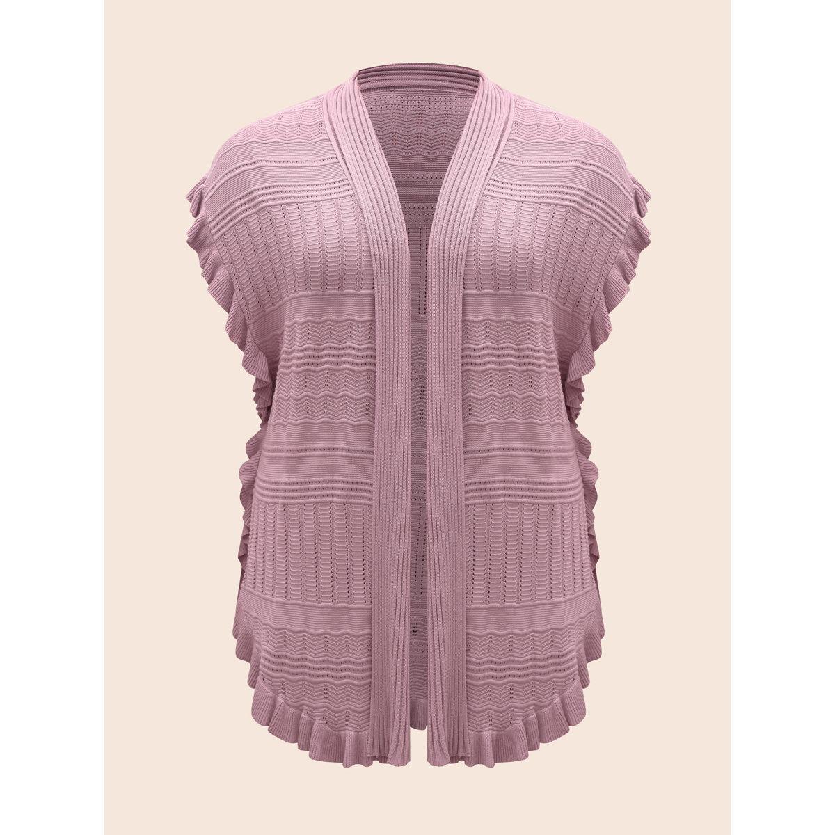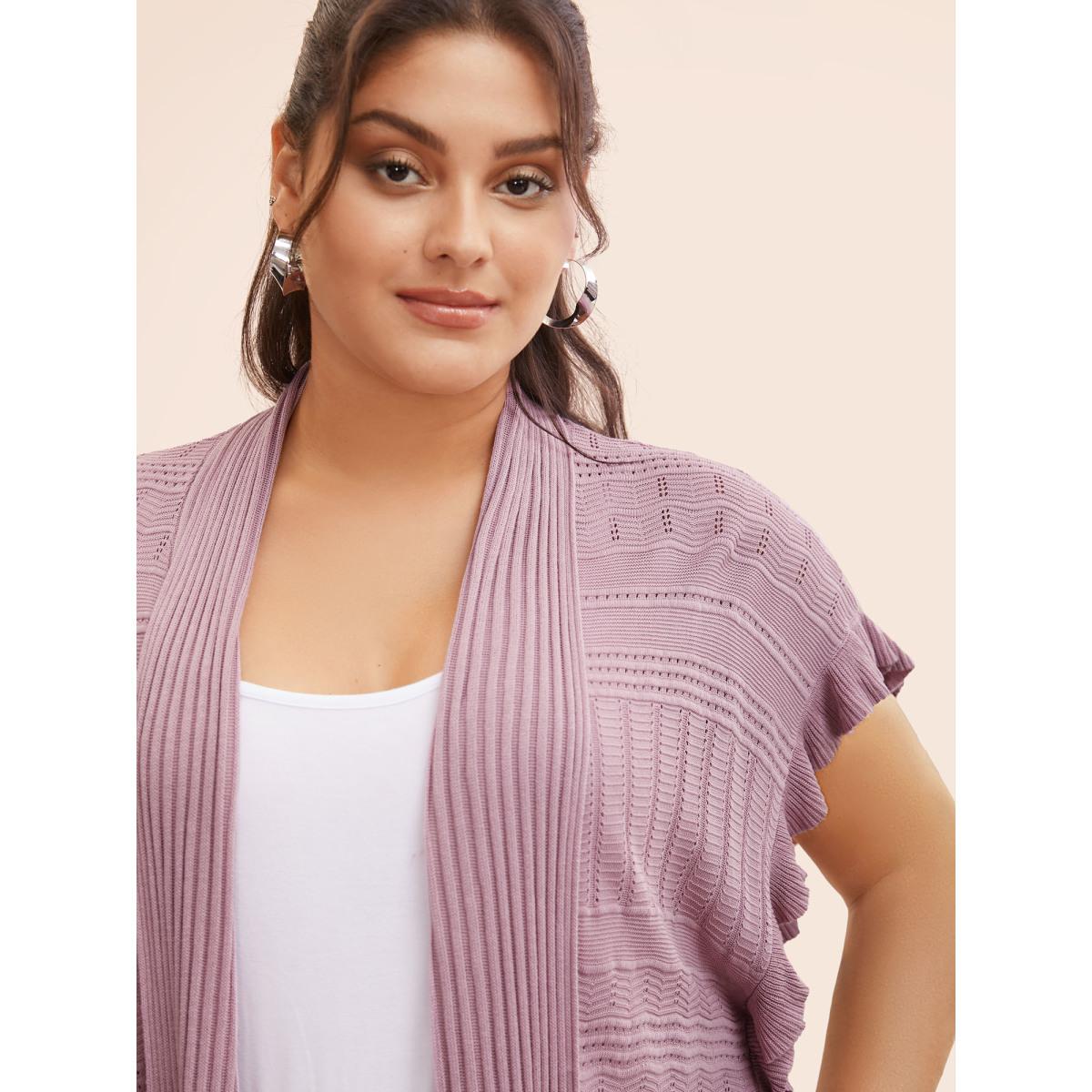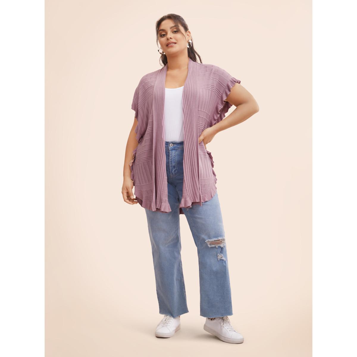 Plus Size Plain Textured Patchwork Ruffle Trim Cardigan Rouge Women Casual Loose Short sleeve Everyday Cardigans BloomChic 22-24/3X