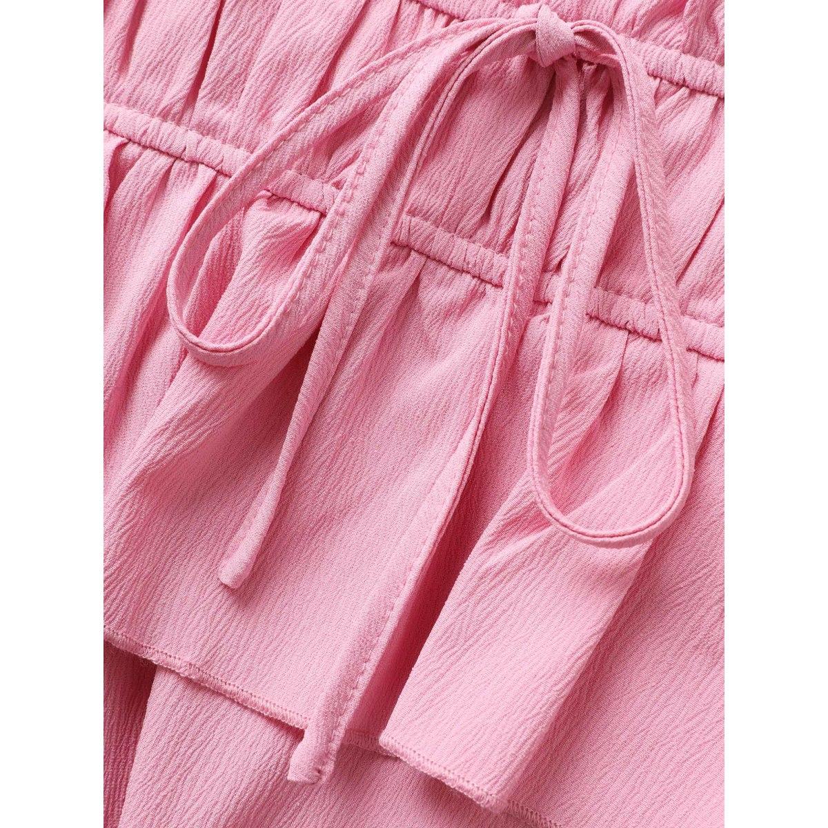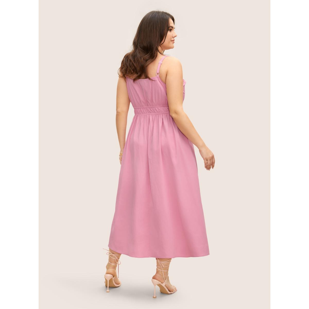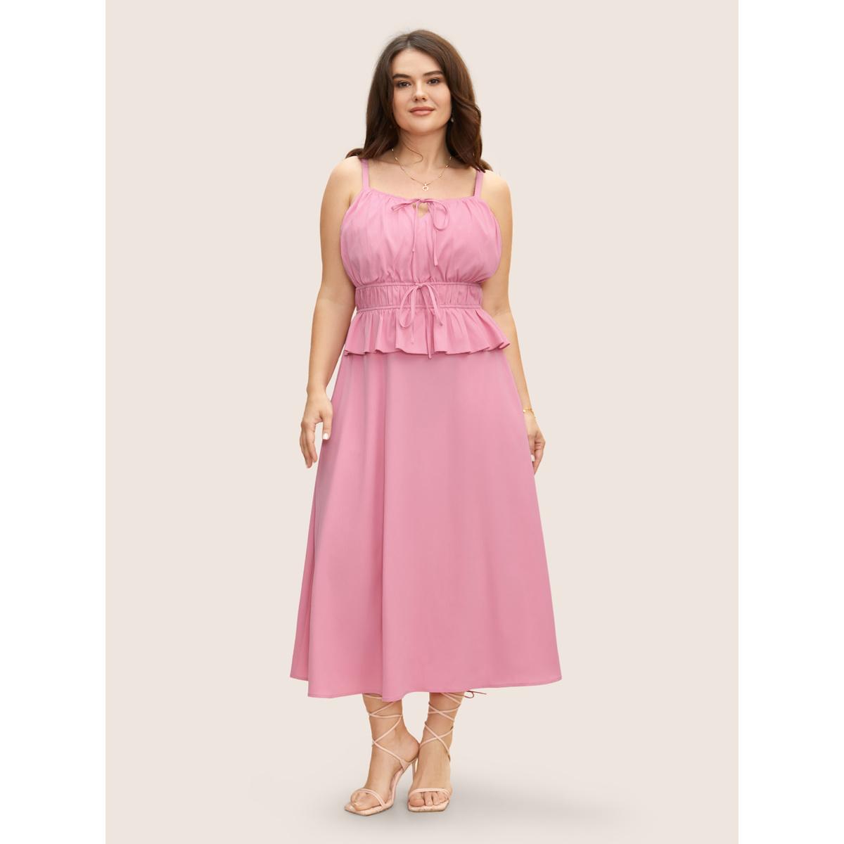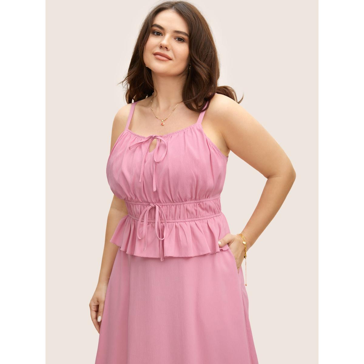 Plus Size Plain Textured Tie Knot Ruffles Cami Dress Blush Women Elegant Tie knot Non Sleeveless Curvy BloomChic 22-24/3X Product Image