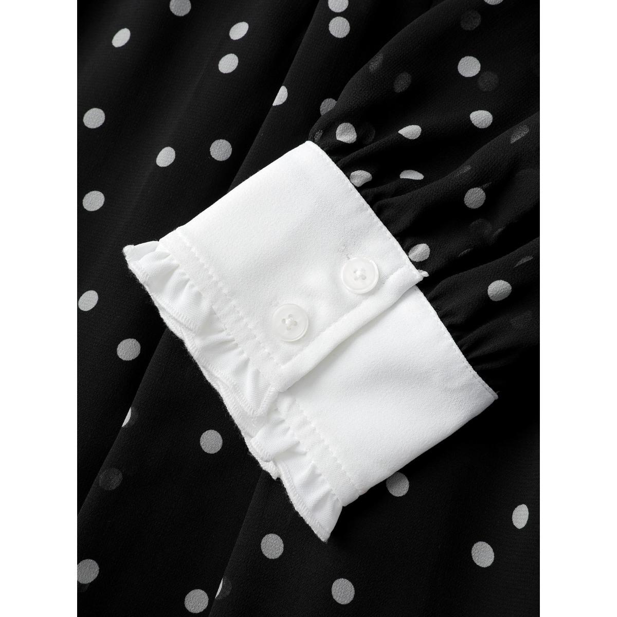 Plus Size Polka Dots Doll Collar Contrast Midi Dress Black Women Timeless Contrast Peter Pan collar Long Sleeve Curvy BloomChic 22-24/3X
