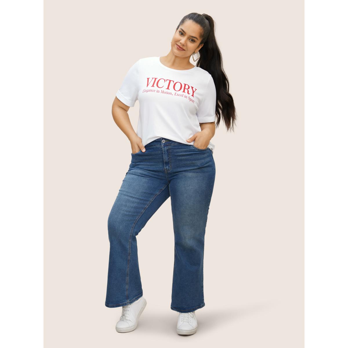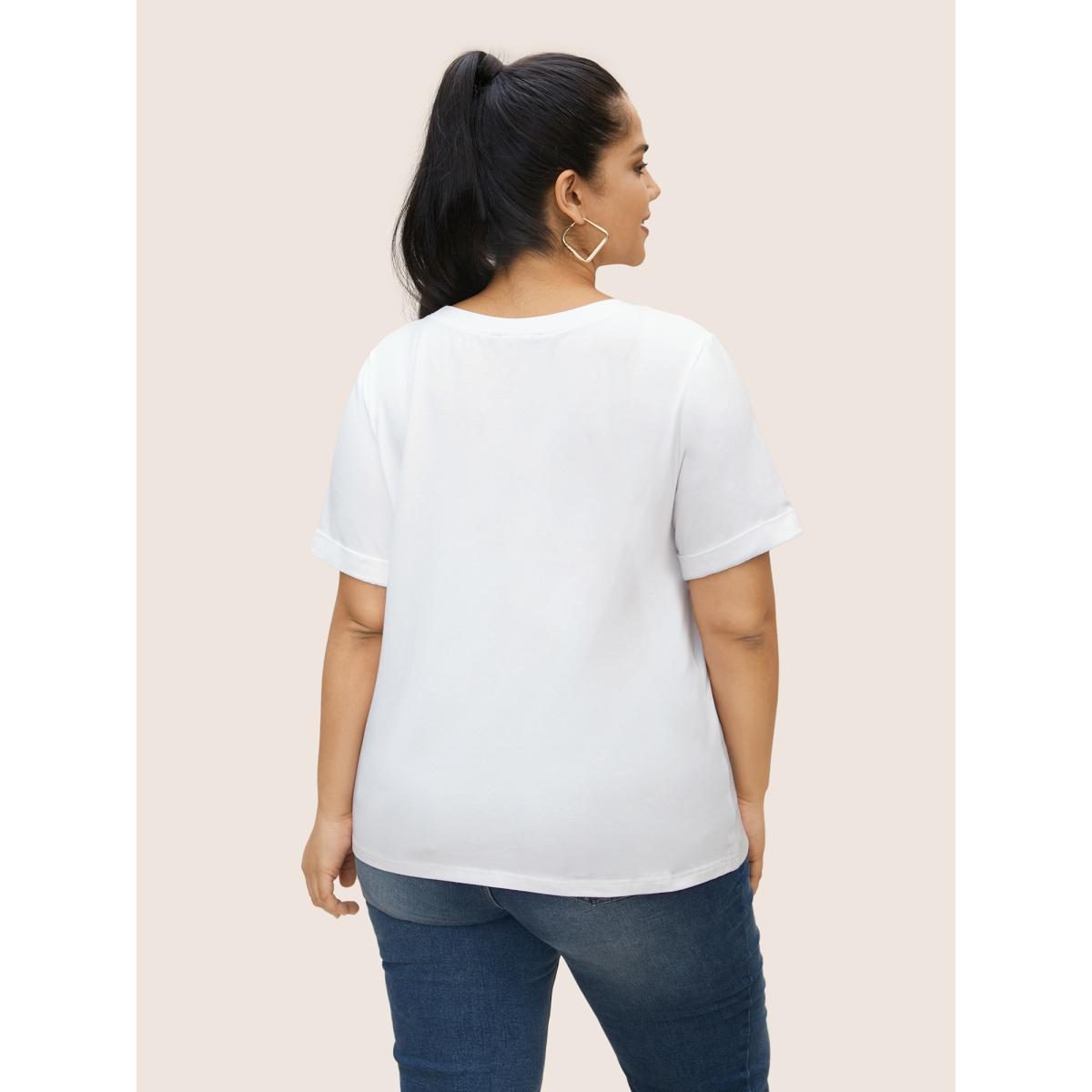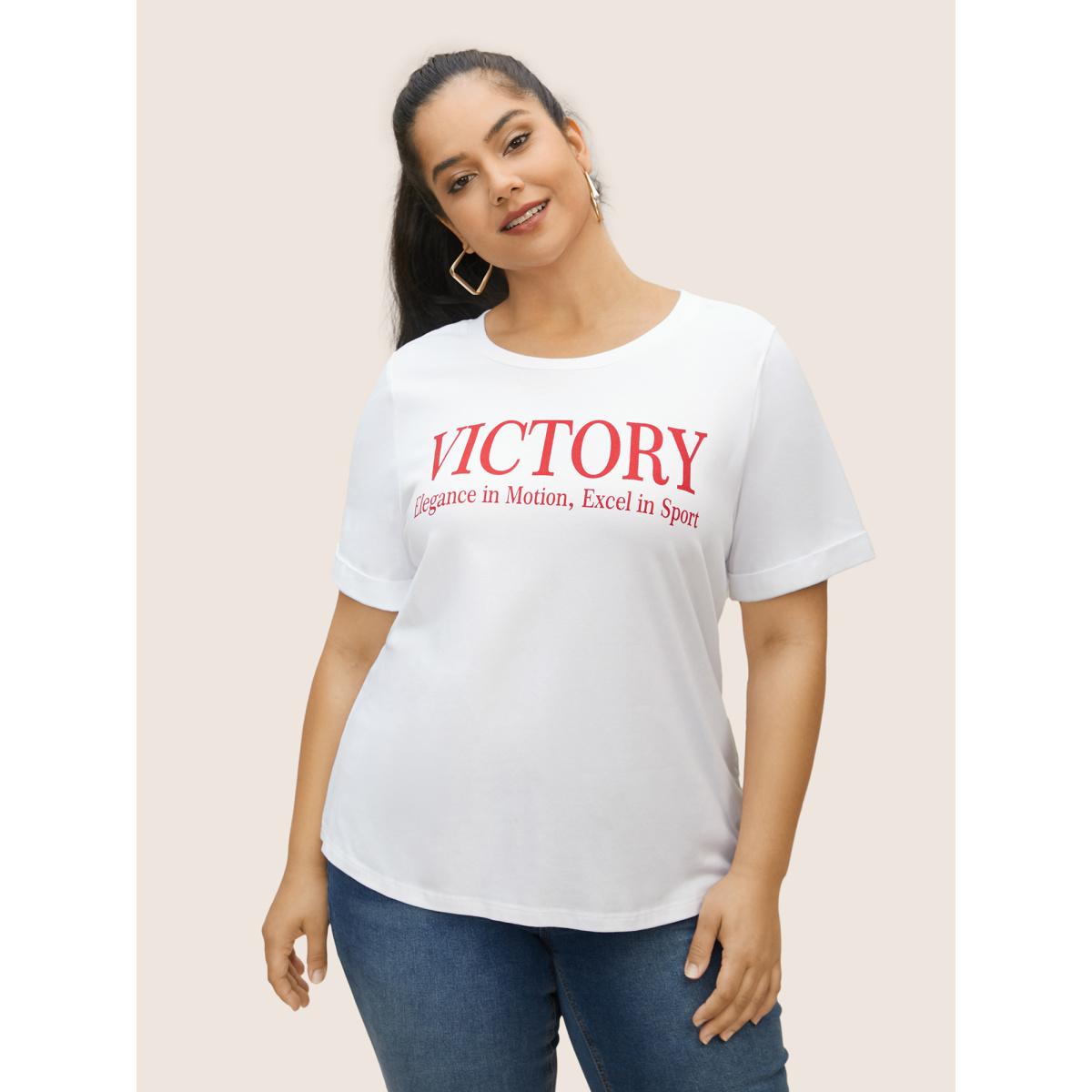 Plus Size Positive Slogans Print Round Neck T-shirt Originalwhite Women Casual Contrast Art&design Round Neck Everyday T-shirts BloomChic 30/6X