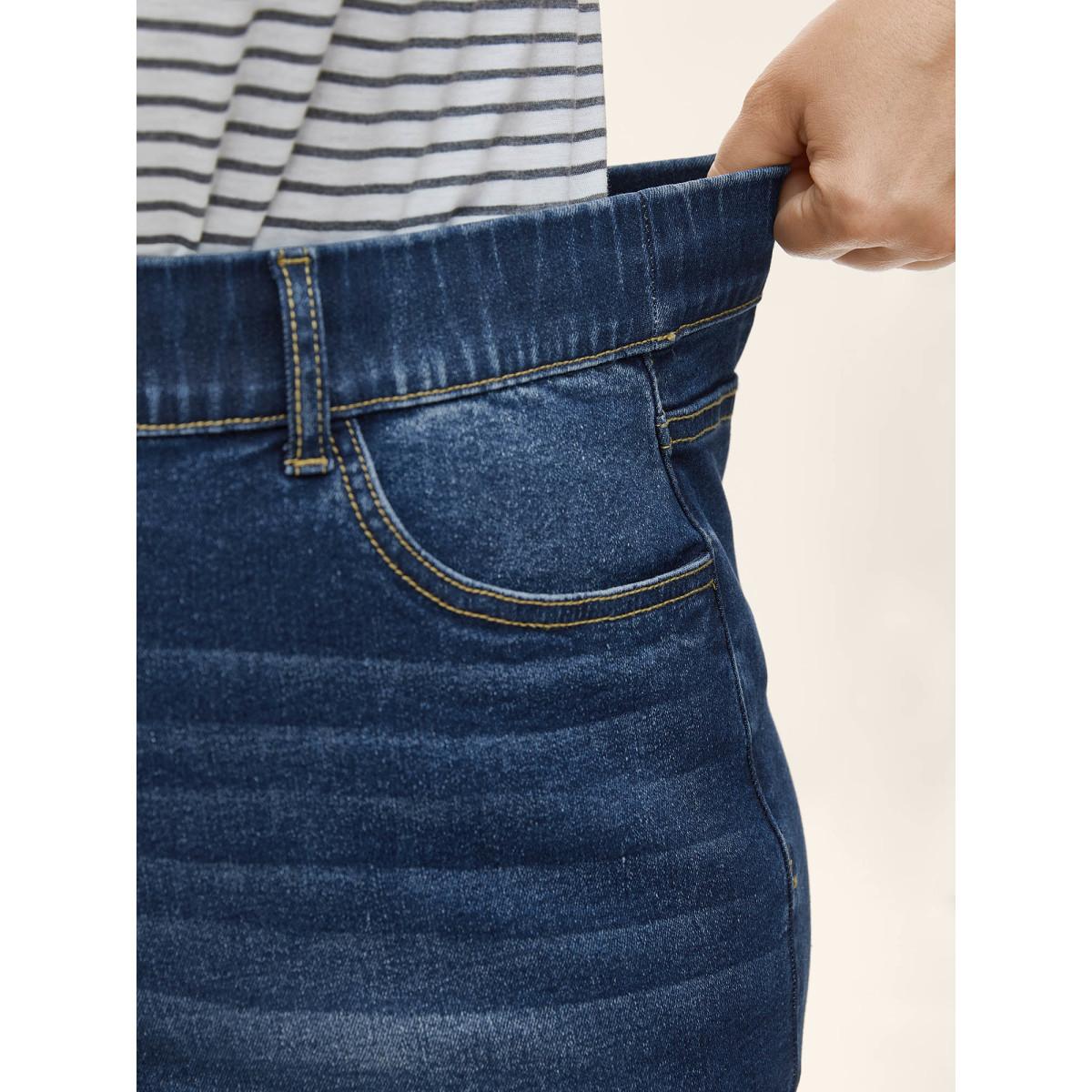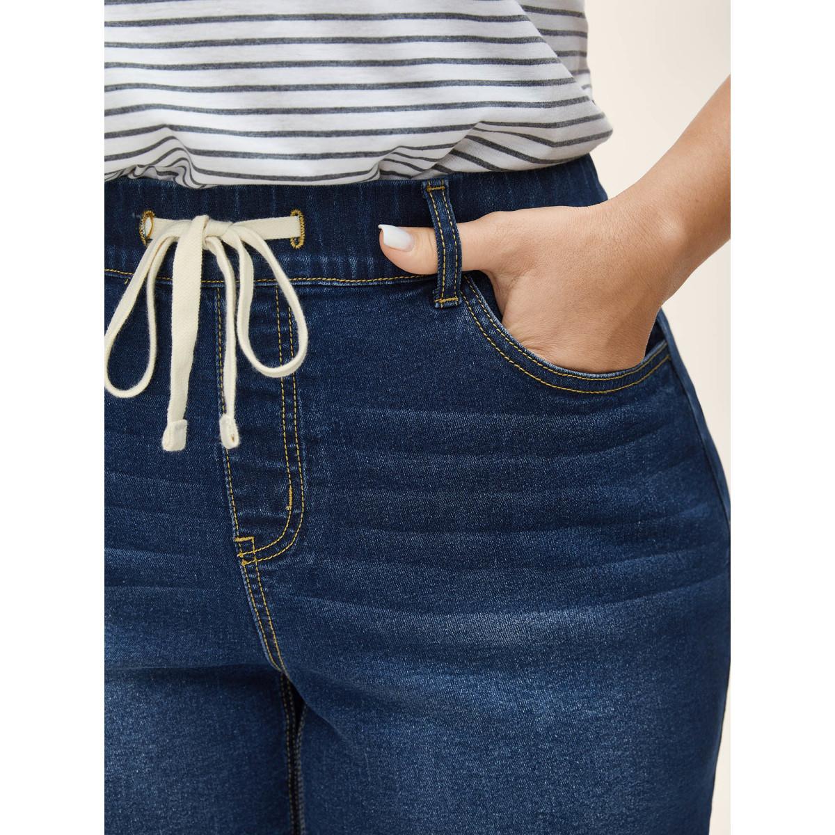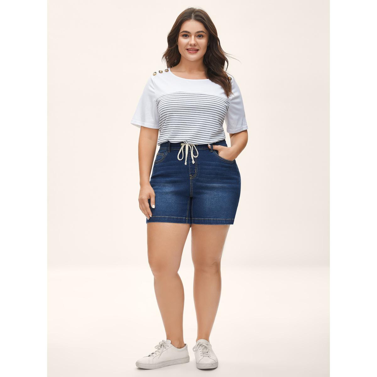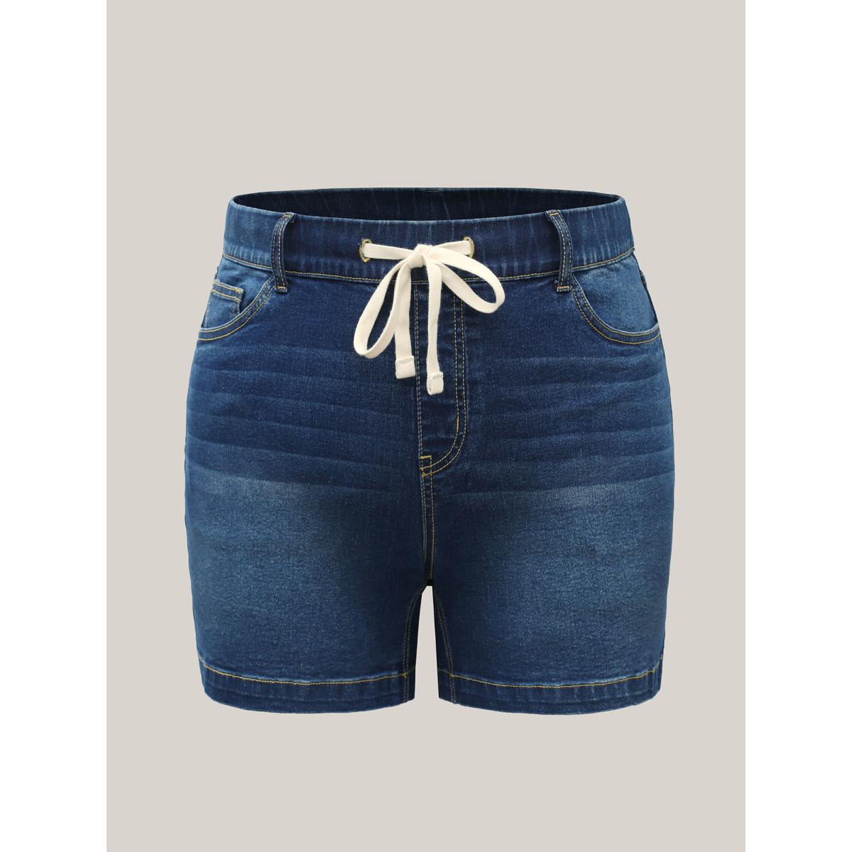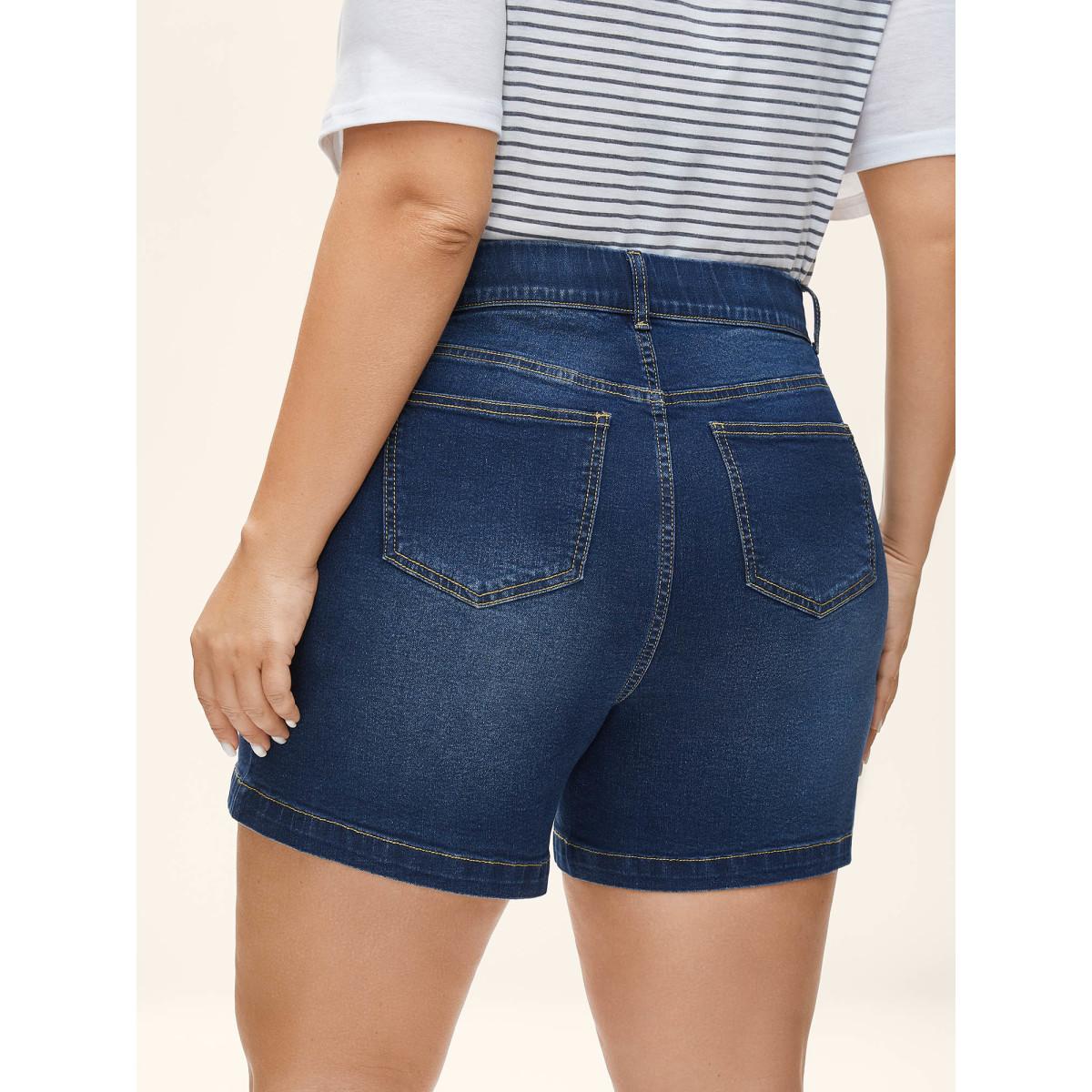 Plus Size Pull-On Relaxed Fit Denim Shorts Women Denimindigo Medium stretch Casual Slanted pocket Leisure Denim Shorts BloomChic 16/1X