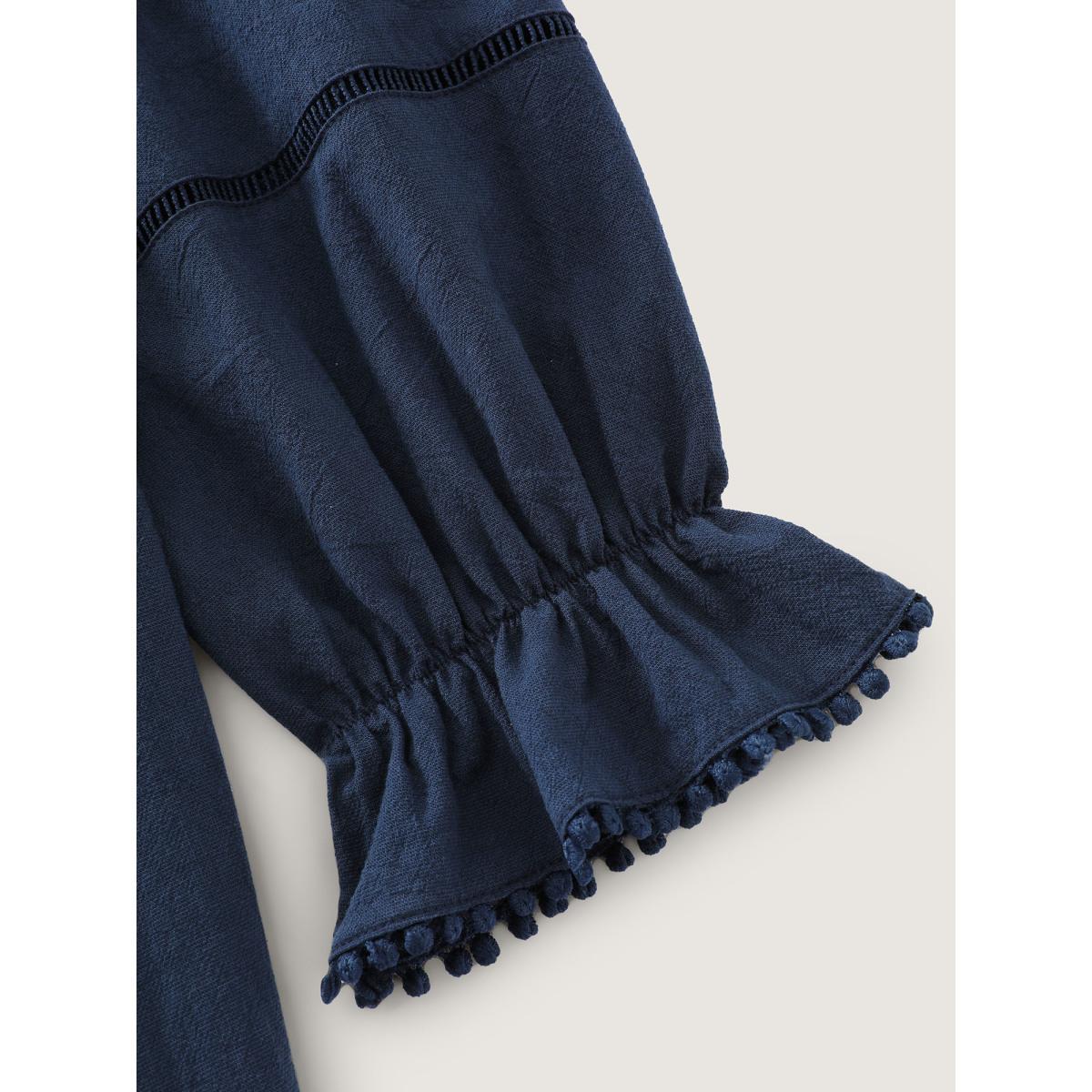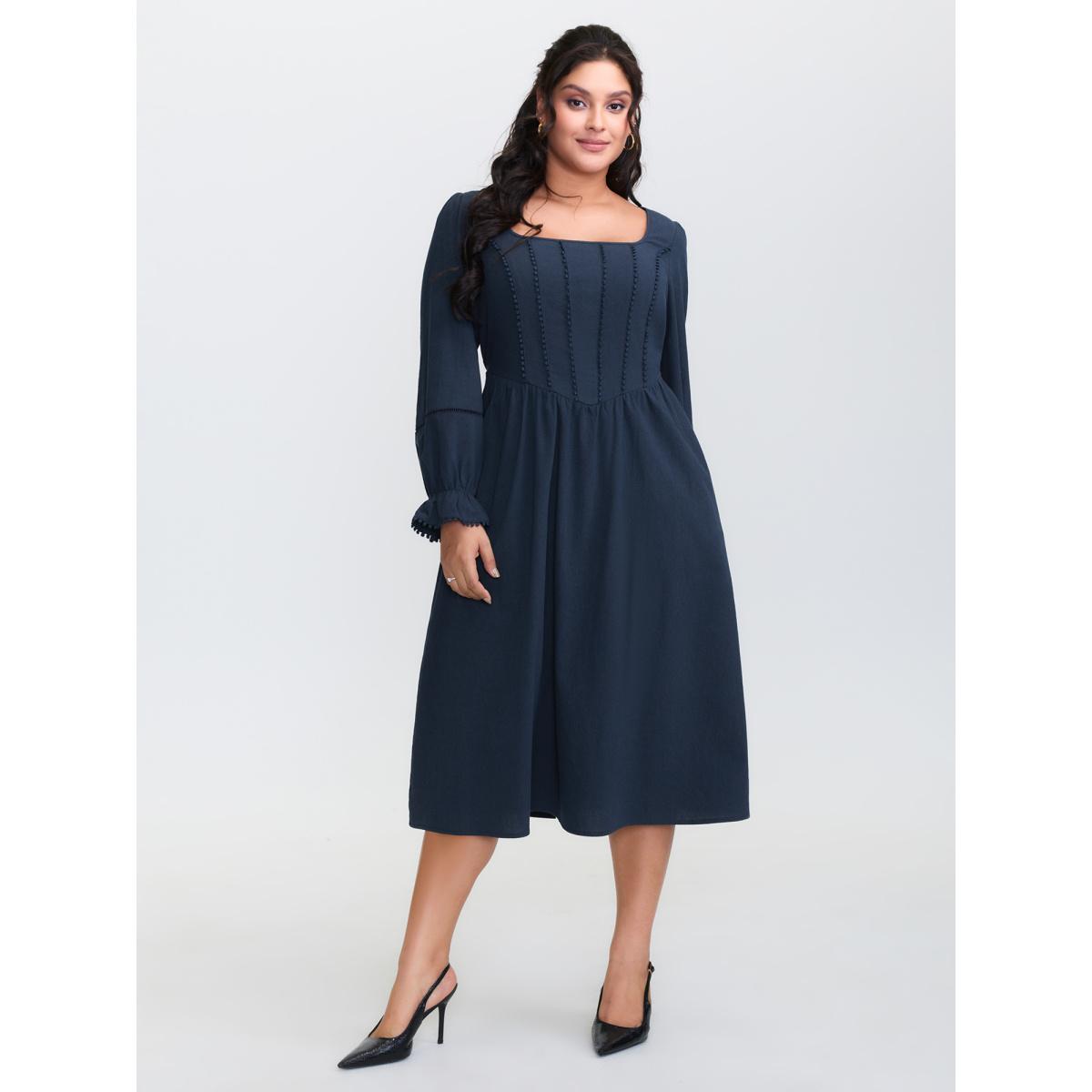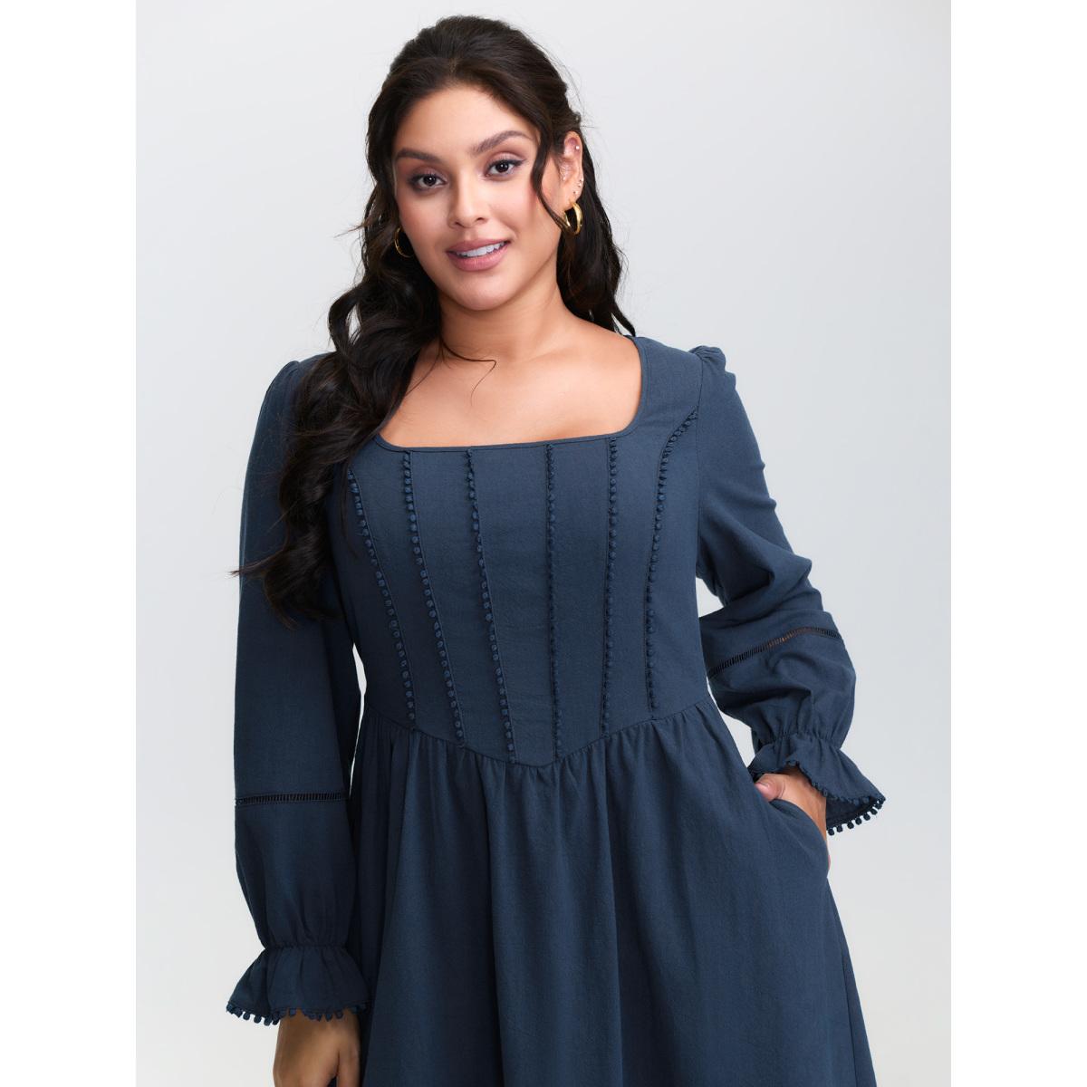 Plus Size Pure Cotton Back-Tie Pockets Midi Dress Indigo Women Timeless Square Neck Long Sleeve Curvy BloomChic 26/4X Product Image