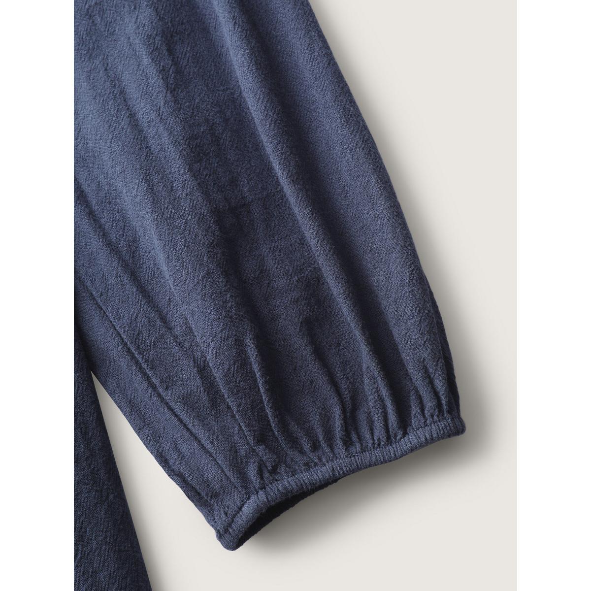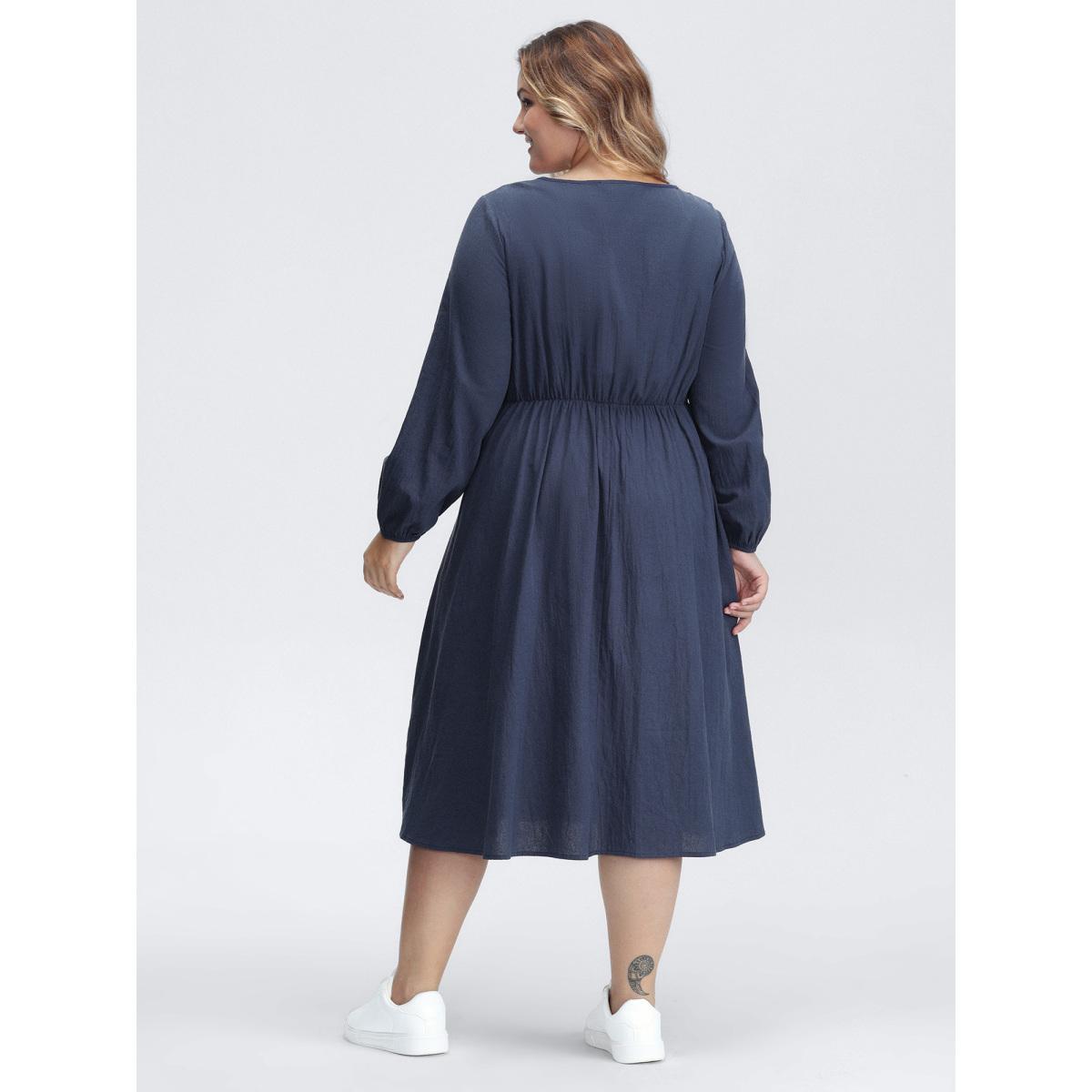 Plus Size Plain Shirred Patchwork Gathered Dress Indigo Women Casual Elastic cuffs V-neck Long Sleeve Curvy Midi Dress BloomChic 14-16/1X