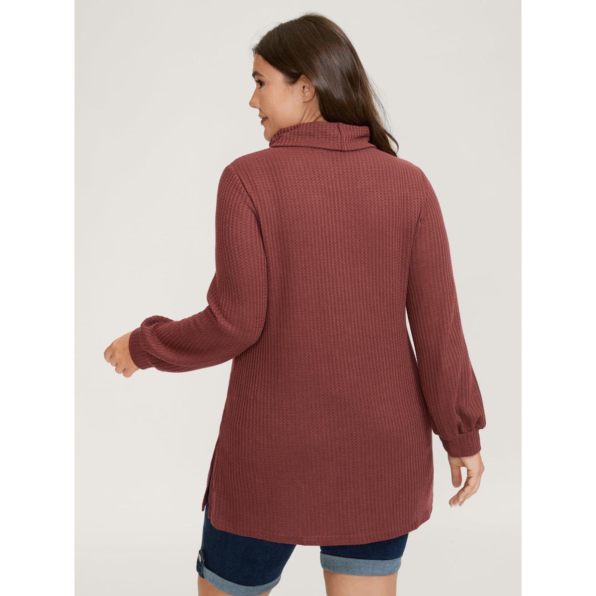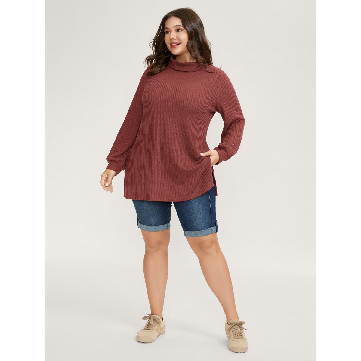 Plus Size Ribbed Stretchy Turtle Neck T-Shirt Rust Women Leisure Texture Turtleneck Loose Casual T-shirts BloomChic 14-16/1X Product Image