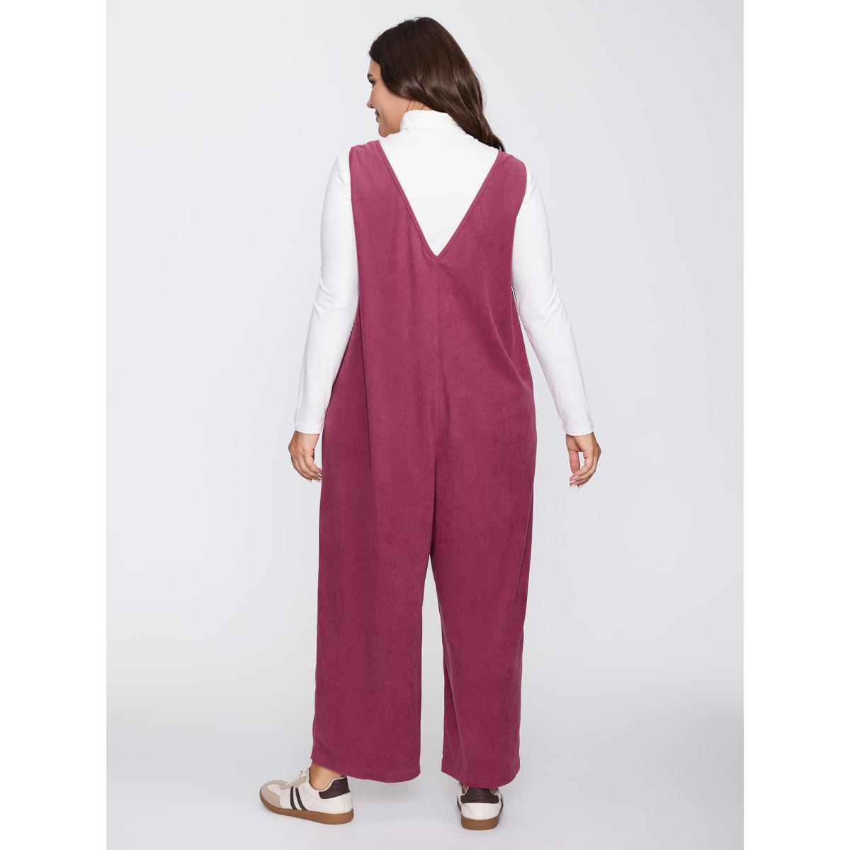 Plus Size Rosered Textured V-Neck Sleeveless Jumpsuit Women Leisure Sleeveless V-neck Casual Loose Jumpsuits BloomChic 14-16/1X