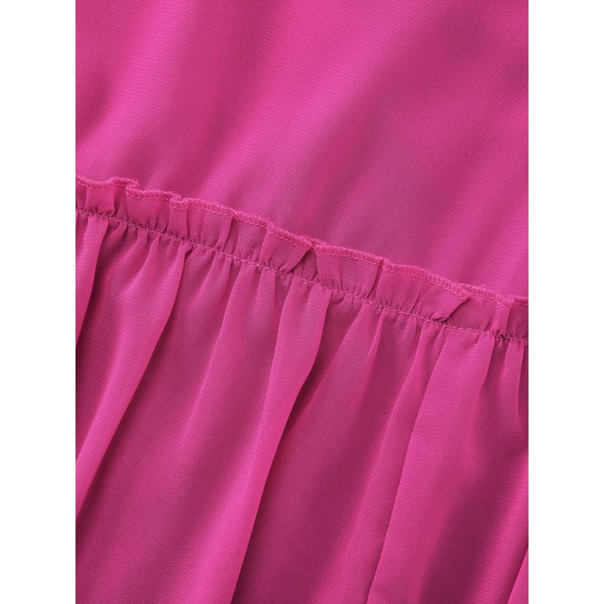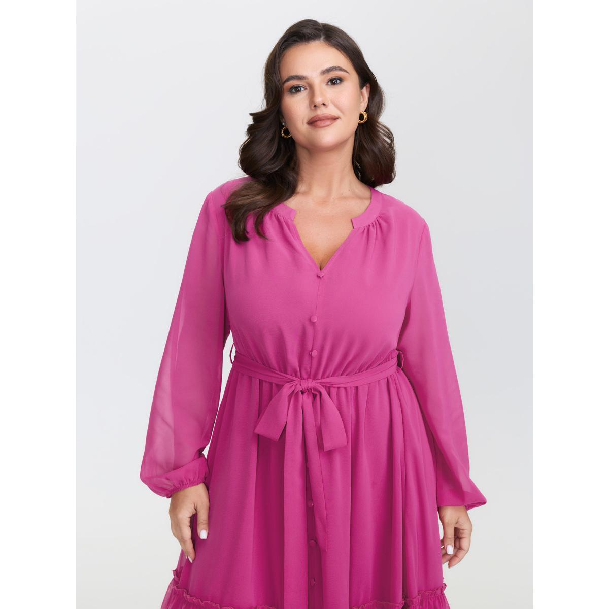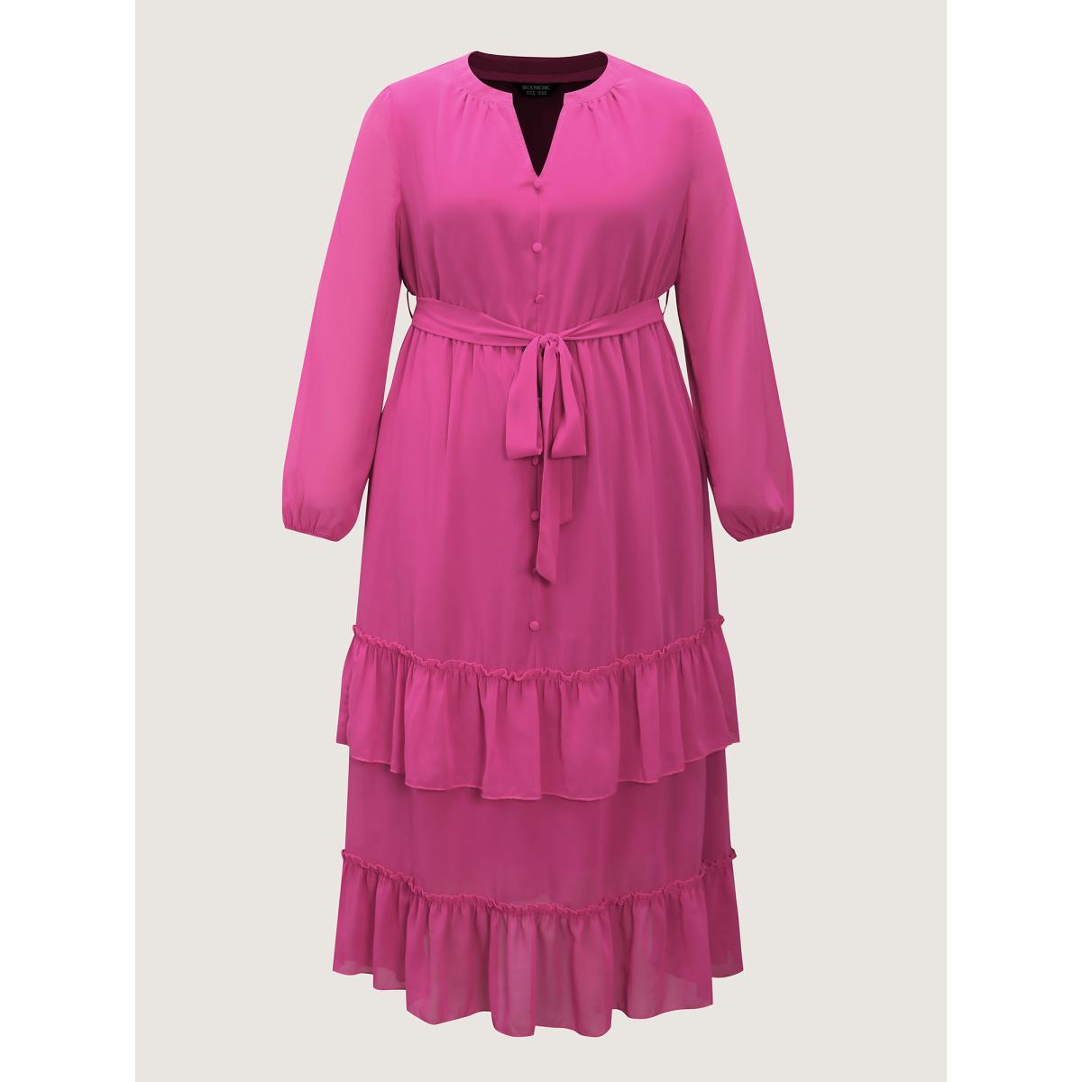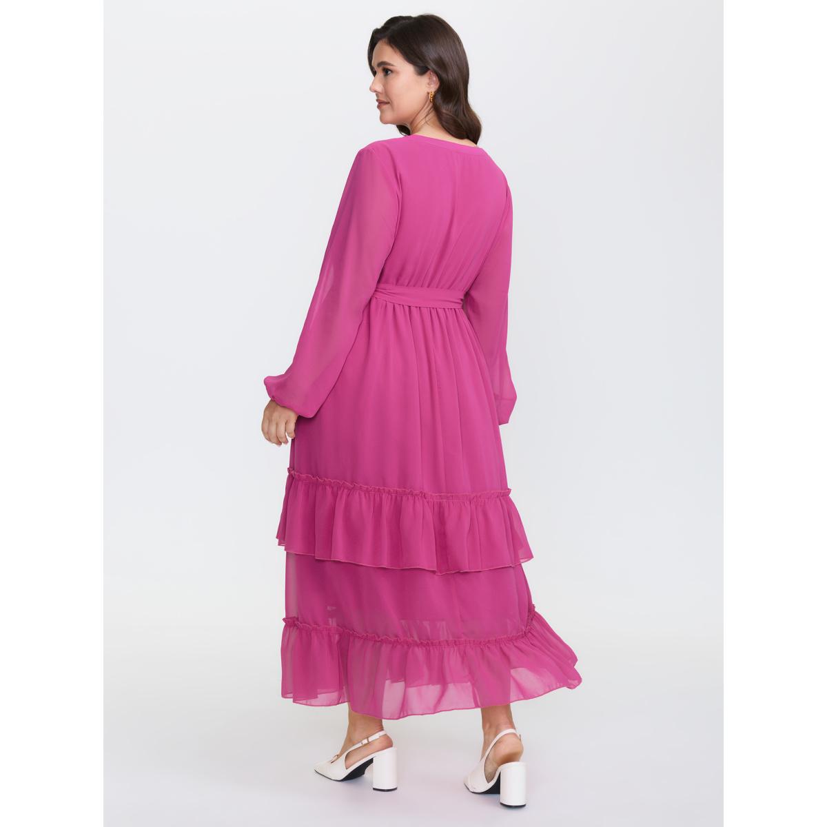Plus Size Ruffled Stretchy Waist-Tie Maxi Dress Peach Women Romantic Belted Flat collar with V-notch Long Sleeve Curvy BloomChic 10/M