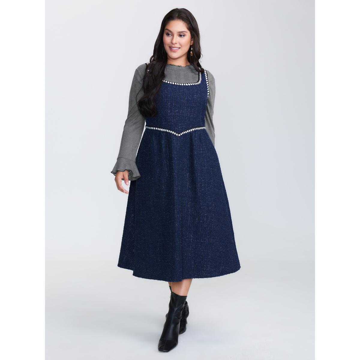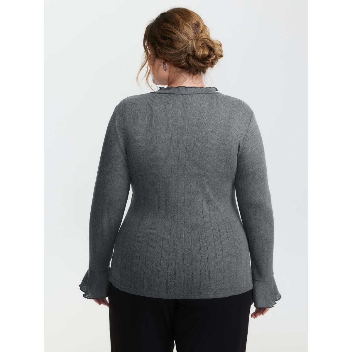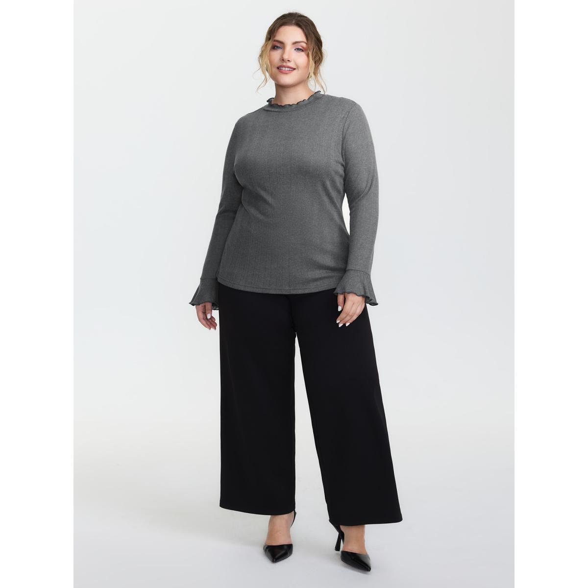 Plus Size Scalloped Trim High Neck Fitted T-Shirt DarkGray Women Timeless Mock Neck Elegant T-shirts BloomChic 12/L