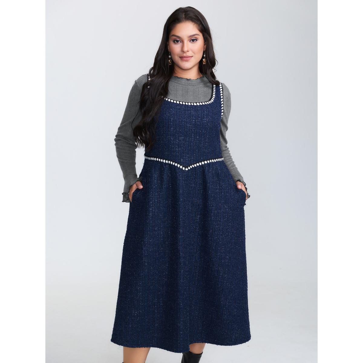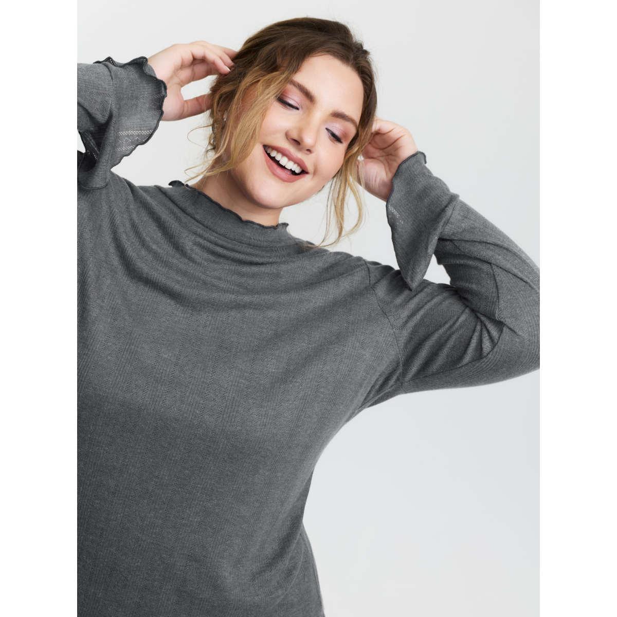Plus Size Scalloped Trim High Neck Fitted T-Shirt DarkGray Women Timeless Mock Neck Elegant T-shirts BloomChic 12/L Product Image