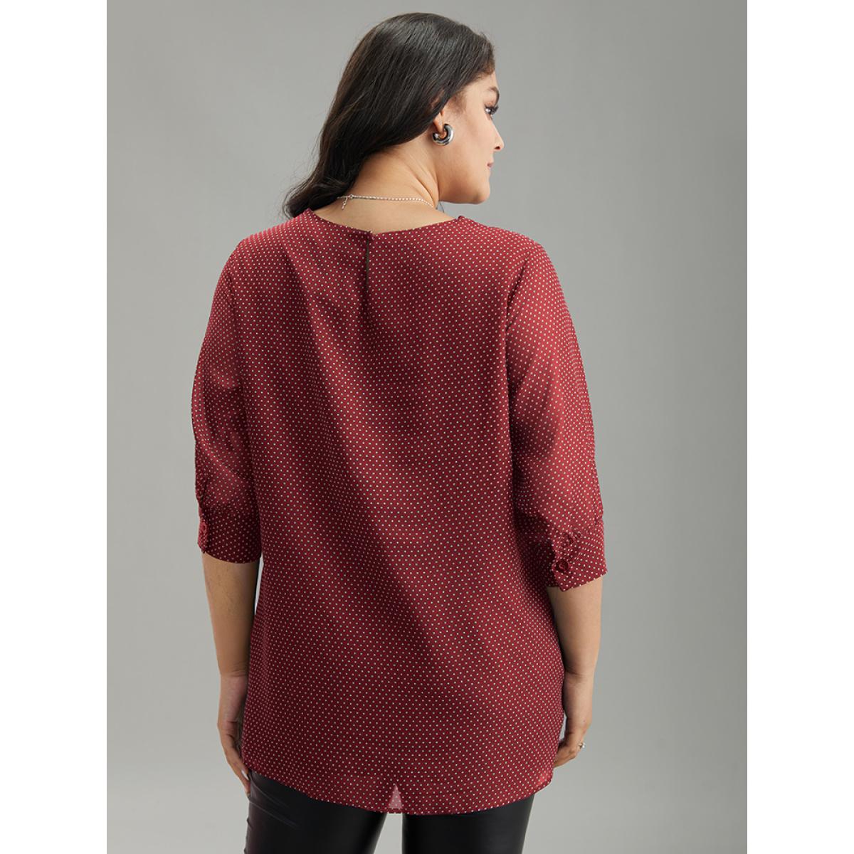 Plus Size Scarlet Chiffon Polka Dot Mesh Keyhole Twist Front Blouse Women Office Elbow-length sleeve Round Neck Work Blouses BloomChic 14-16/1X