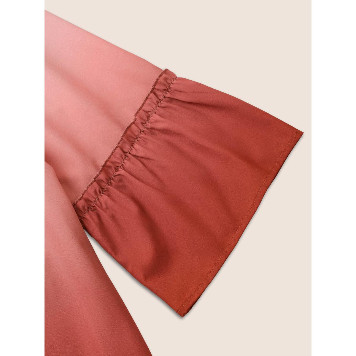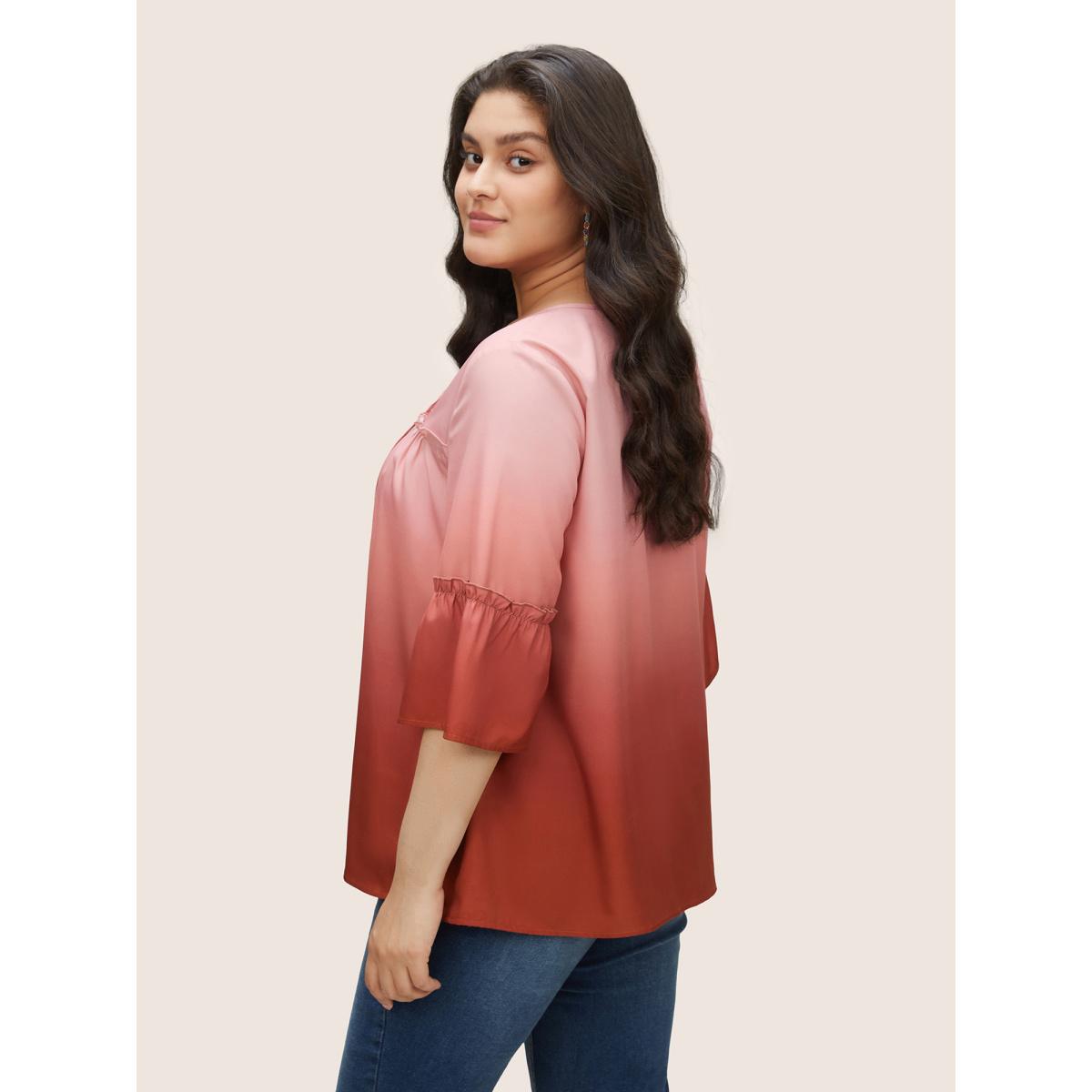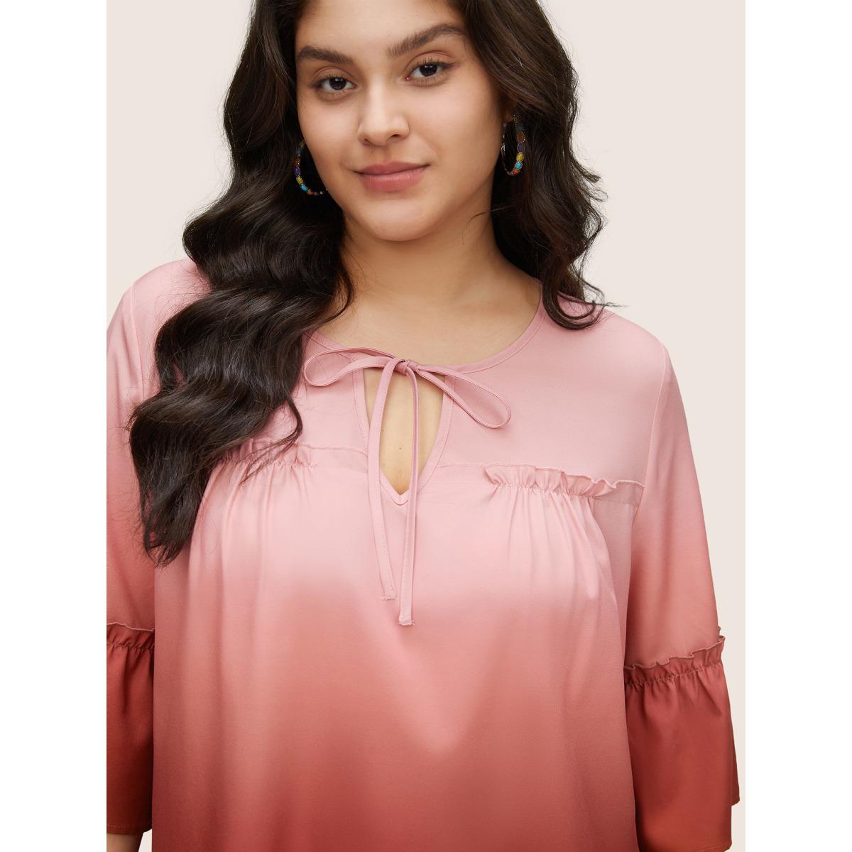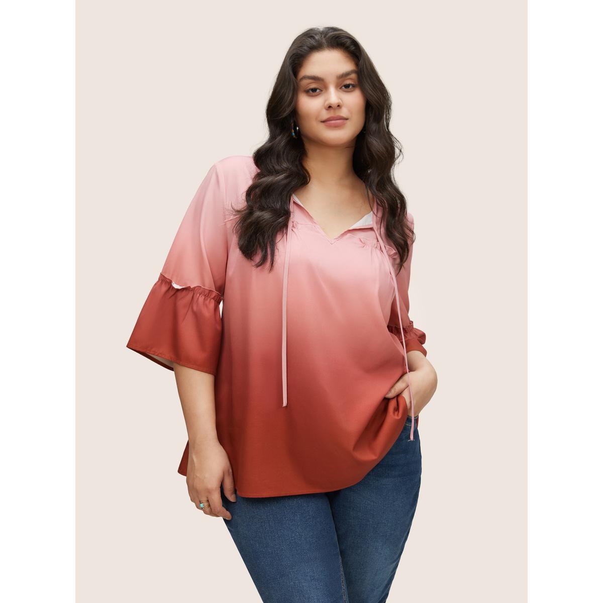 Plus Size Scarlet Ombre Tie Neck Gathered Ruffle Sleeve Blouse Women Resort Elbow-length sleeve Notched collar Vacation Blouses BloomChic 26/4X