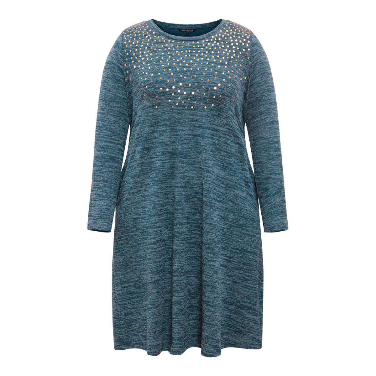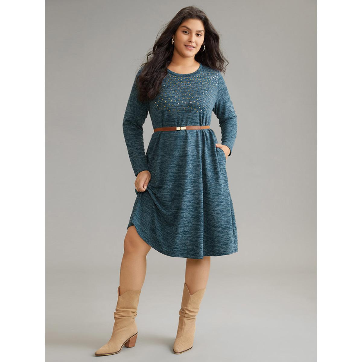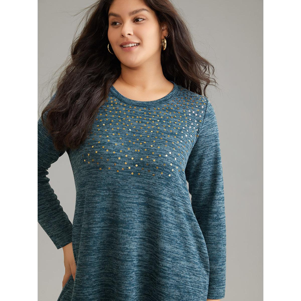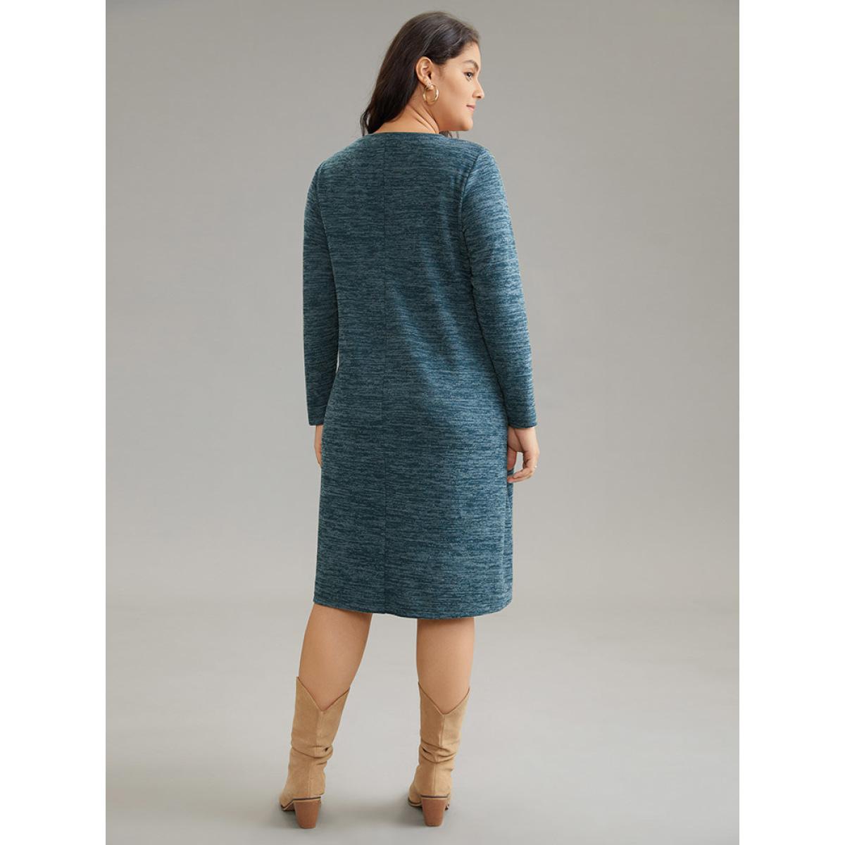 Plus Size Sequin Heather Pocket Long Sleeve Dress Aegean Women Basics Sequin Round Neck Long Sleeve Curvy Midi Dress BloomChic 30/6X