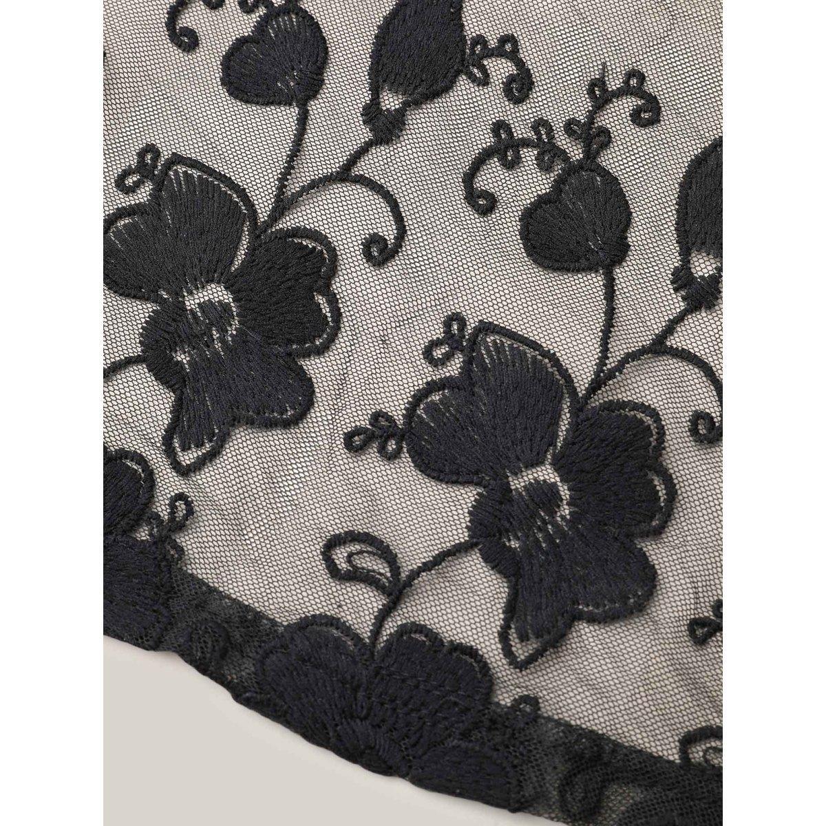 Plus Size Halloween Supersoft Essentials Plain Patchwork Open Front Mesh Kimono Women Black Casual Plain Dailywear Kimonos BloomChic 18-20/2X