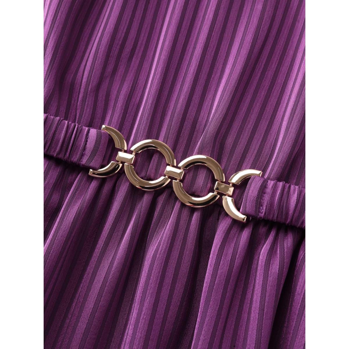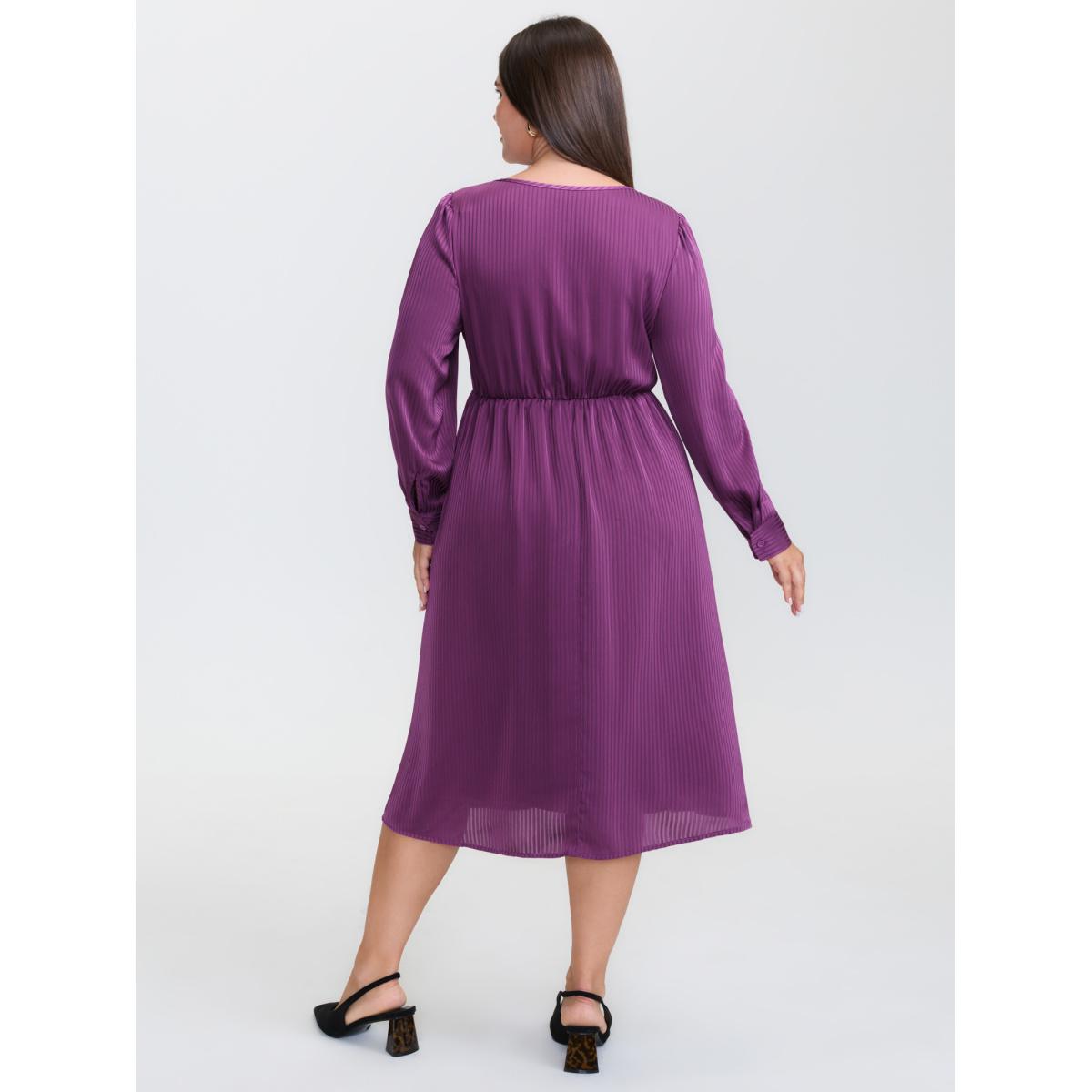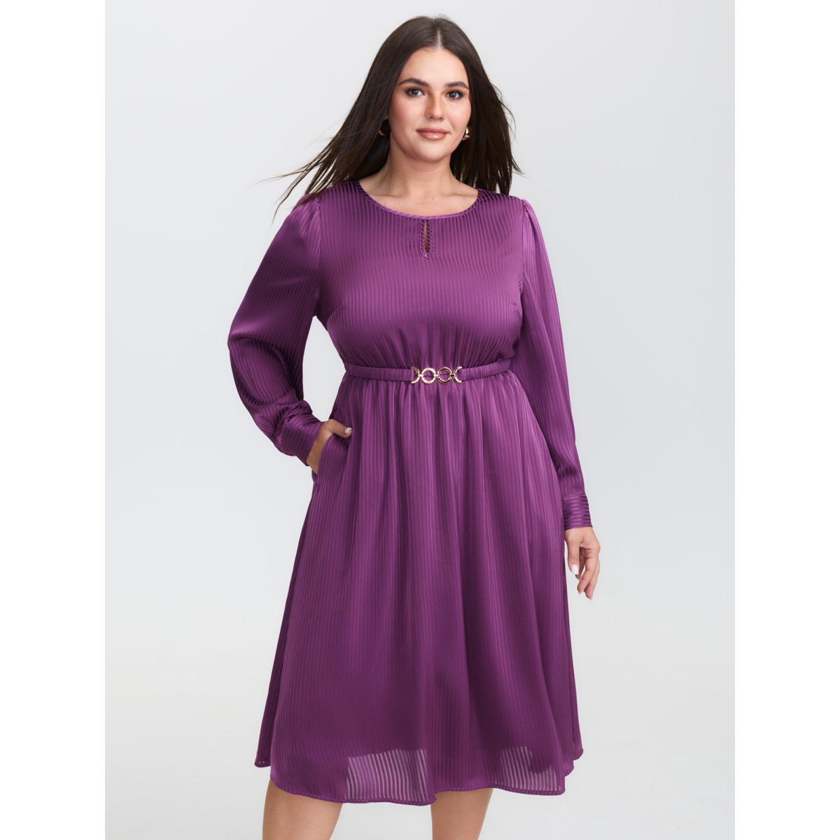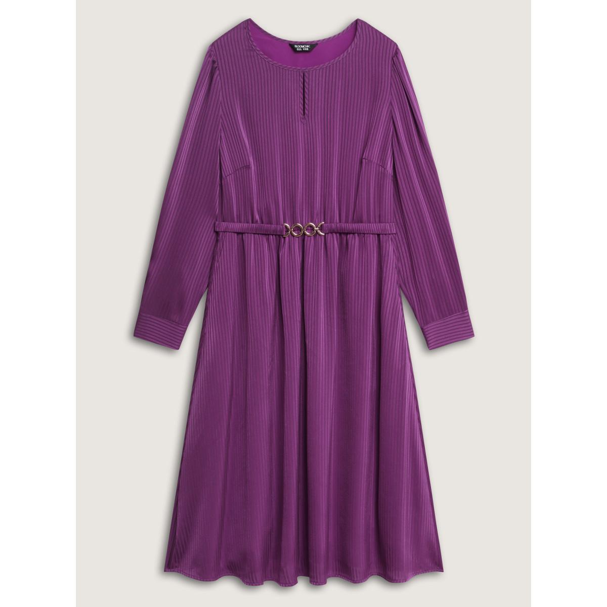 Plus Size Shimmery Loop Belted Waist Midi Dress Deeppurplered Women Office Round Neck Long Sleeve Curvy BloomChic 10/M