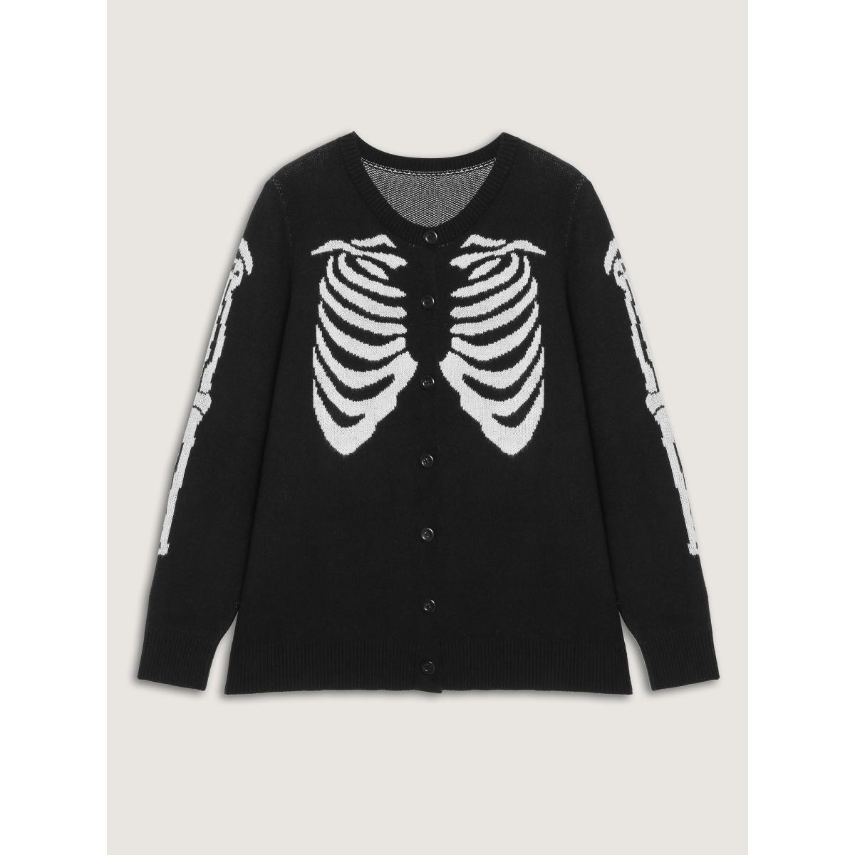 Plus Size Skeleton Ribcage Print Button Knit Cardigan Black Women Playful Loose Long Sleeve Casual Cardigans BloomChic 26/4X