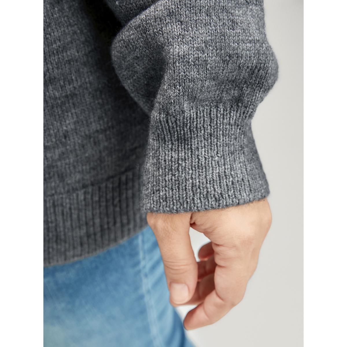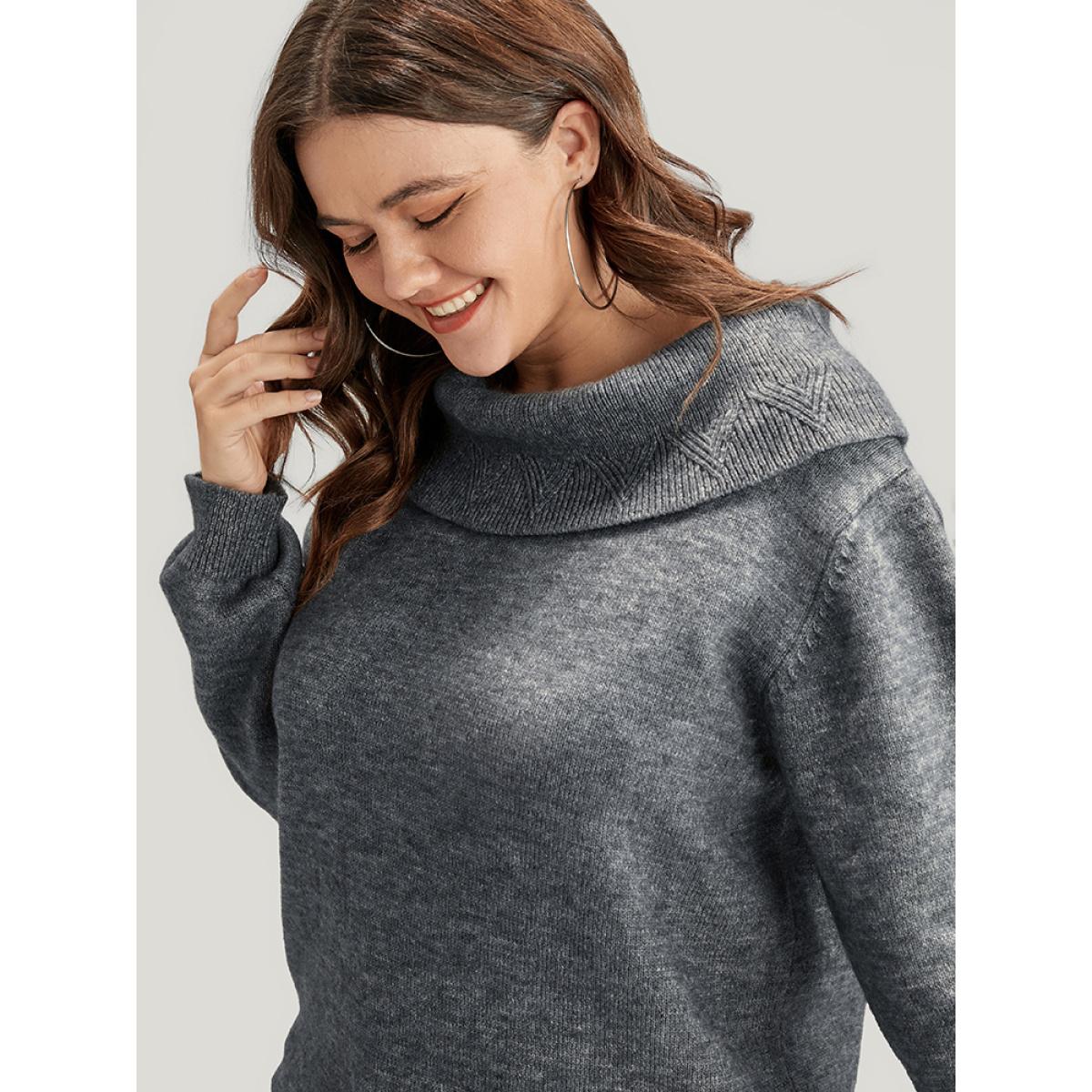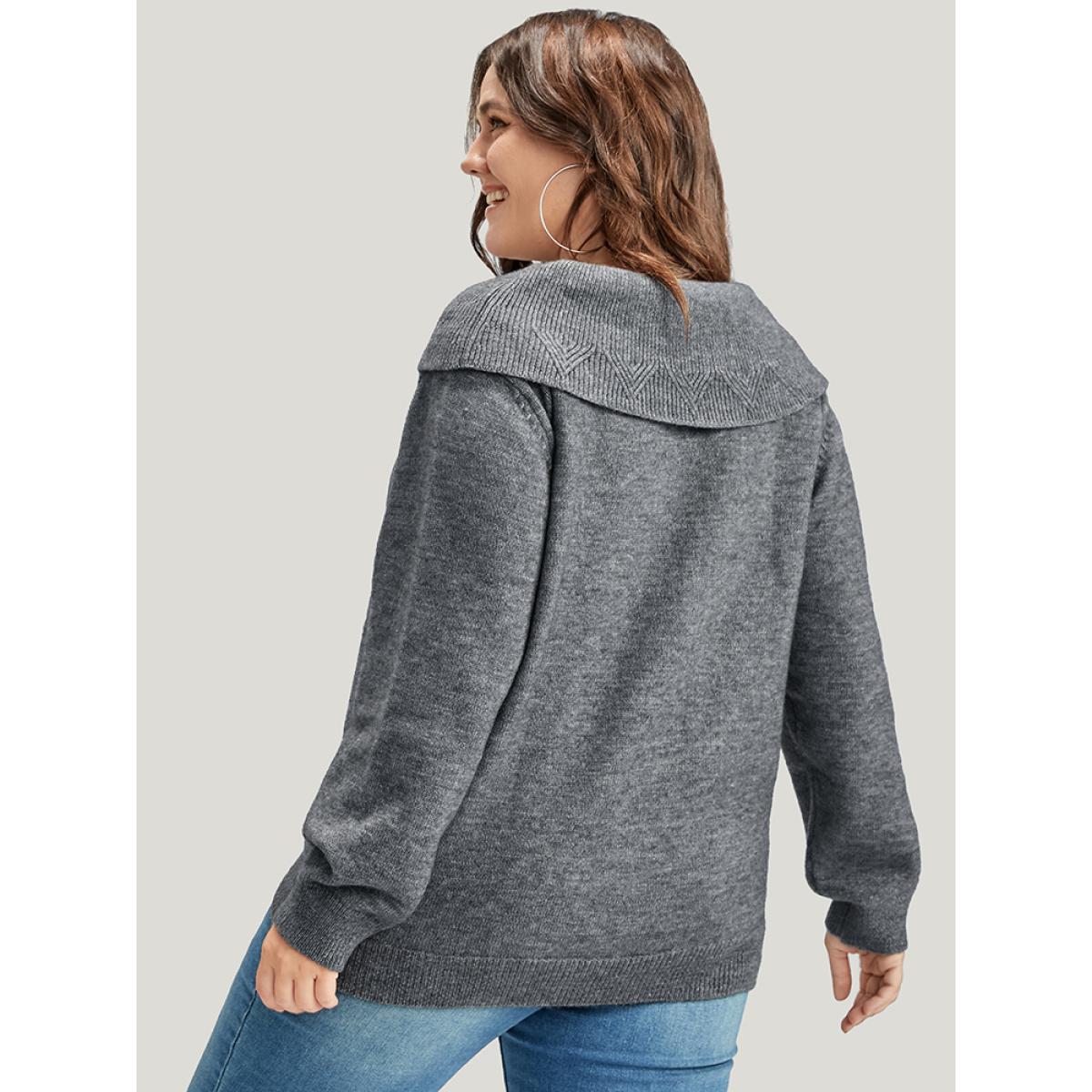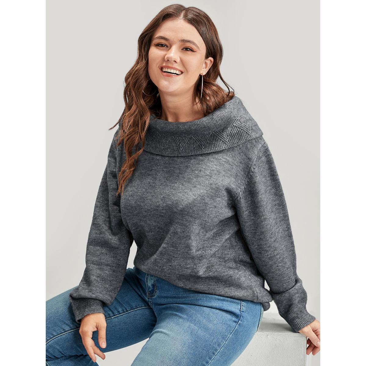 Plus Size Solid Pointelle Knit Foldover Off Shoulder Knit Top Gray Women Elegant Long Sleeve One-shoulder neck Dailywear Pullovers BloomChic 28/5X