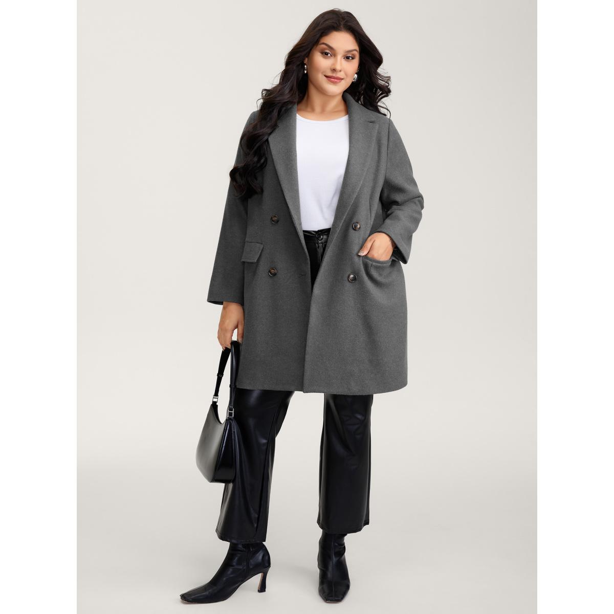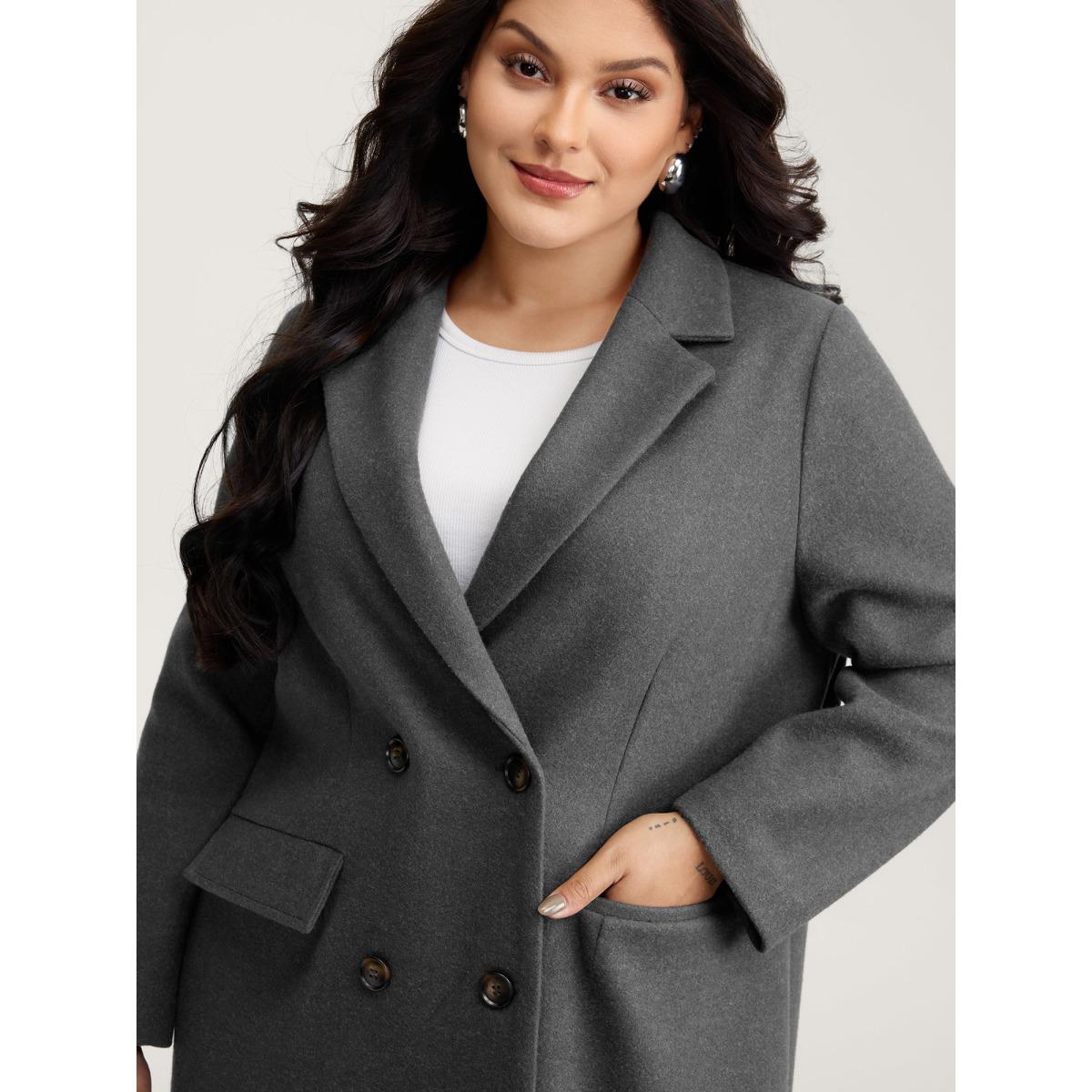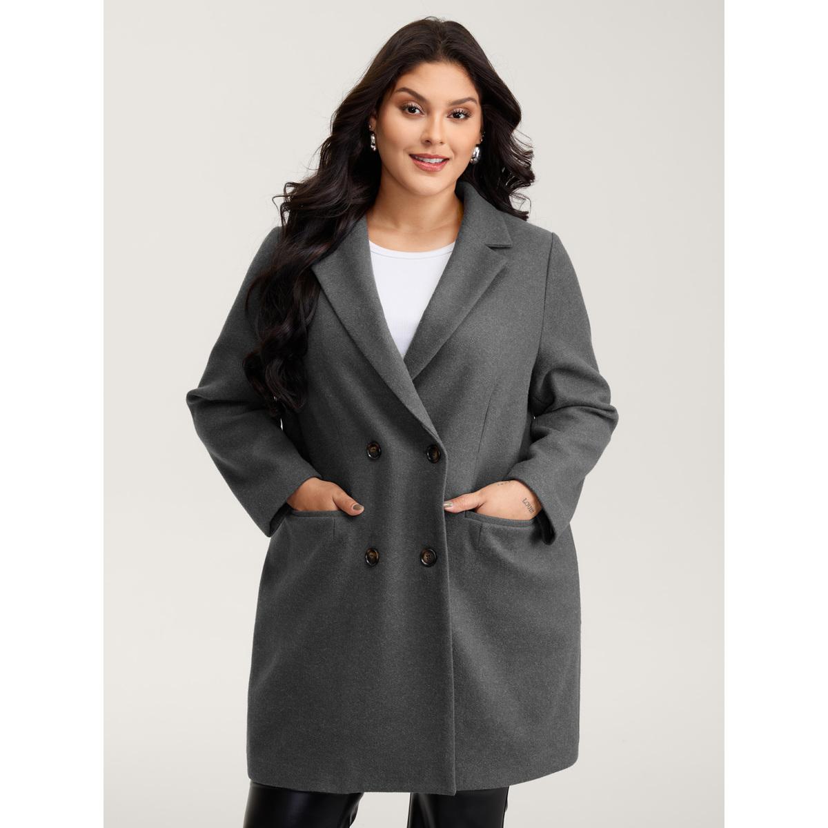 Plus Size Solid Suit Collar Buttons Pockets Coat Women DimGray Timeless Button Ladies Elegant Winter Coats BloomChic 14-16/1X Product Image