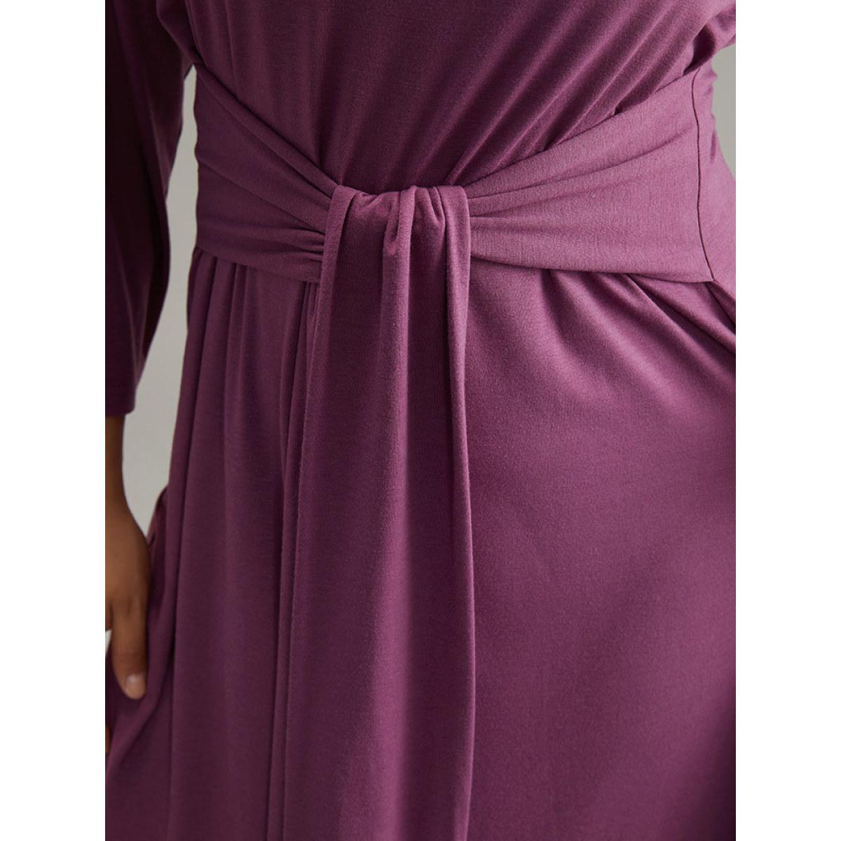 Plus Size Solid Ties Knot Round Neck Dress Mauve Women Basics Plain Round Neck Long Sleeve Curvy Midi Dress BloomChic 28/5X Product Image