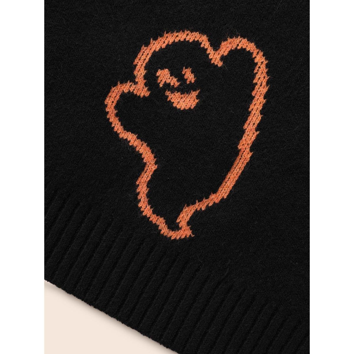 Plus Size Spooky Ghost Pattern V-Neck Pullover Black Women Casual Loose Long Sleeve V-neck Everyday Pullovers BloomChic 10/M Product Image