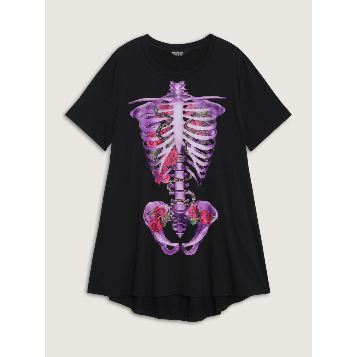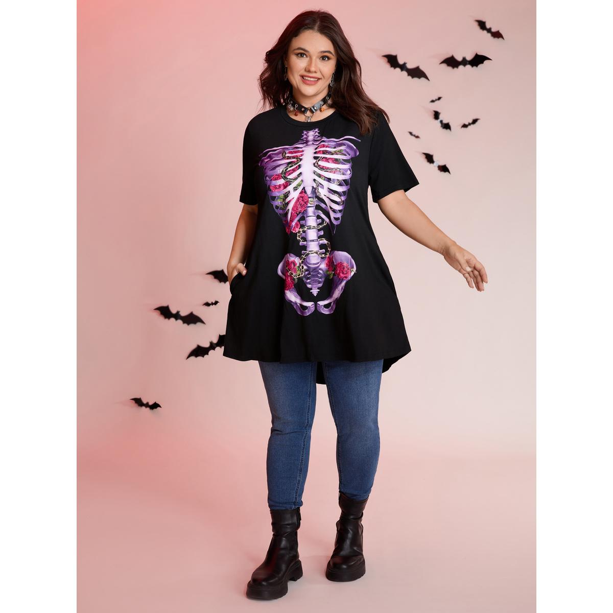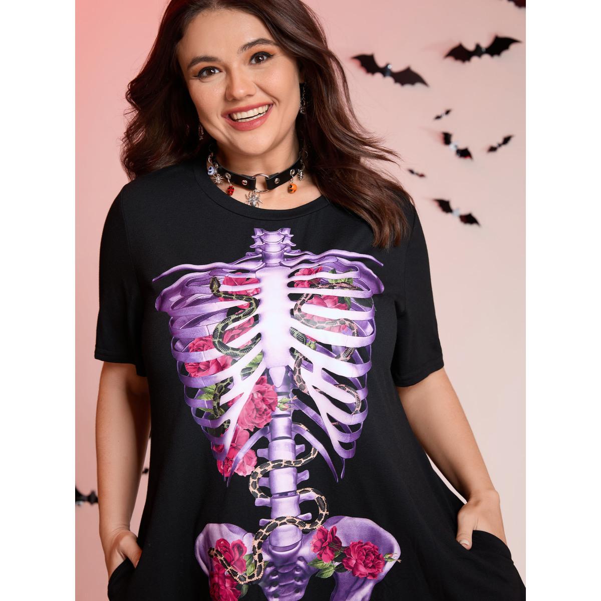 Plus Size Spooky Skull Supersoft Tunic Mini Dress Black Women Playful Non Knit Dresses Bloomchic 22-24/3X