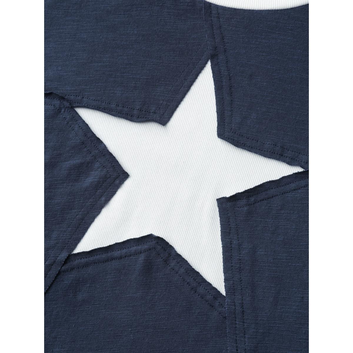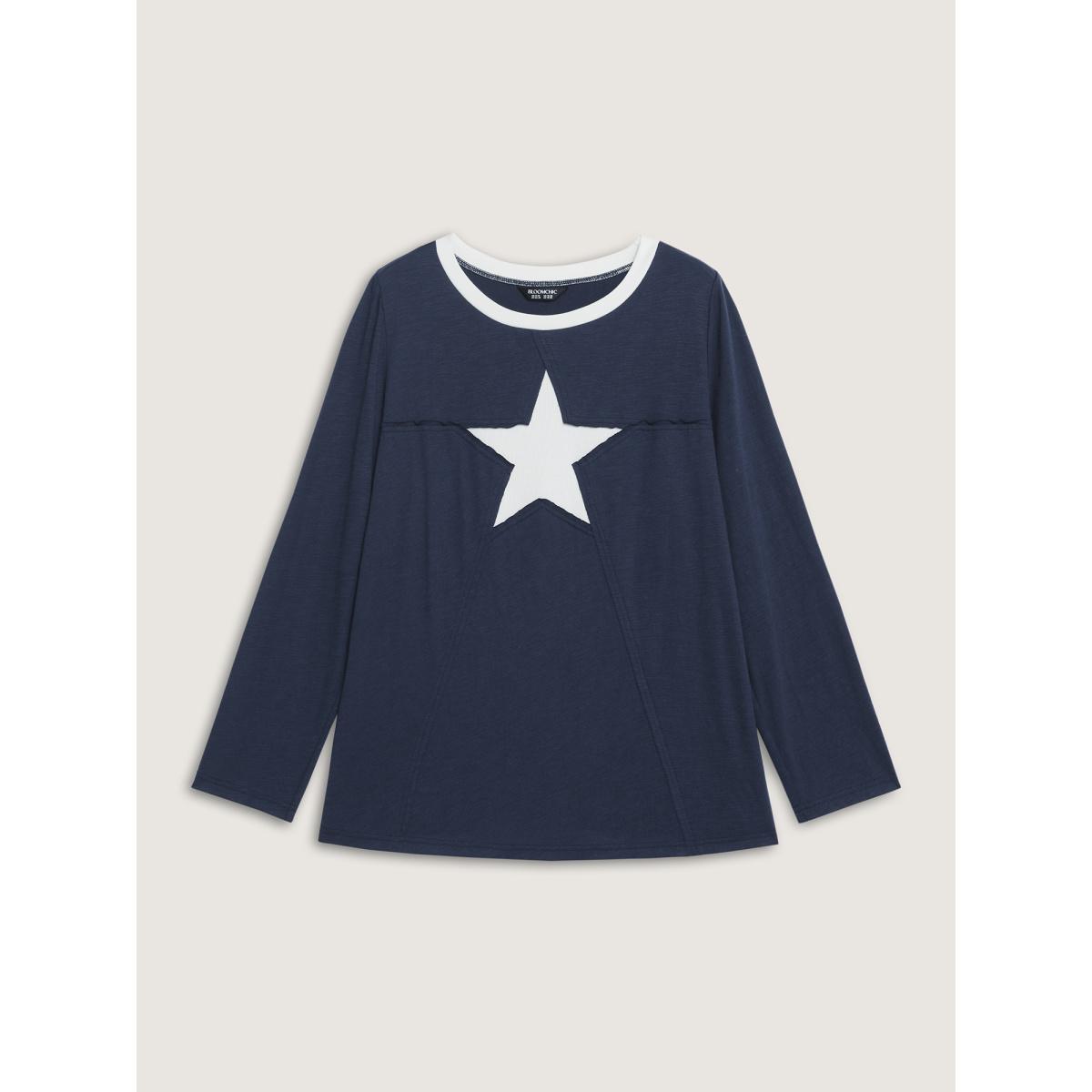 Plus Size Striped & Star Contrast Crew Neck T-shirt Blue Women Casual Contrast Moon and Star Round Neck Dailywear T-shirts BloomChic 12/L