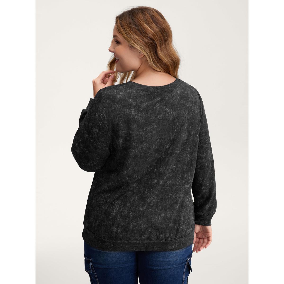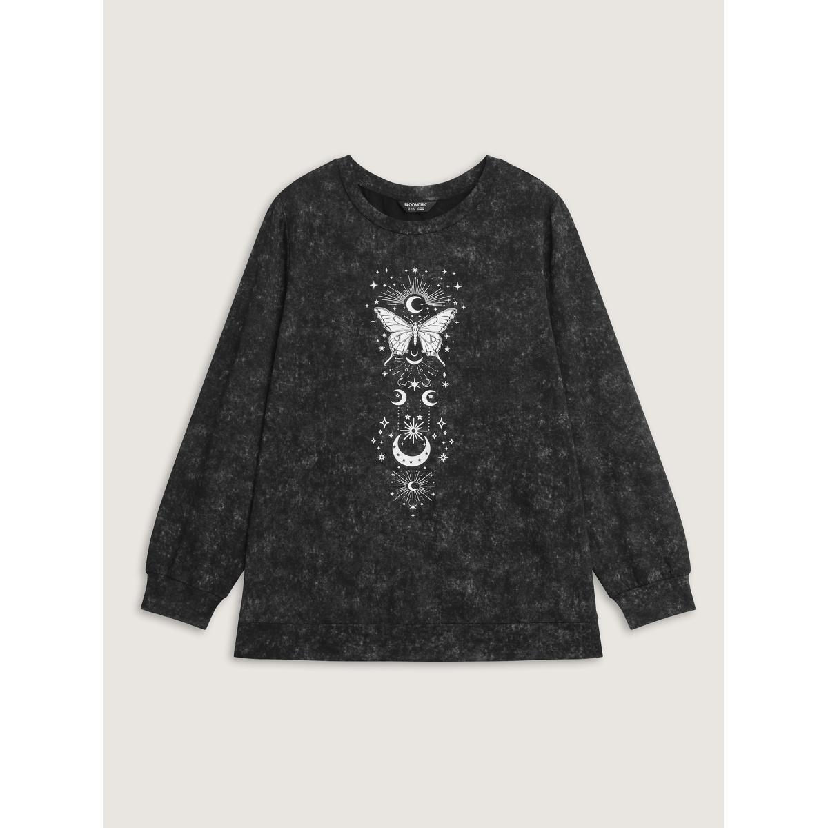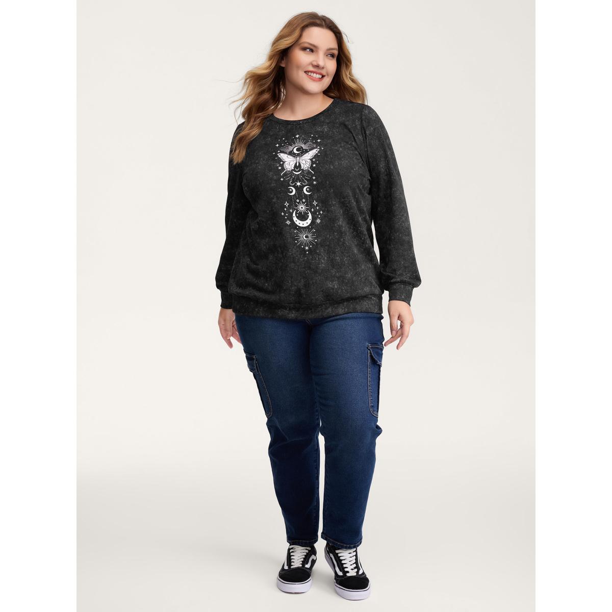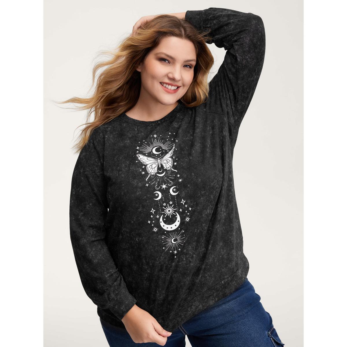 Plus Size Starry Moon Stretchy Snowflake Textured Effect Sweatshirt Women Black Leisure Non Round Neck Casual Sweatshirts BloomChic 22-24/3X