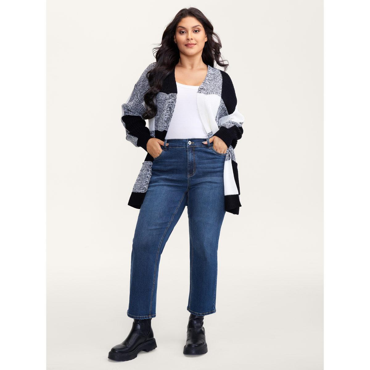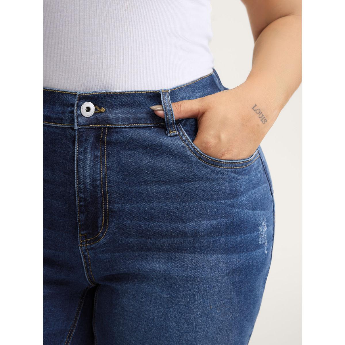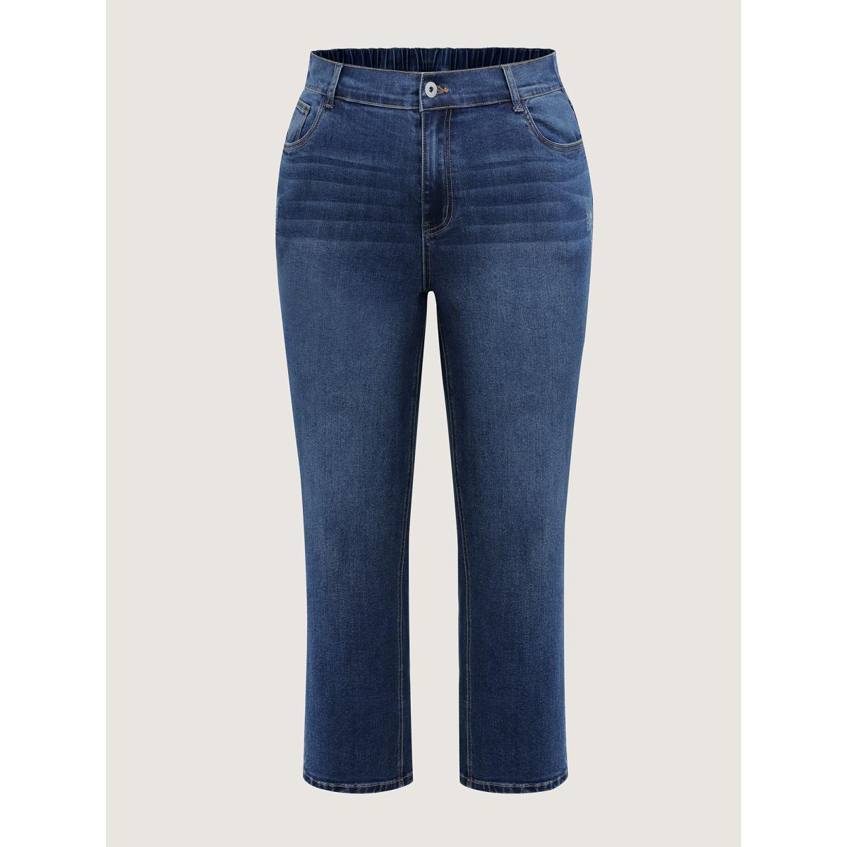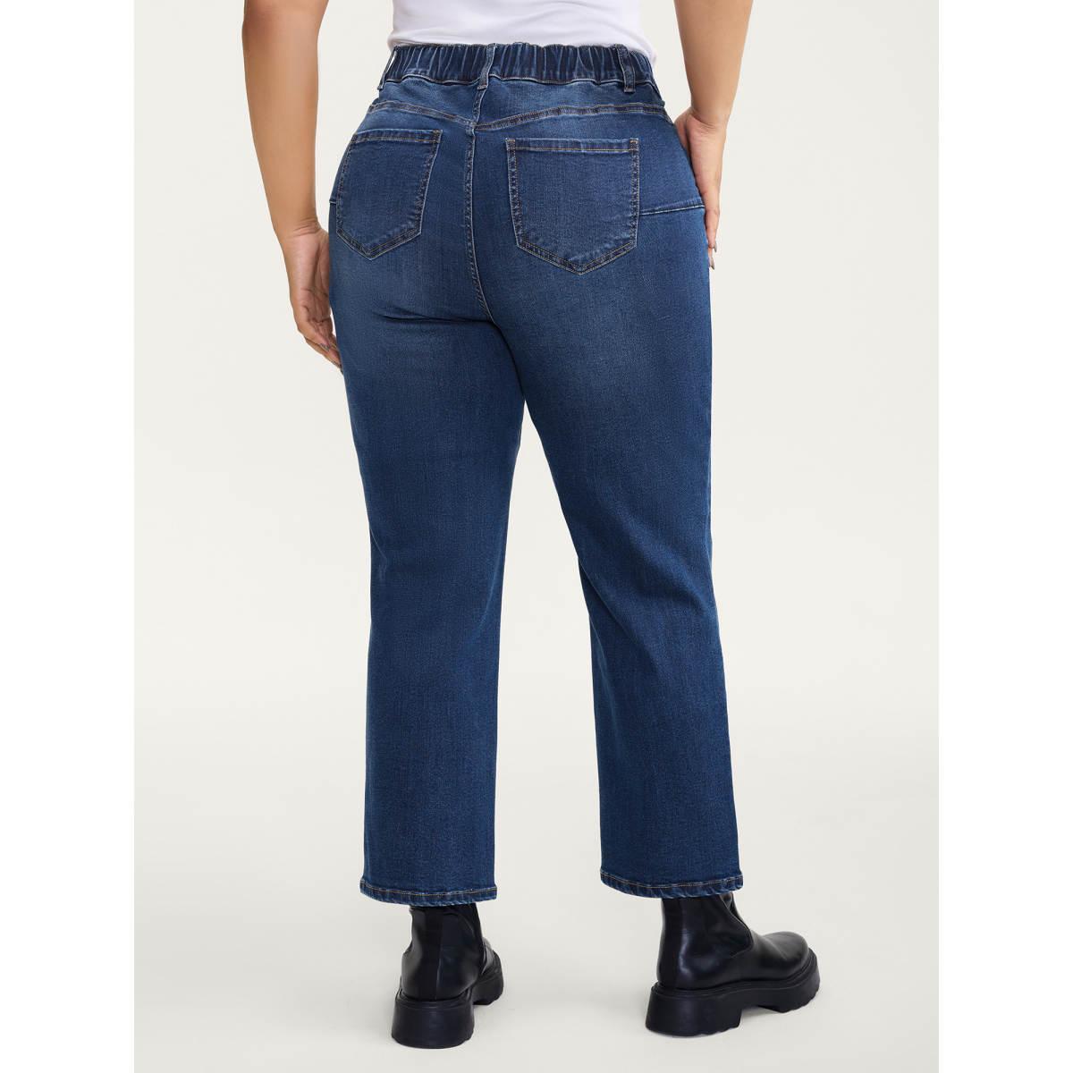 Plus Size Stretchy Butt-Lifting Rubber Waist Straight-Leg Jeans Women Midblue Leisure High stretch Slanted pocket Jeans BloomChic 30/6X