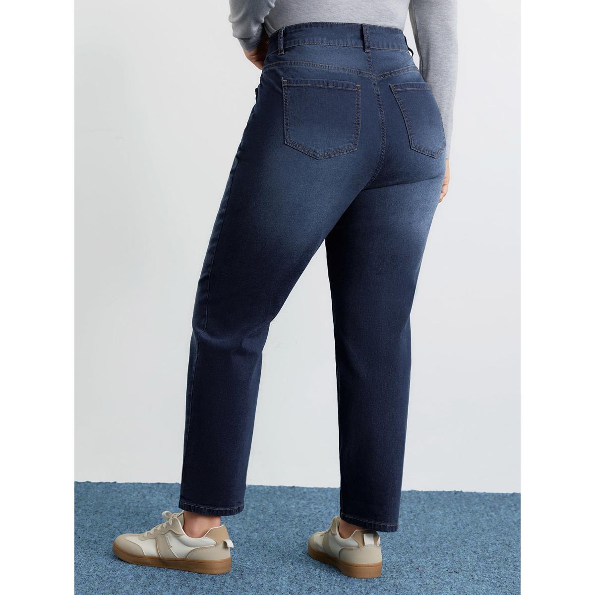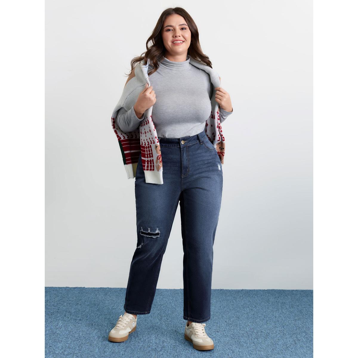 Plus Size Stretchy Crown Ripped Straight-Leg Jeans Women Denimindigo Leisure Cut-Out High stretch Slanted pocket Jeans BloomChic 14/1X