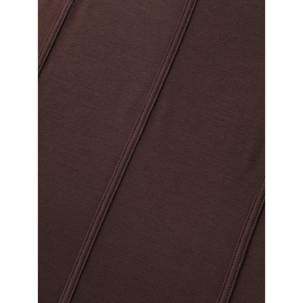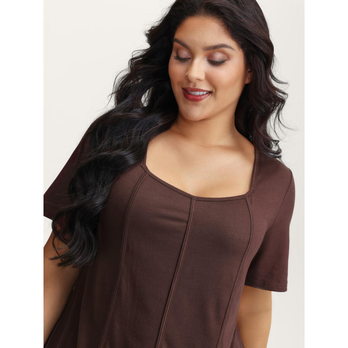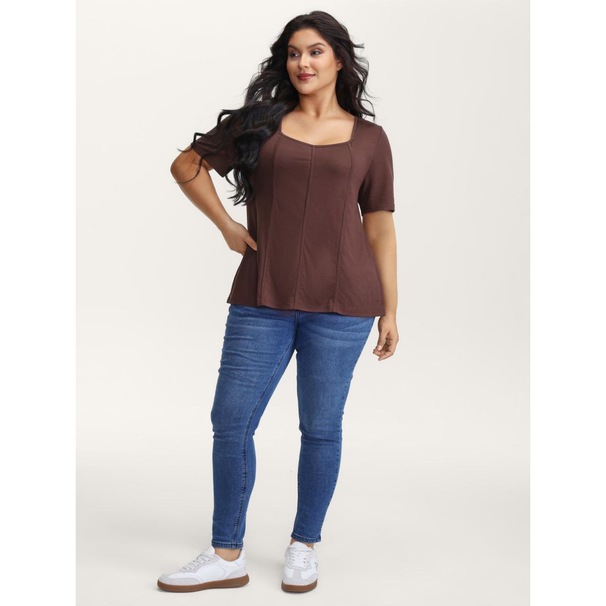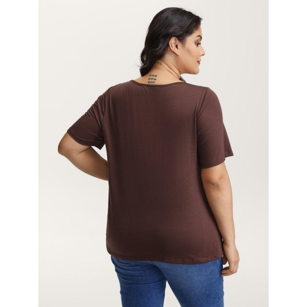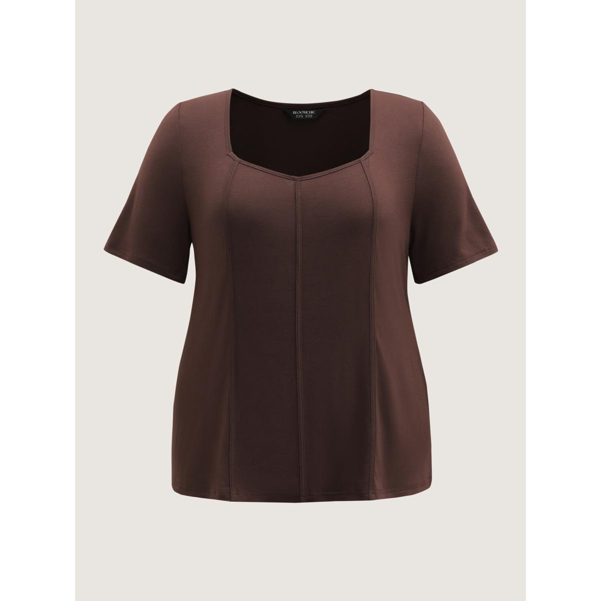 Plus Size Stretchy Defining Waist Deep Neckline T-Shirt DarkBrown Women Leisure Contrast Heart neckline Casual T-shirts BloomChic 30/6X