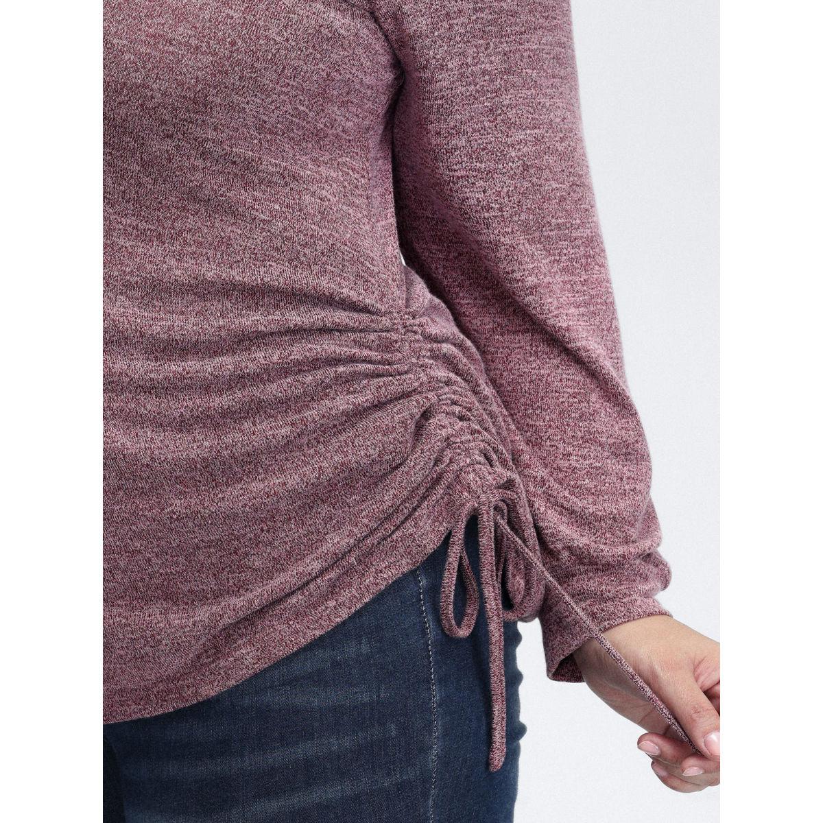 Plus Size Stretchy Heather Fabric Drawstring Sleeve T-Shirt Mauve Women Elegant Drawstring Round Neck Everyday T-shirts BloomChic 12/L