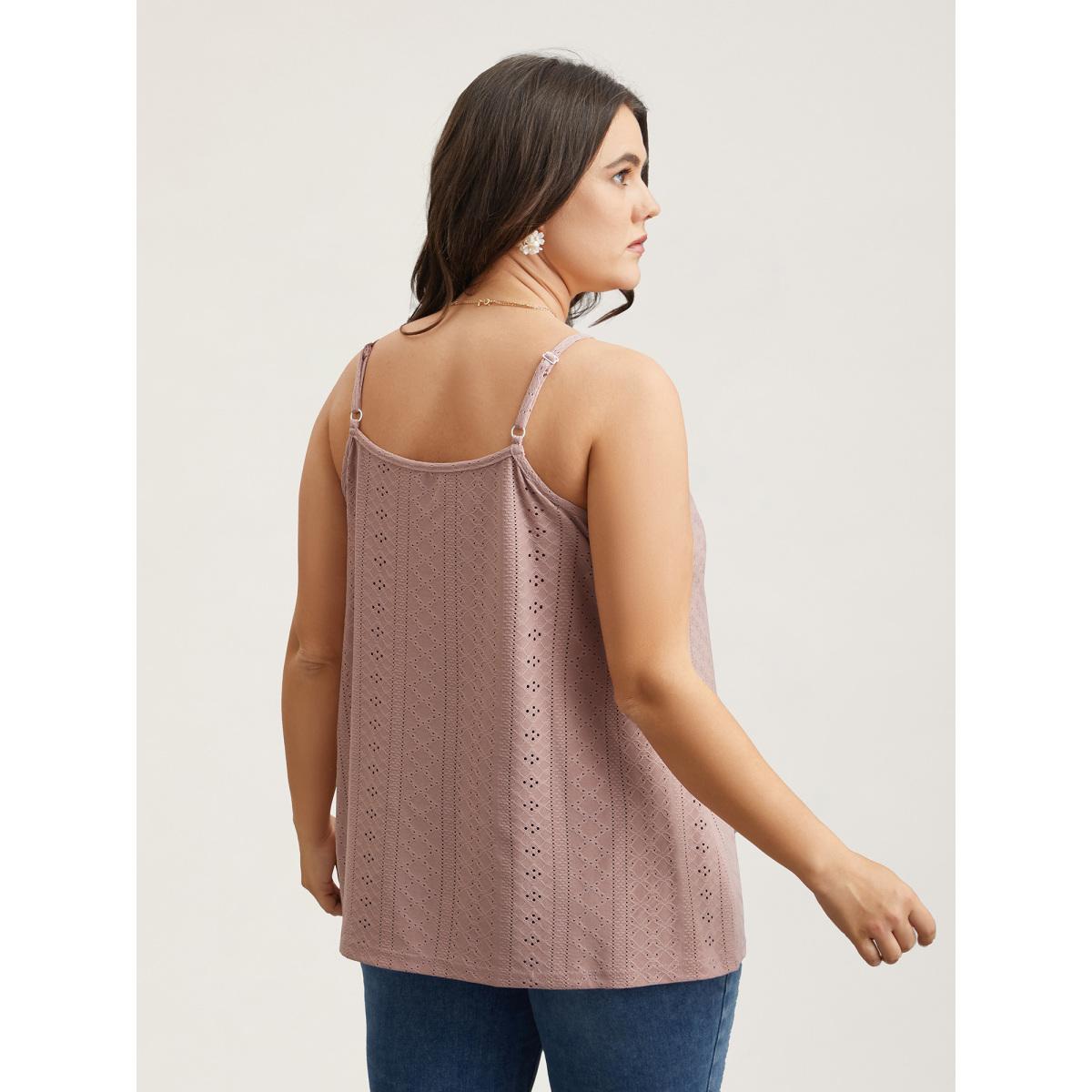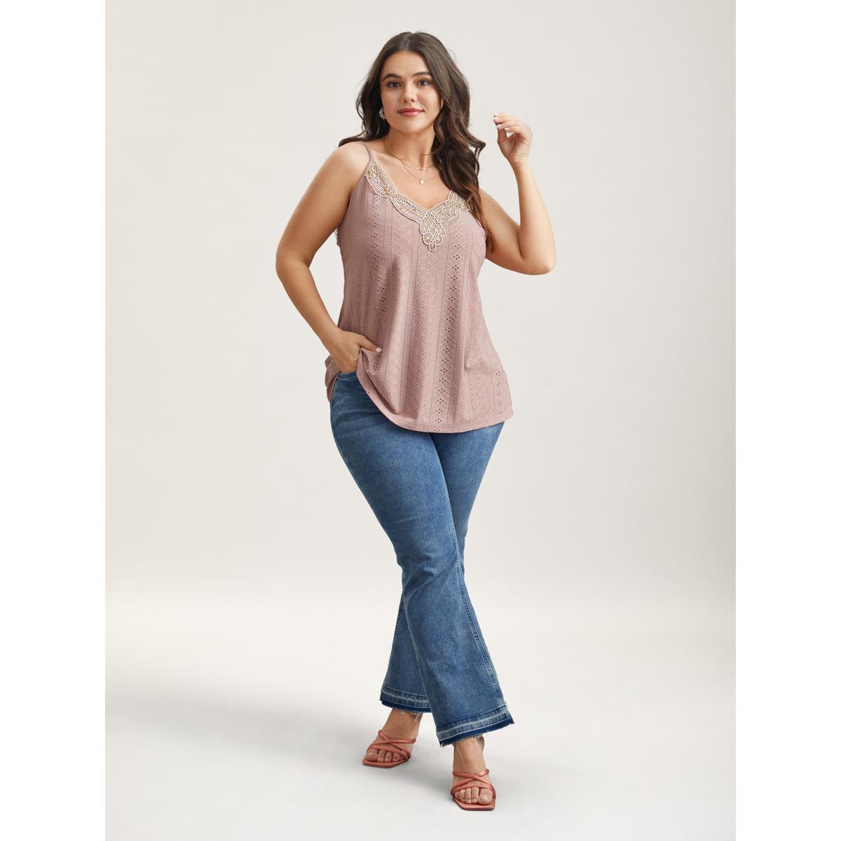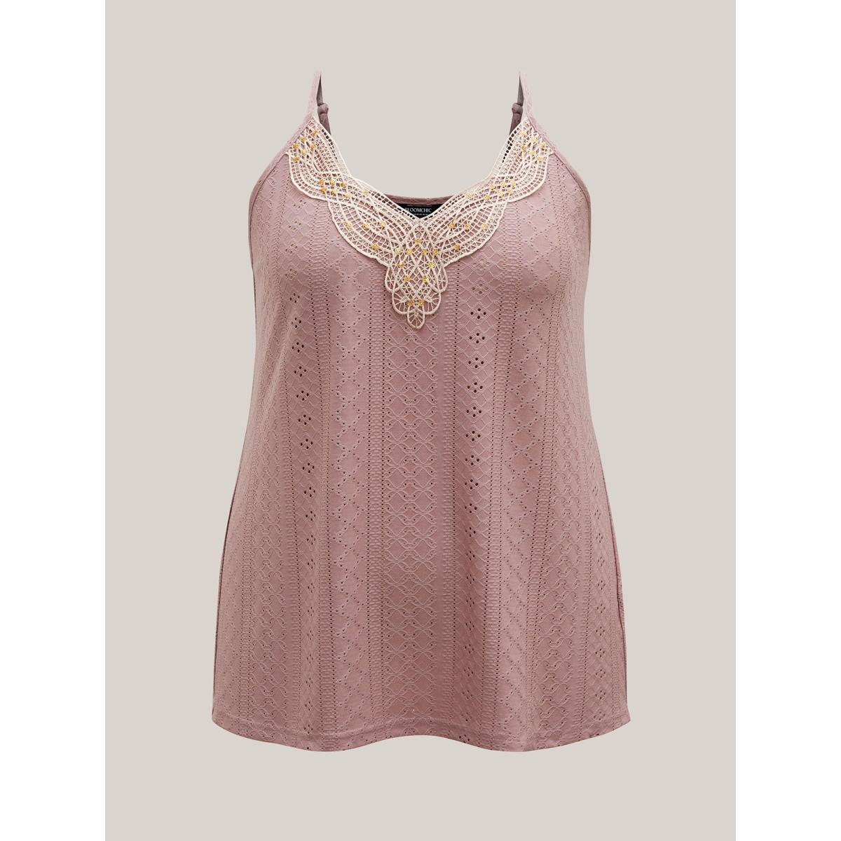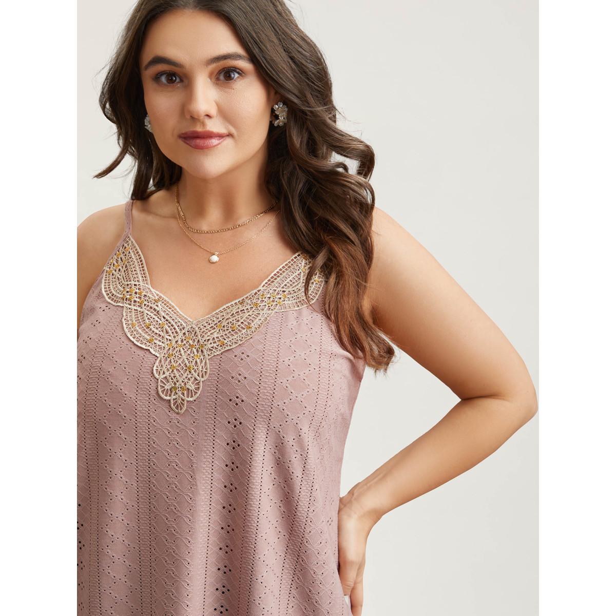 Plus Size Stretchy Fabric Lace Neck Textured Vest Women Rouge Romantic Woven ribbon&lace trim V-neck Elegant Tank Tops Camis BloomChic 14-16/1X
