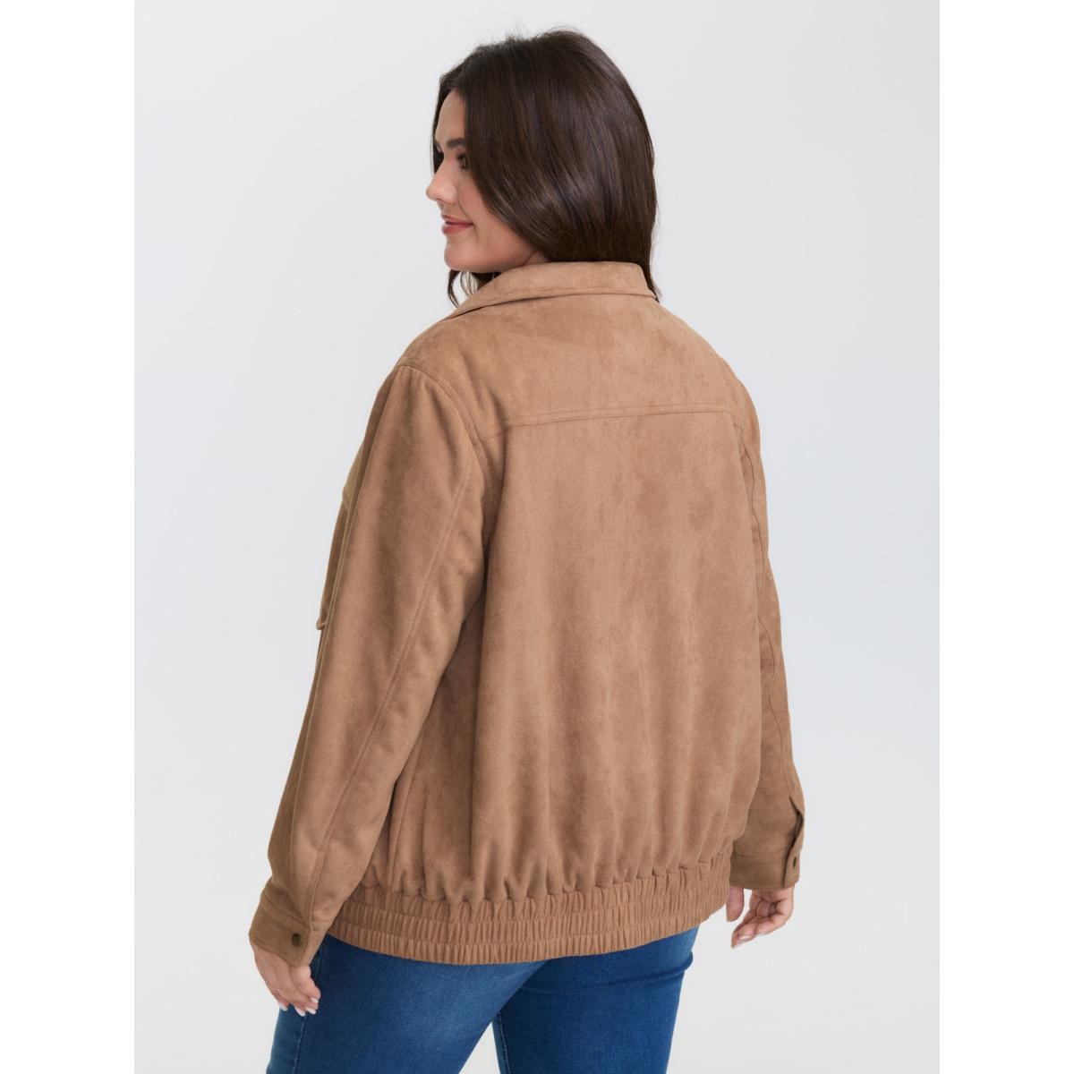 Plus Size Stretchy Hem Zipper Solid Jacket Women Yellowishbrown Leisure Ladies Casual Winter Coats BloomChic 28/5X Product Image