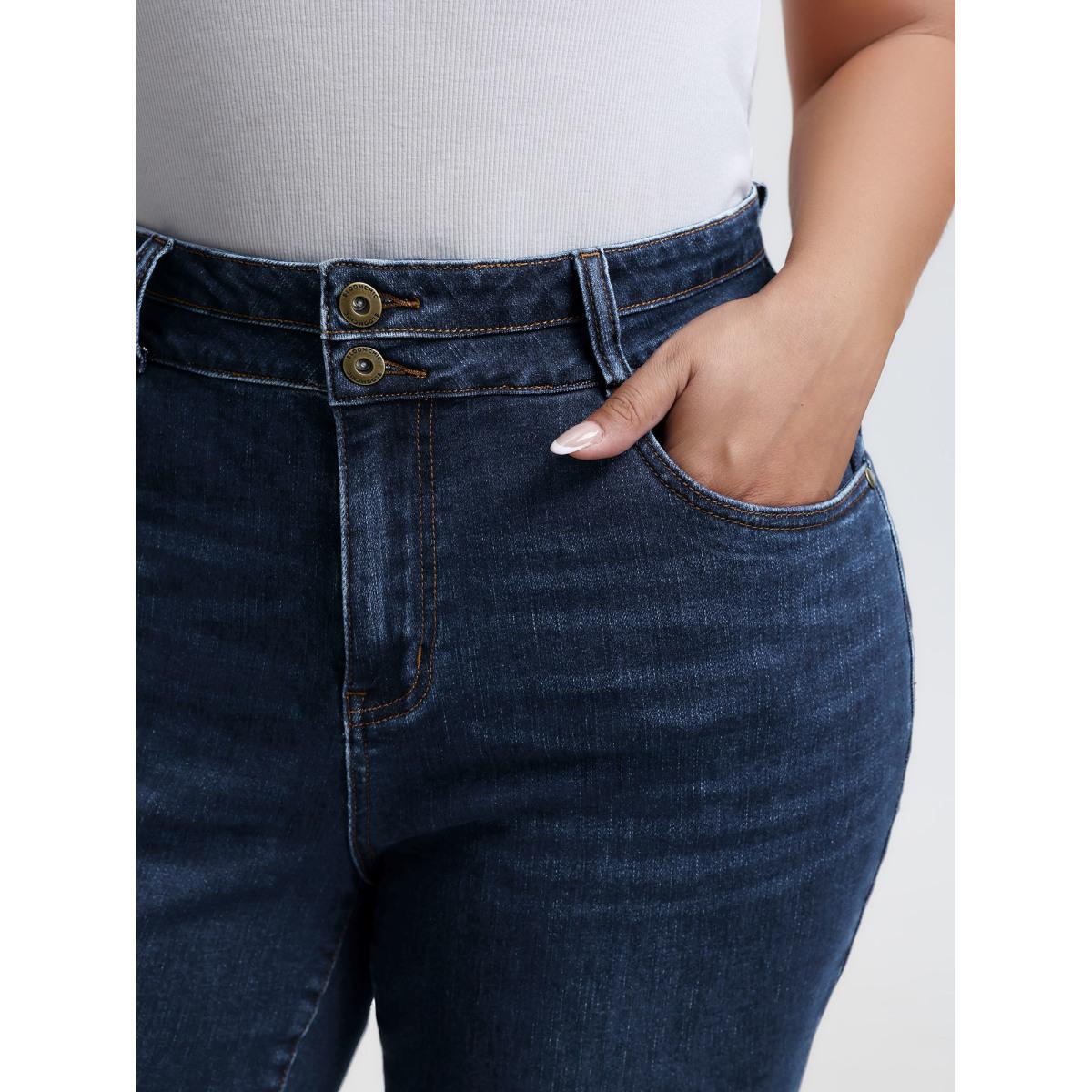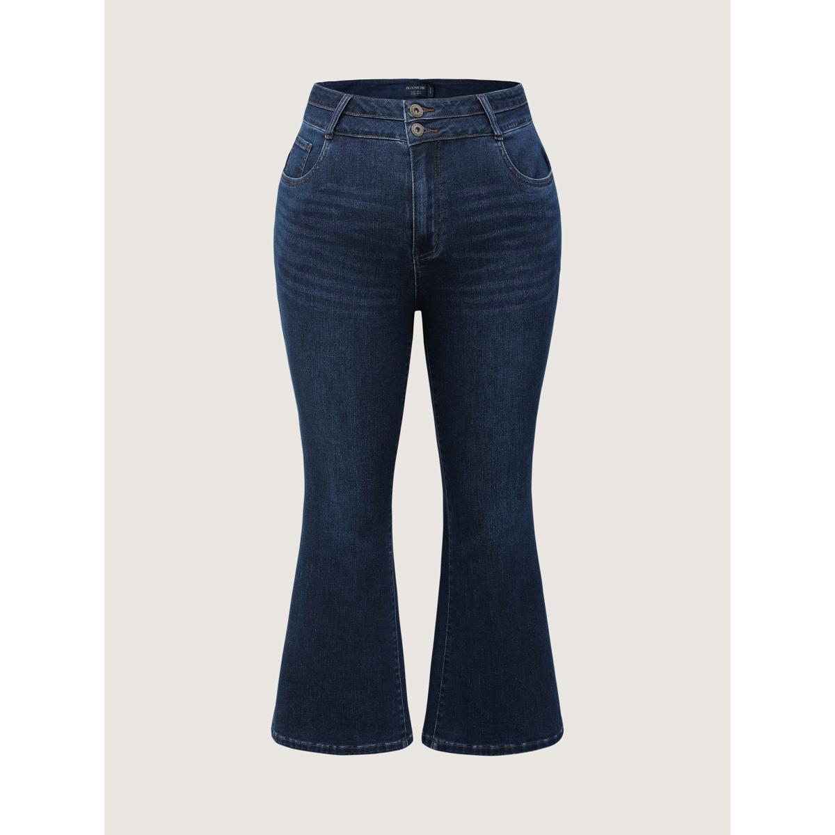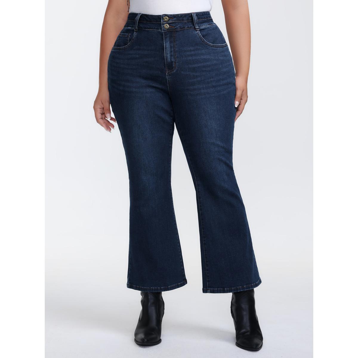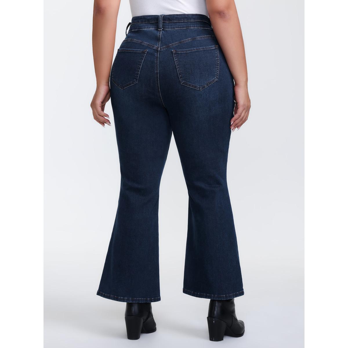 Plus Size Stretchy Mid-Rise Bootcut Jeans Women Denimindigo Timeless Patchwork High stretch Slanted pocket Jeans BloomChic 20/2X