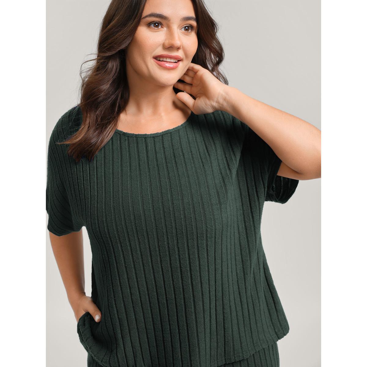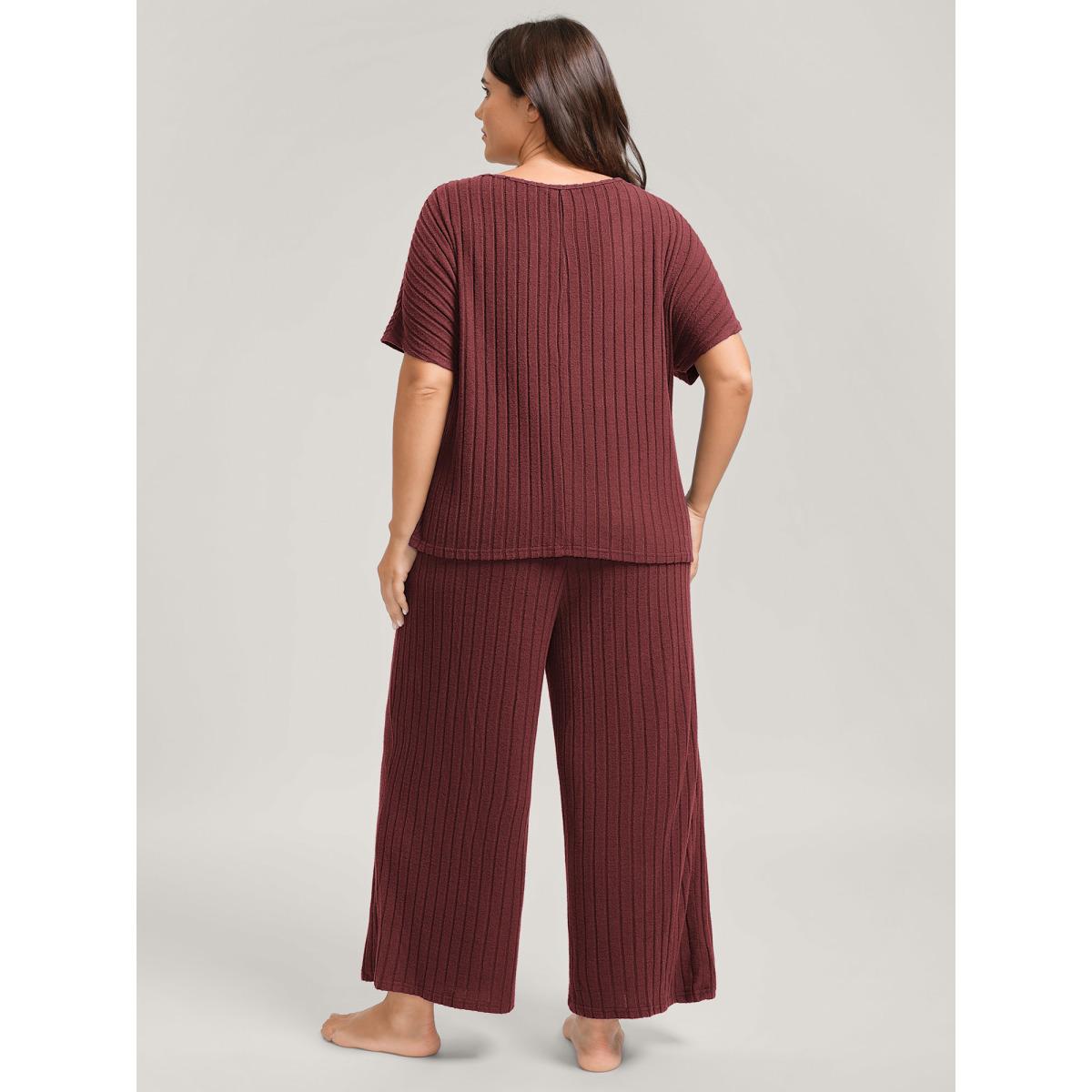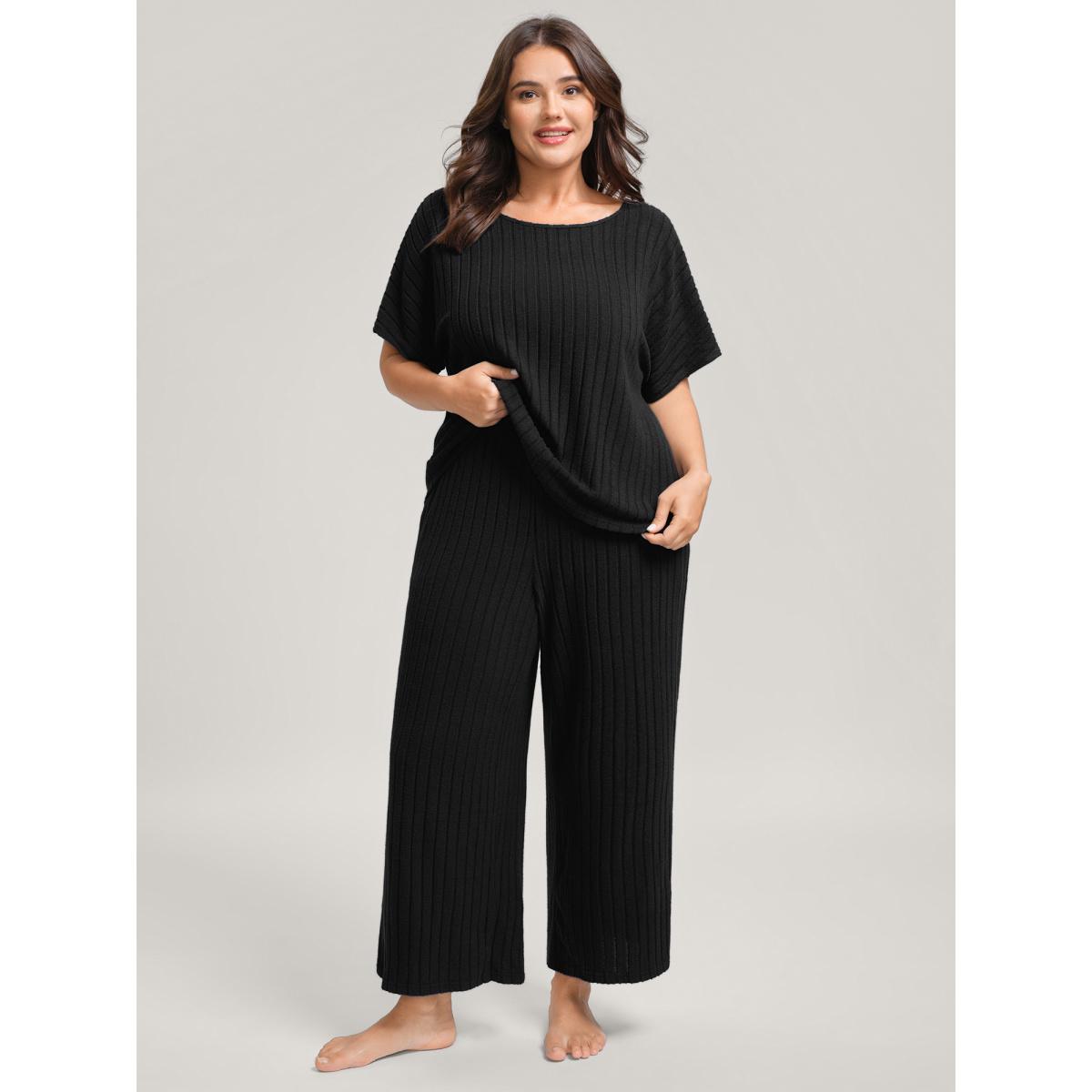 Plus Size Stretchy Pit Strip Solid Loungewear Set Women DarkSlateGray Texture Short sleeve Round Neck Leisure Loungewear Sets BloomChic 18-20/2X