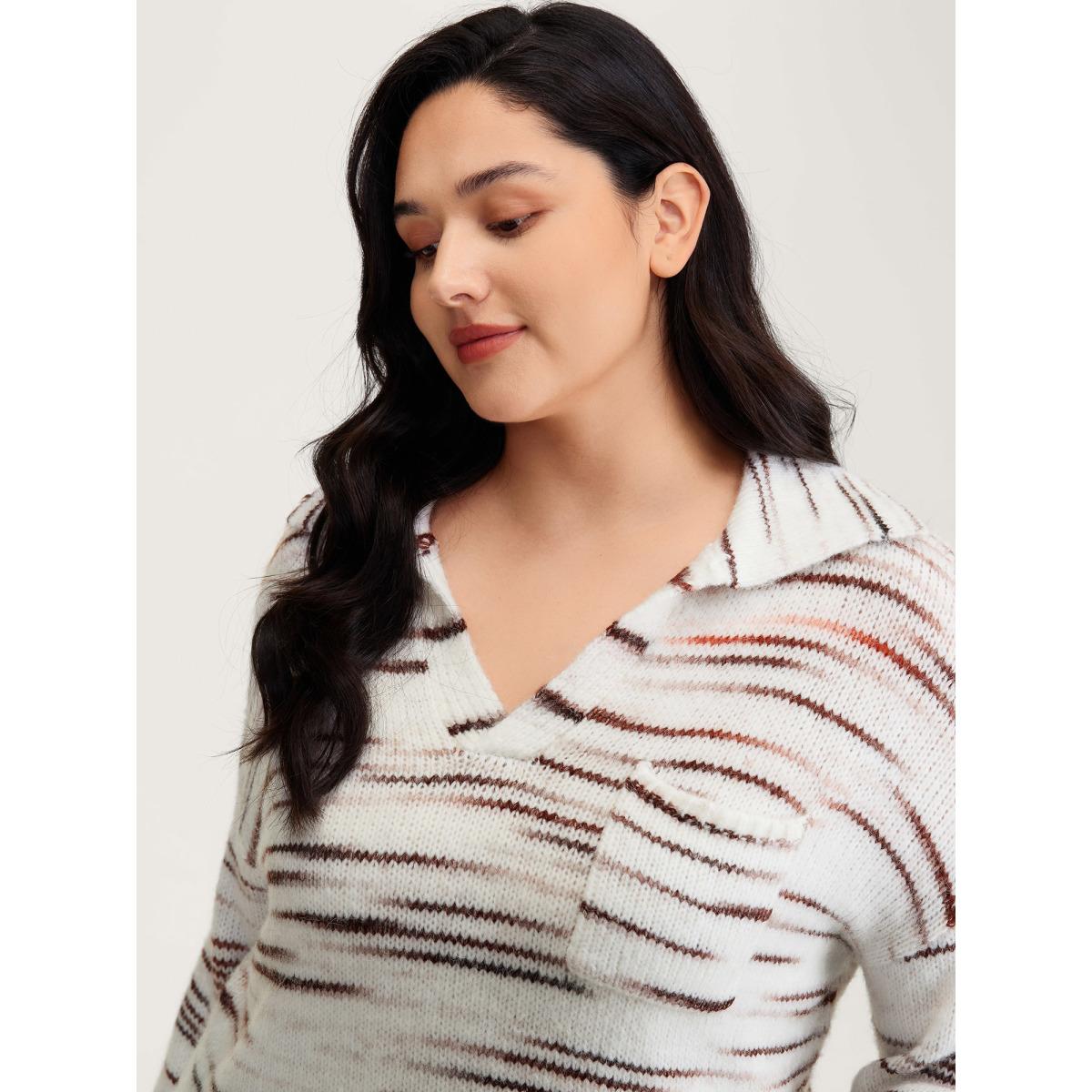Plus Size Stretchy Polo Collar Patch Pocket Pullover Champagne Women Leisure Loose Long Sleeve Polo Casual Pullovers BloomChic 26/4X