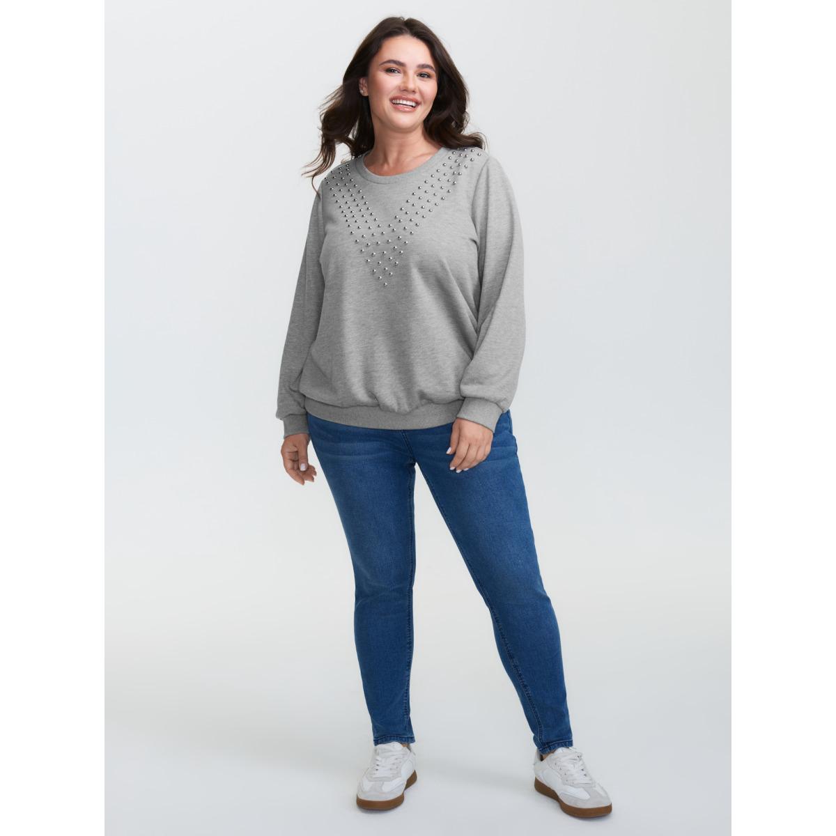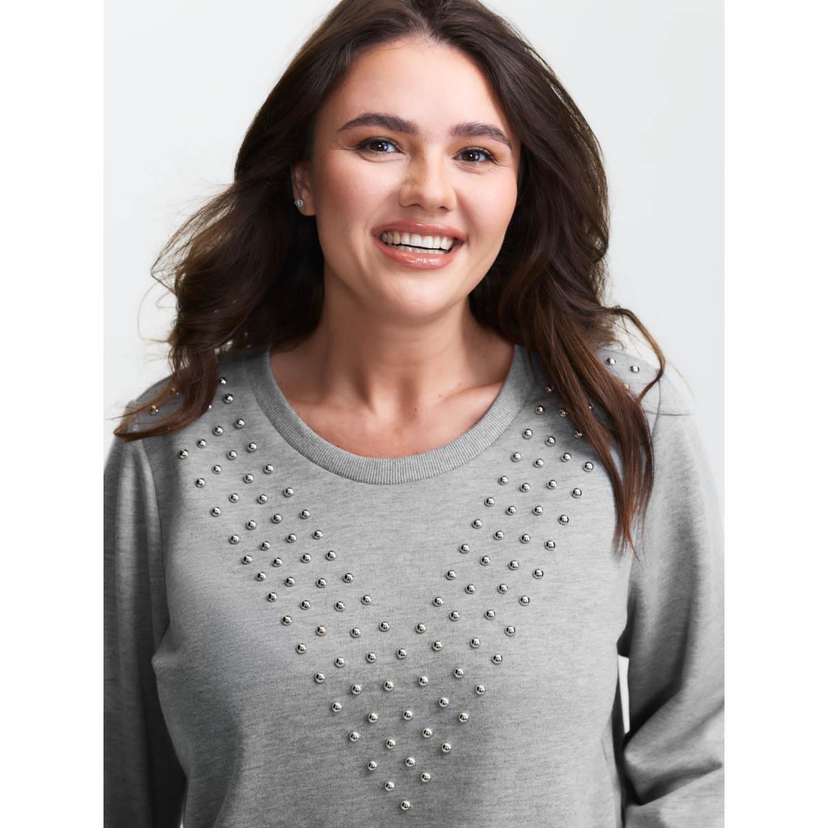 Plus Size Stretchy Rivet Detail Round Neck Sweatshirt Women LightGray Leisure Round Neck Casual Sweatshirts BloomChic 28/5X Product Image