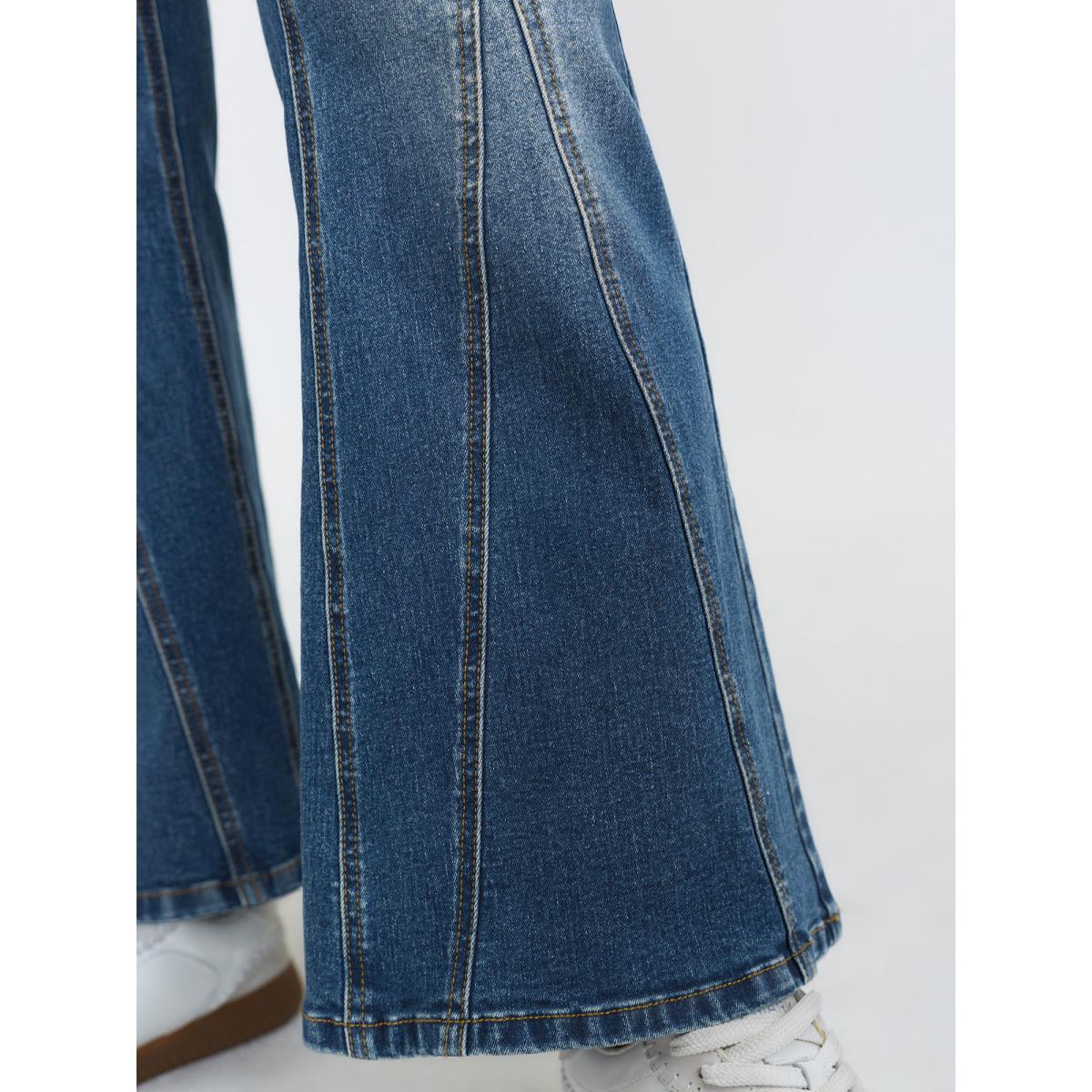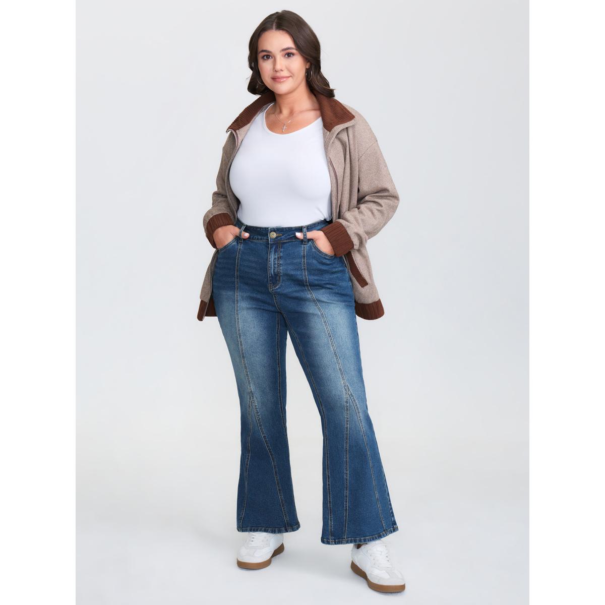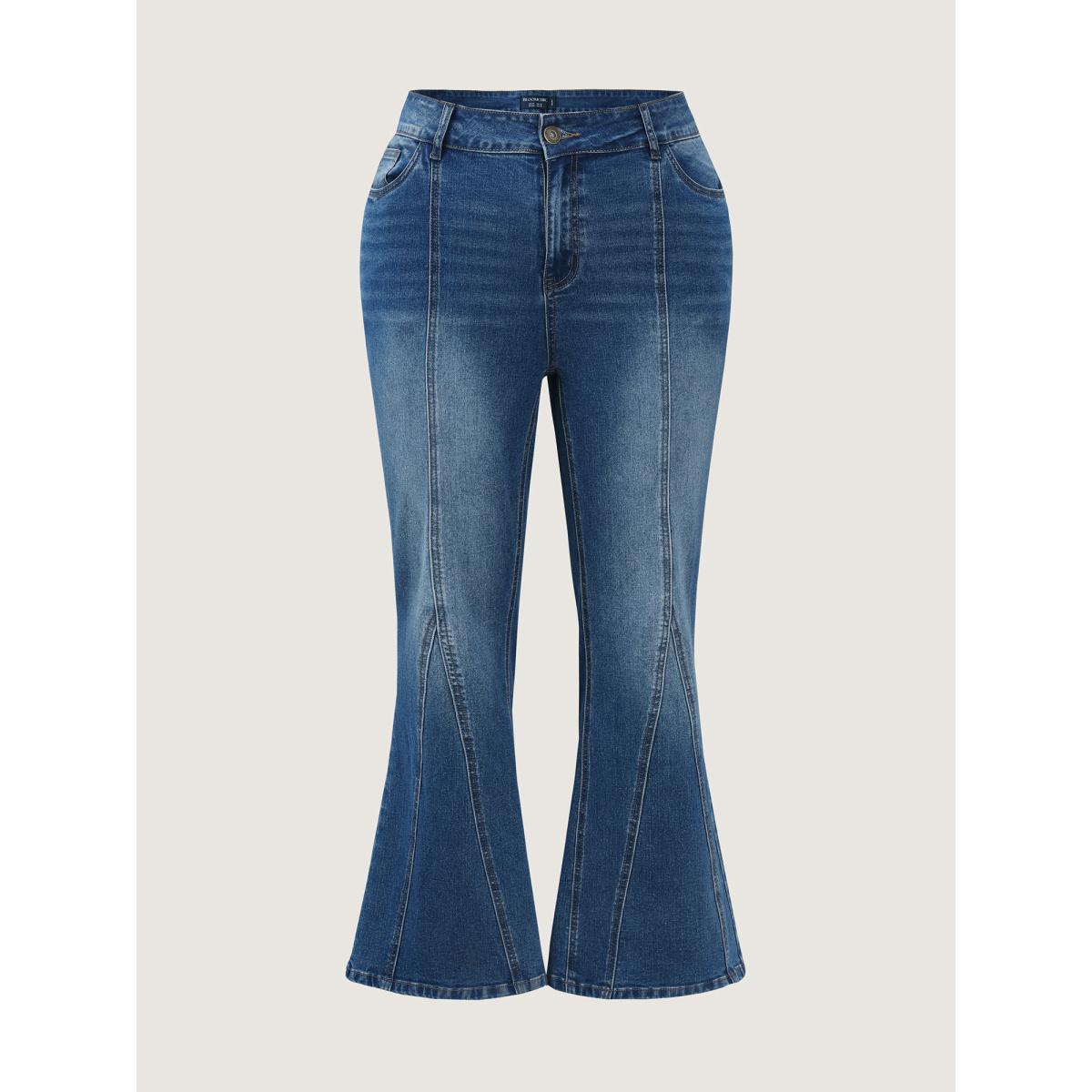 Plus Size Stretchy Seamed Mid-Rise Flared Jeans Women Midblue Timeless Topstitching High stretch Slanted pocket Jeans BloomChic 16/1X