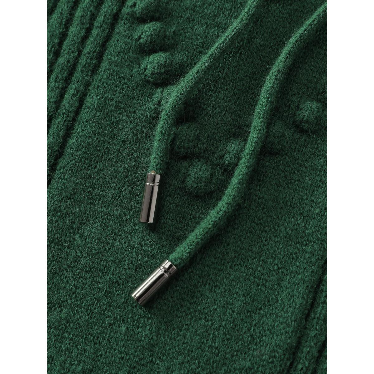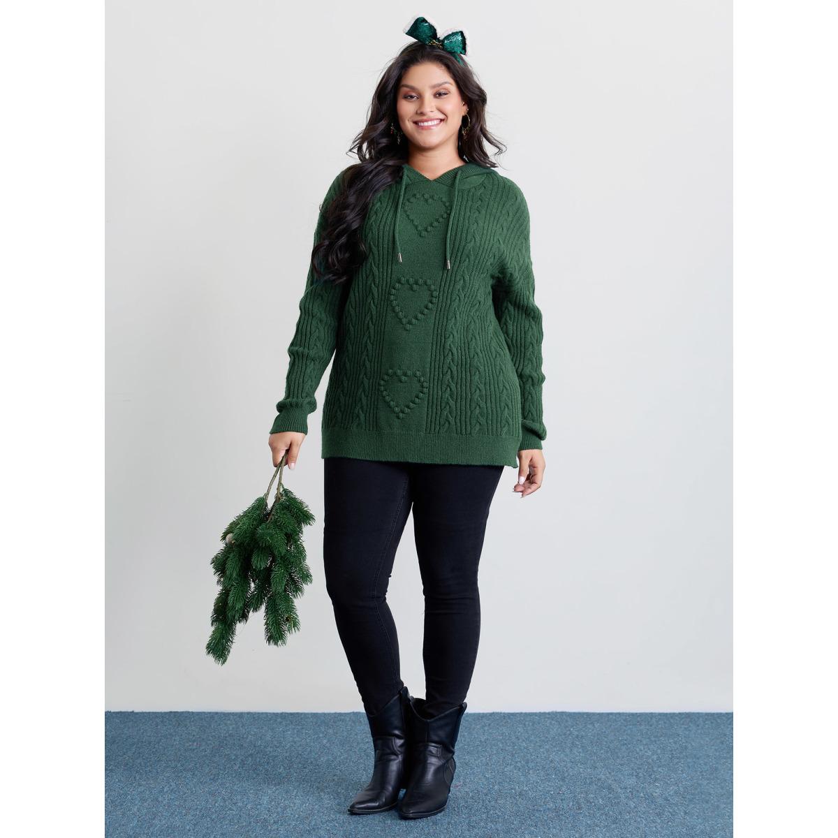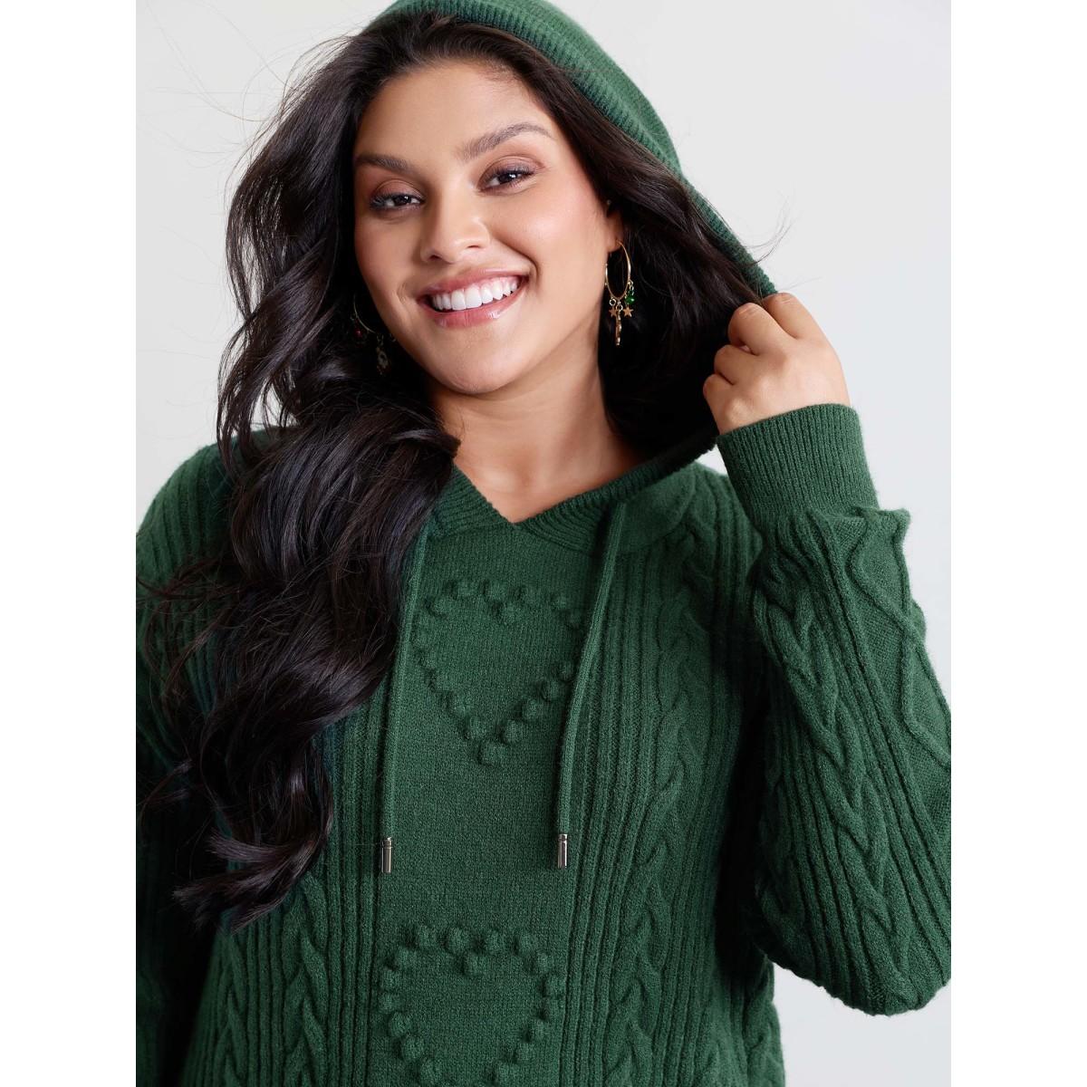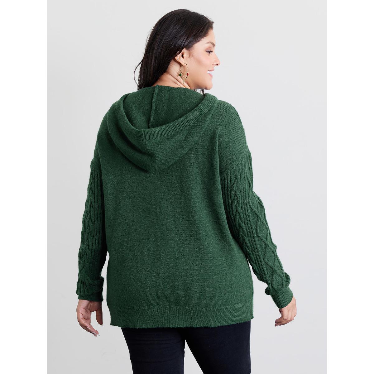 Plus Size Stretchy Textured Hooded Drawstring Pullover DarkGreen Women Leisure Loose Long Sleeve Hooded Casual Pullovers BloomChic 22-24/3X