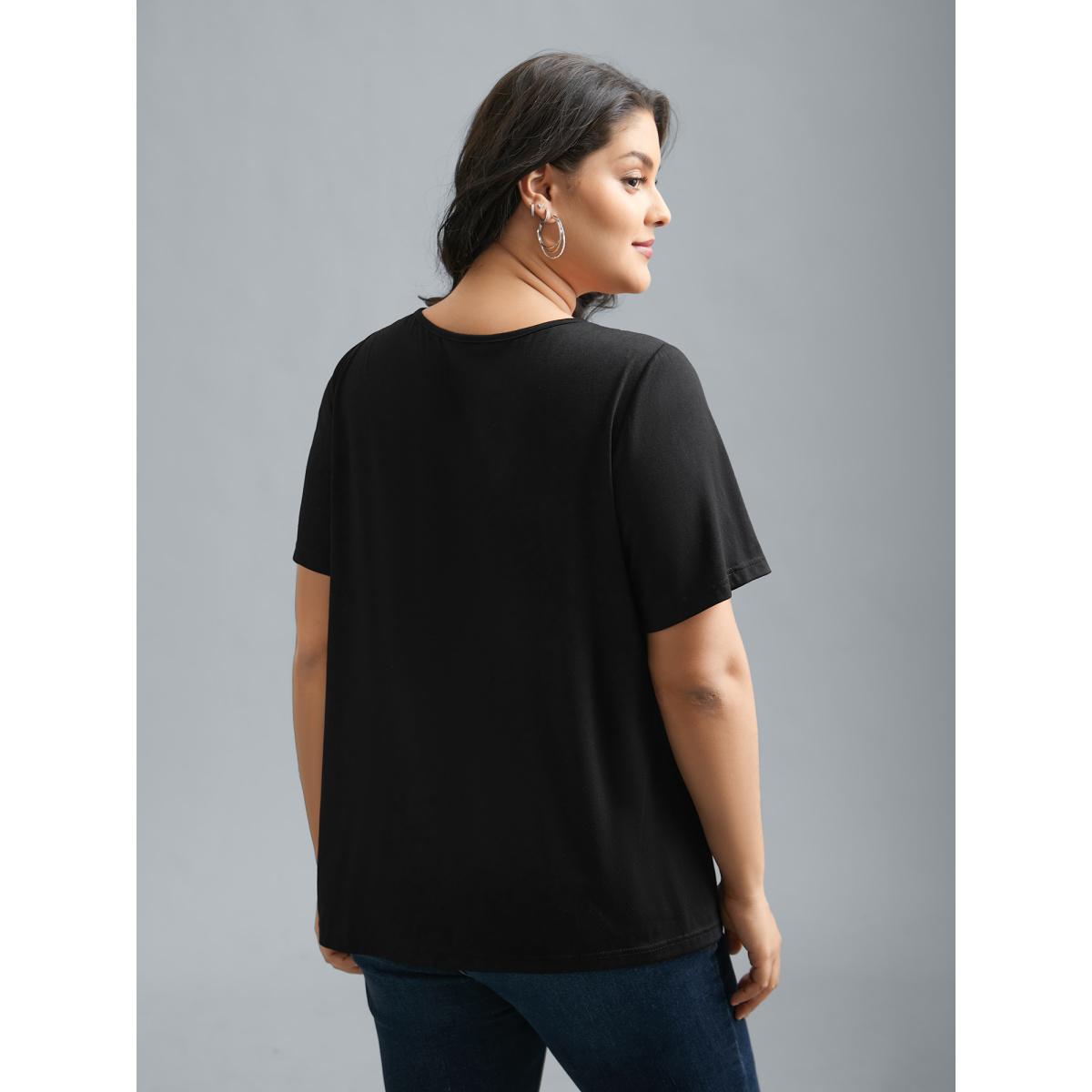 Plus Size Supersoft Fitted V-Neck T-Shirt Black Women Leisure Non Plain V-neck Casual T-shirts BloomChic 30/6X