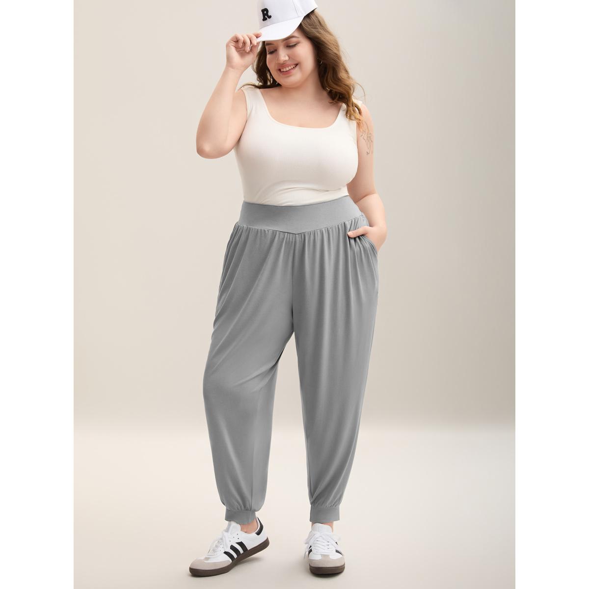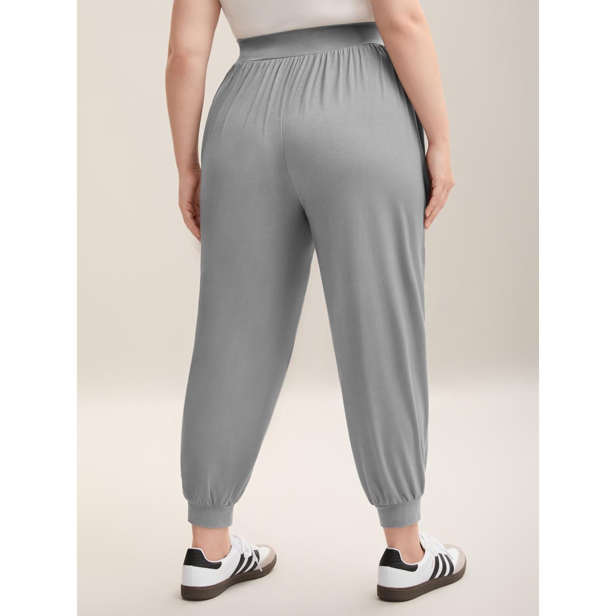 Plus Size Stretchy Waist Comfortable Fit Jogger Pants Women Silver Casual Loose Mid Rise Everyday Pants BloomChic 10/M
