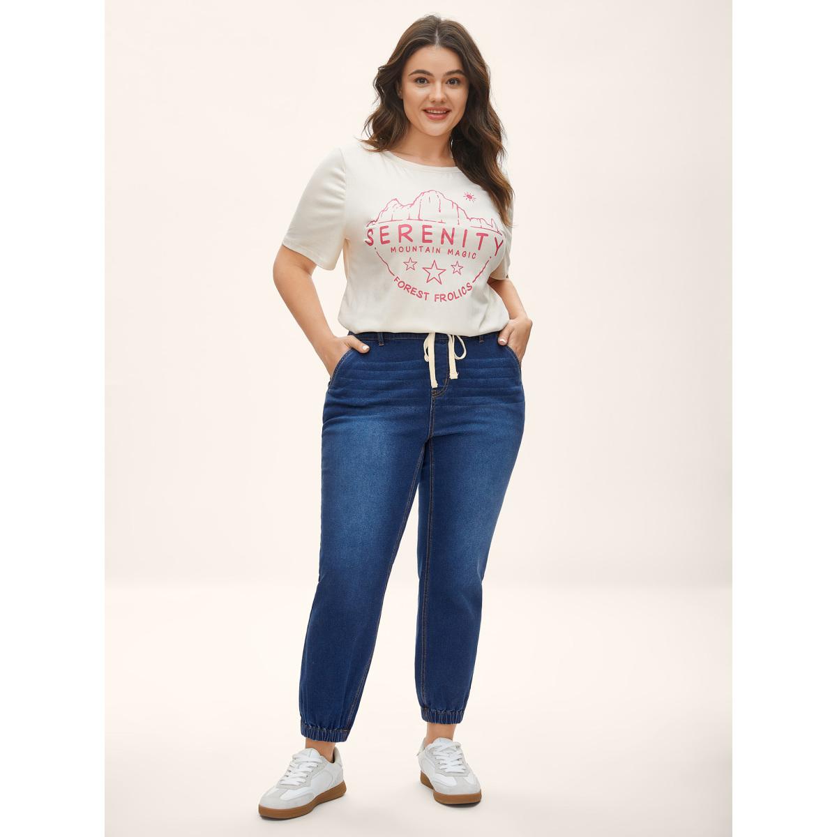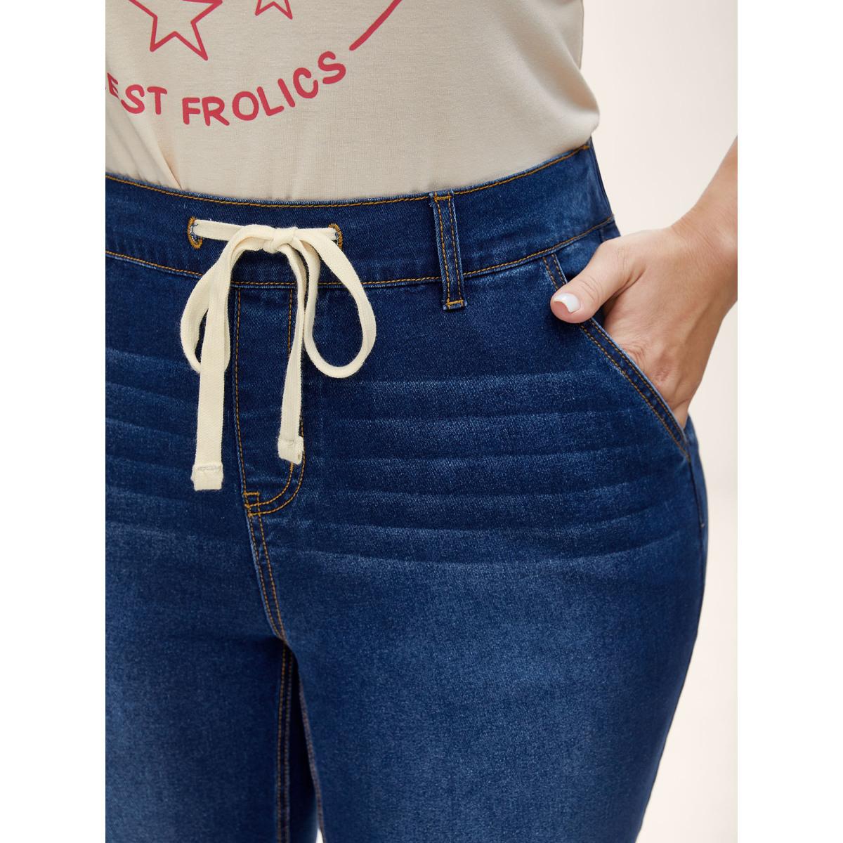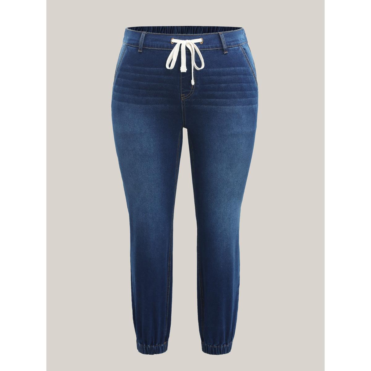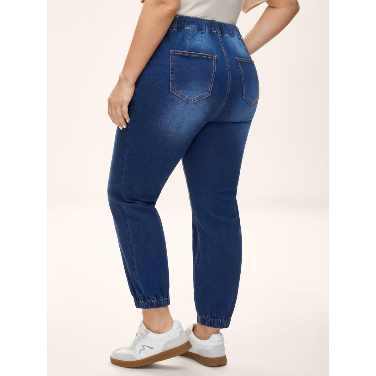 Plus Size Stretchy Waist Pull-On Jogger Jeans Women Darkindigo Low stretch Slanted pocket Jeans BloomChic 24/3X Product Image