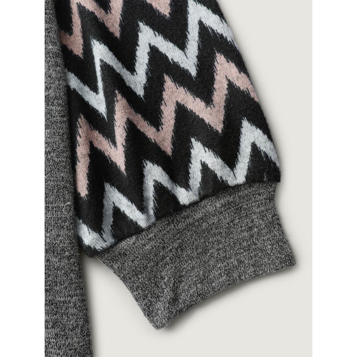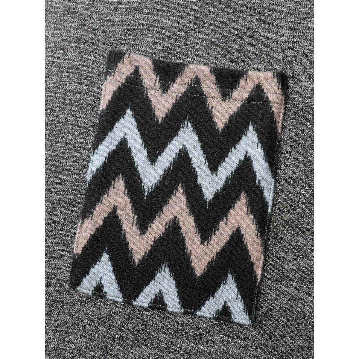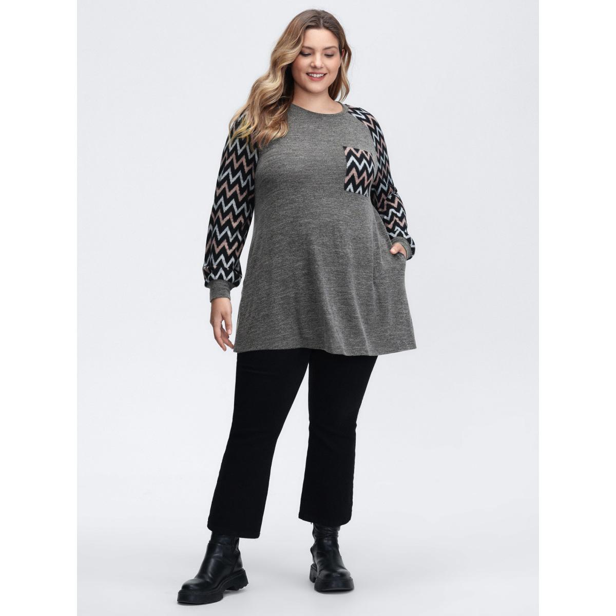 Plus Size Stretchy Wavy Pattern Contrast T-Shirt DimGray Women Leisure Contrast Round Neck Loose Casual T-shirts BloomChic 10/M