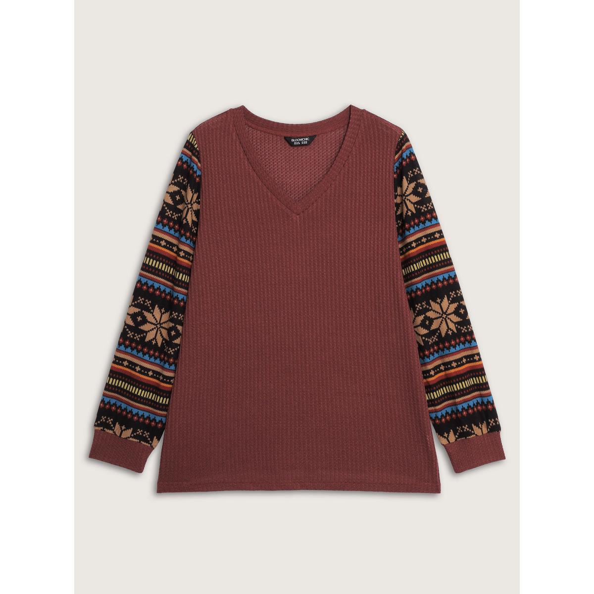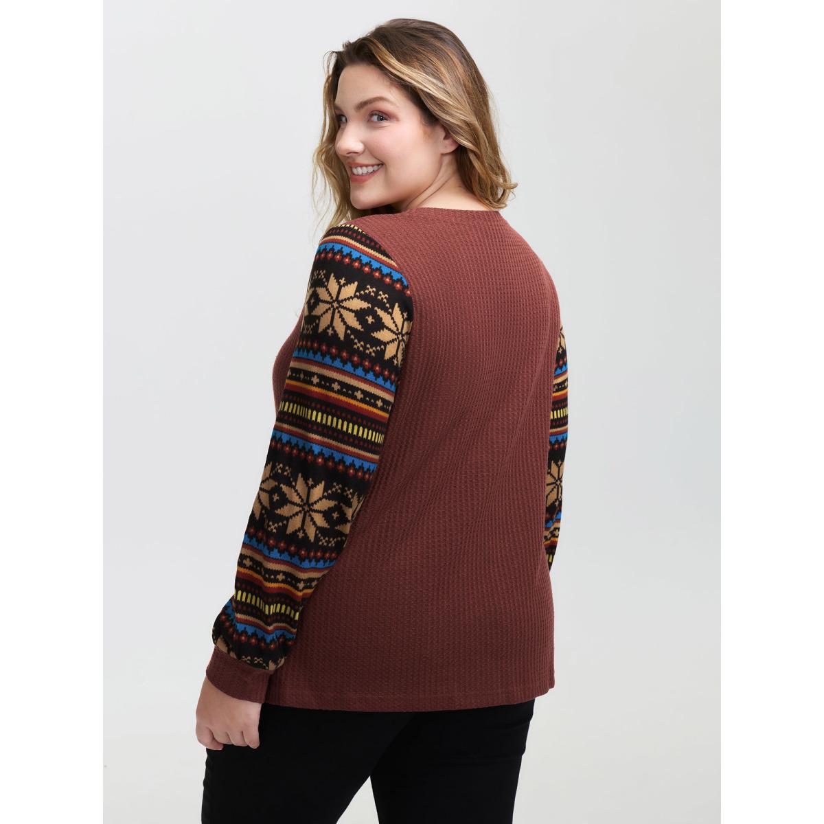 Plus Size Striped Print Sleeve Gold Stamped T-Shirt Browncoffeecolor Women Leisure Texture Round Neck Casual T-shirts BloomChic 18-20/2X