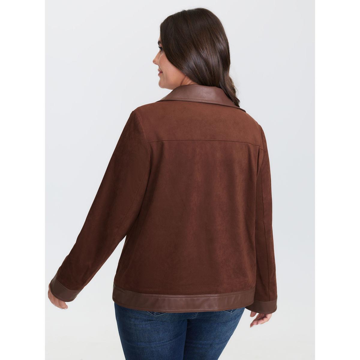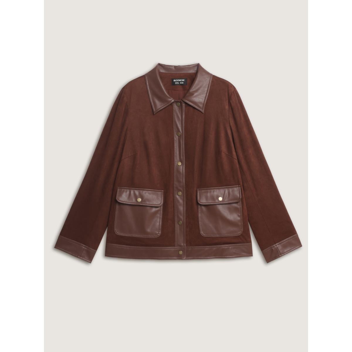 Plus Size Suede Leather Detail Button-Down Jacket Women Browncoffeecolor Patch pocket Casual Jackets BloomChic 28/5X